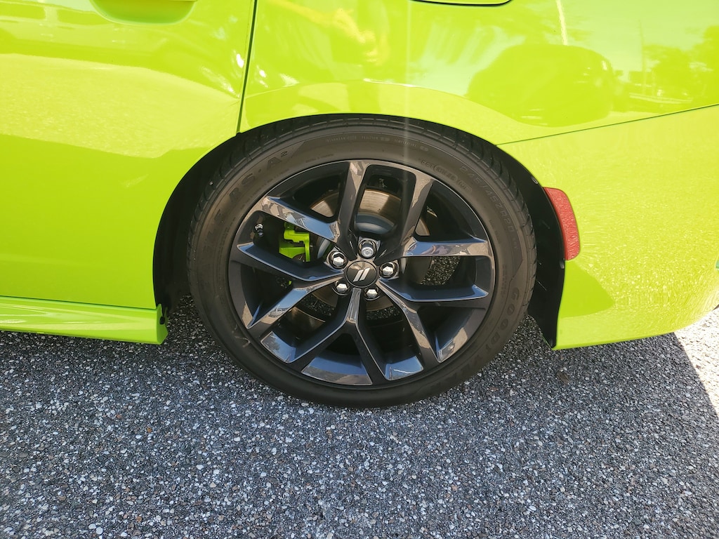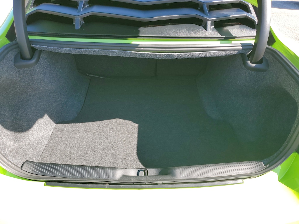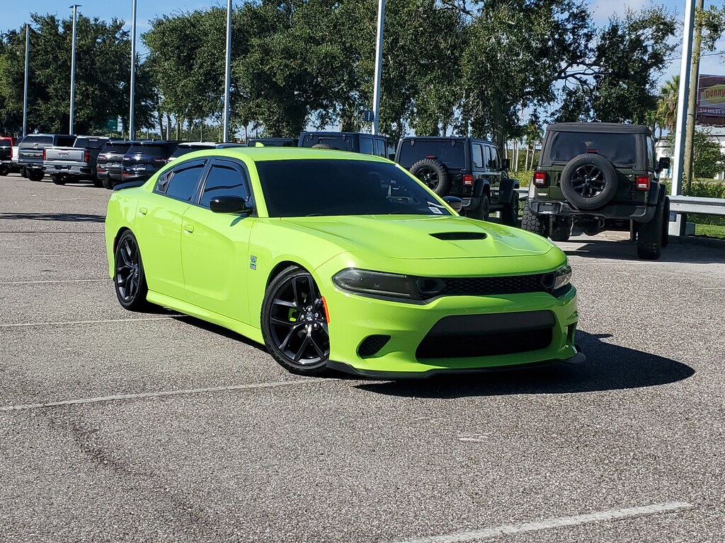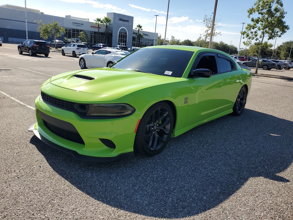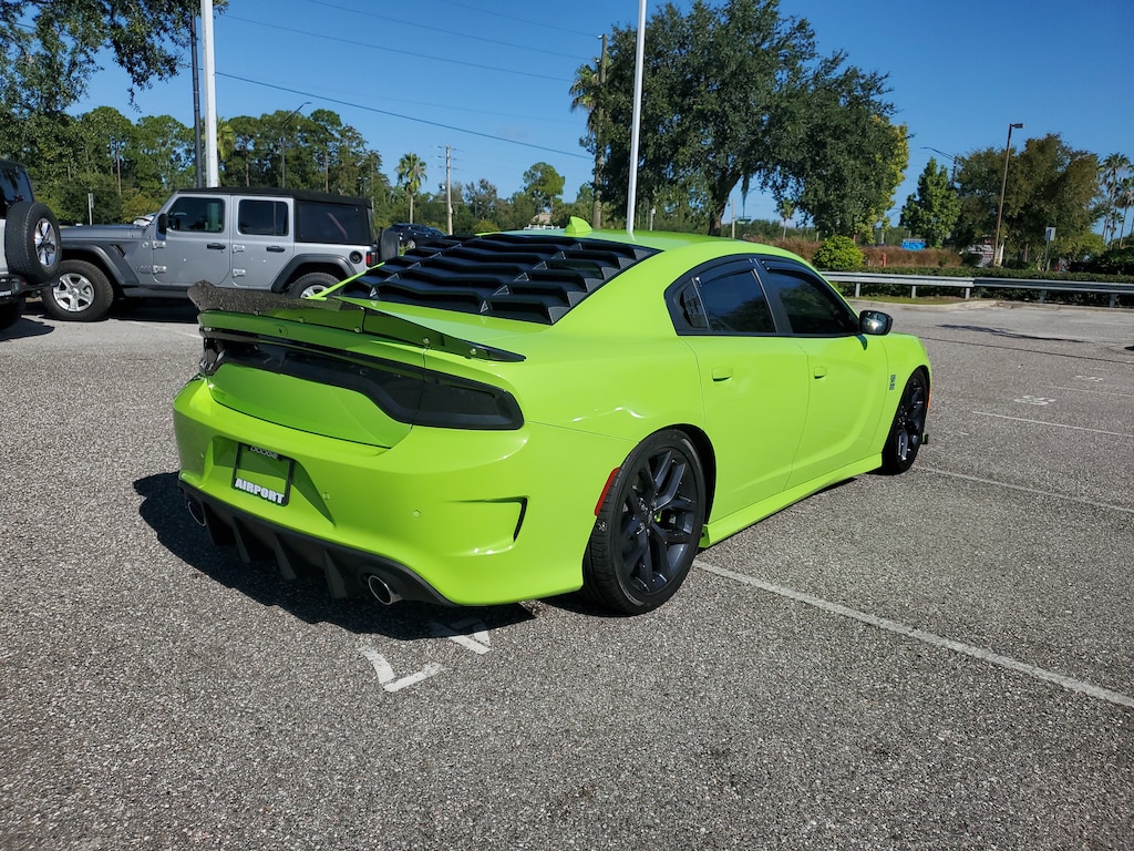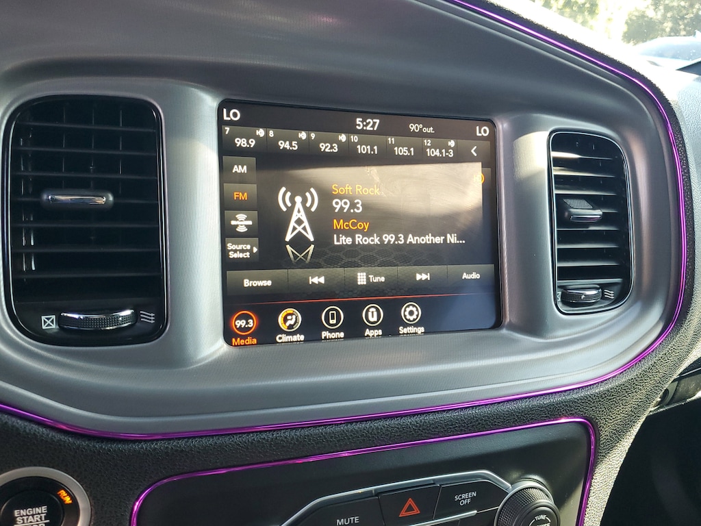 This Vehicle comes equipped with: Blacktop Package (Black 1-Piece Performance Spoiler, Black Dodge Grille Badge, Blacktop R/T Badge, Gloss Black I/P Cluster Trim Rings, Rhombi 2-Pc Wheel Center Cap, Satin Black Charger Decklid Badge, Satin Black Dodge Tail Lamp Badge, and Wheels: 20" x 8" Black Noise Painted), Quick Order Package 26N, Black Cloth, 1-Yr SiriusXM Guardian Trial, 2-Piece Shark Fin Antenna, 4-Wheel Disc Brakes, 4G LTE Wi-Fi Hot Spot, 6 Speakers, 8.4" Touchscreen Display, ABS brakes, Air Conditioning, Alloy wheels, AM/FM radio: SiriusXM, Anti-whiplash front head restraints, Apple CarPlay, Apple CarPlay/Android Auto, Auto-dimming Rear-View mirror, Automatic temperature control, Brake assist, Bumpers: body-color, Cargo Net, Cloth Performance Seats, Compass, Delay-off headlights, Driver door bin, Driver vanity mirror, Dual front impact airbags, Dual front side impact airbags, Electronic Stability Control, Emergency communication system: SiriusXM Guardian, For Details, Visit DriveUconnect.com, Four wheel independent suspension, Front anti-roll bar, Front Bucket Seats, Front Center Armrest, Front dual zone A/C, Front reading lights, Fully automatic headlights, Garage door transmitter: HomeLink, Google Android Auto, GPS Antenna Input, HD Radio, Heated door mirrors, Illuminated entry, Integrated Center Stack Radio, Integrated Voice Command w/Bluetooth, Knee airbag, Leather Shift Knob, Low tire pressure warning, Manufacturer's Statement of Origin, Media Hub (2 USB, AUX), Occupant sensing airbag, Outside temperature display, Overhead airbag, Overhead console, Panic alarm, ParkView Rear Back-Up Camera, Passenger door bin, Passenger vanity mirror, Power 2-Way Driver Lumbar Adjust, Power 8-Way Driver Seat, Power door mirrors, Power driver seat, Power steering, Power windows, Radio: Uconnect 4C w/8.4" Display, Rear anti-roll bar, Rear Armrest w/Cupholder Seat, Rear reading lights, Rear seat center armrest, Rear window defroster, Remote keyless entry, Speed control, Speed-Sensitive Wipers, Split folding rear seat, Spoiler, Sport steering wheel, Steering wheel mounted audio controls, Tachometer, Telescoping steering wheel, Tilt steering wheel, Traction control, Trip computer, USB Host Flip, Variably intermittent wipers, and Wheels: 20" x 8" Machined w/Granite PockeT.