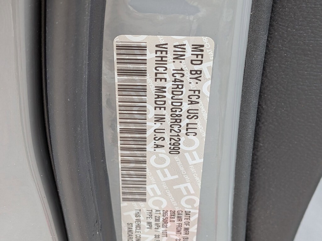This vehicle comes equipped with : Quick Order Package 2BG GT Plus (1-Year Trial (Registration Required), 10.1" Touchscreen Display, 115V Auxiliary Power Outlet, 180 Amp Alternator, 4G LTE Wi-Fi Hot Spot, 7 & 4 Pin Wiring Harness, Adaptive Cruise Control w/Stop, Apple CarPlay, Auto-Dimming Exterior Driver Mirror, Black Roof Rails, Blind Spot w/Trailer Detection, Class IV Receiver Hitch, Connected Travel & Traffic Services, Disassociated Touchscreen Display, Dual Remote USB Port - Charge Only, Exterior Mirrors w/Heating Element, Exterior Mirrors w/Memory, Exterior Mirrors w/Supplemental Signals, Floor Console w/Leather Armrest, For Details Visit DriveUconnect.com, Full Speed Forward Collision Warning Plus, Global Telematics Box Module (TBM), Gloss Black Exterior Mirrors, Google Android Auto, GPS Antenna Input, GPS Navigation, HD Radio, Heated Second Row Seats, Heavy-Duty Engine Cooling, Integrated Center Stack Radio, Integrated Roof Rail Crossbars, Integrated Voice Command w/Bluetooth, Leather Trimmed Bucket Seats, Leather Wrapped Door Panels, LED Auxiliary Low Beam & Turn Signal, Power 6x9 Multi-Function Foldaway Mirrors, Power 8-Way Driver Memory 8-Way Passenger Seats, Power Driver/Passenger 4-Way Lumbar Adjust, Power Sunroof, Power Tilt & Telescopic Steering Column, Radio: Uconnect 5 Nav w/10.1" Display, Radio/Driver Seat/Mirrors Memory, Rear Load Leveling Suspension, Red Accent Stitching, SiriusXM Guardian - Included Trial (B), SiriusXM w/360L, Trailer Brake Control, USB Host Flip, and Ventilated Front Seats), AWD, 3.45 Rear Axle Ratio, 3rd row seats: split-bench, 4-Wheel Disc Brakes, 6 Speakers, ABS brakes, Air Conditioning, Alloy wheels, AM/FM radio: SiriusXM, Apple CarPlay/Android Auto, Auto-dimming Rear-View mirror, Automatic temperature control, Brake assist, Bumpers: body-color, Cloth Bucket Seats w/Shift Insert, Compass, Delay-off headlights, Driver door bin, Driver vanity mirror, Dual front impact airbags, Dual front side impact airbags, Electronic Stability Control, Four wheel independent suspension, Front anti-roll bar, Front Bucket Seats, Front Center Armrest w/Storage, Front dual zone A/C, Front License Plate Bracket, Front reading lights, Fully automatic headlights, Garage door transmitter, Heated door mirrors, Heated front seats, Heated steering wheel, Illuminated entry, Knee airbag, Leather steering wheel, Low tire pressure warning, Occupant sensing airbag, Outside temperature display, Overhead airbag, Overhead console, Panic alarm, ParkView Rear Back-Up Camera, Passenger door bin, Passenger vanity mirror, Power door mirrors, Power driver seat, Power Liftgate, Power steering, Power windows, Radio data system, Radio: Uconnect 4 w/8.4" Display, Rear air conditioning, Rear anti-roll bar, Rear reading lights, Rear seat center armrest, Rear window defroster, Rear window wiper, Remote keyless entry, Speed control, Speed-sensing steering, Speed-Sensitive Wipers, Split folding rear seat, Spoiler, Sport steering wheel, Steering wheel mounted audio controls, Tachometer, Telescoping steering wheel, Tilt steering wheel, Traction control, Trip computer, Variably intermittent wipers, Voltmeter, and Wheels: 20" x 8.0" Fine SilveR.