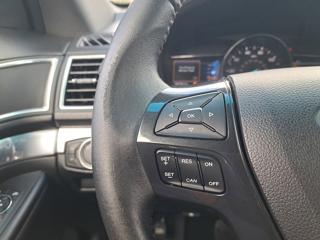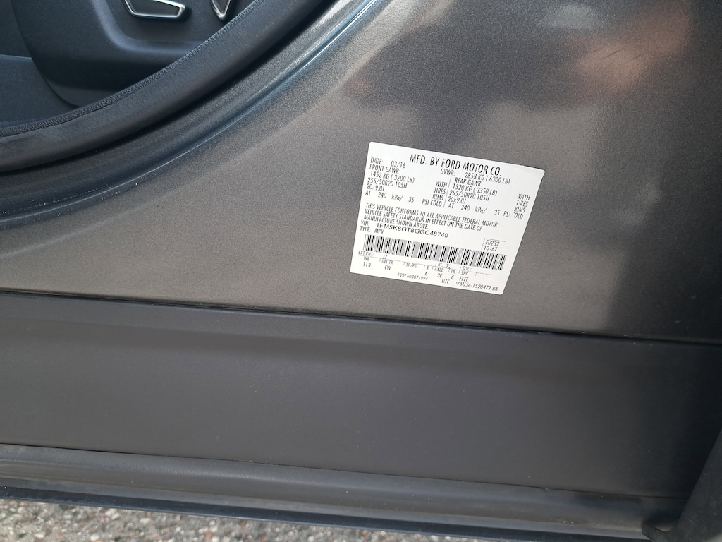 This Vehicle comes equipped with: Equipment Group 400A, 4WD, 12 Speakers, 20" Machined Aluminum w/Painted Pockets Wheels, 3.16 Axle Ratio, 3rd row seats: split-bench, 4-Wheel Disc Brakes, ABS brakes, Air Conditioning, Alloy wheels, AM/FM radio: SiriusXM, Auto-dimming Rear-View mirror, Automatic temperature control, Brake assist, Bumpers: body-color, CD player, Compass, Delay-off headlights, Driver door bin, Driver vanity mirror, Dual front impact airbags, Dual front side impact airbags, Electronic Stability Control, Emergency communication system: 911 Assist, Exterior Parking Camera Rear, Four wheel independent suspension, Front anti-roll bar, Front Bucket Seats, Front Center Armrest, Front dual zone A/C, Front fog lights, Front reading lights, Fully automatic headlights, Heated door mirrors, Heated front seats, Illuminated entry, Knee airbag, Leather steering wheel, Low tire pressure warning, Occupant sensing airbag, Outside temperature display, Overhead airbag, Overhead console, Panic alarm, Passenger door bin, Passenger vanity mirror, Perforated Leather-Trimmed Heated Bucket Seats, Power door mirrors, Power driver seat, Power passenger seat, Power steering, Power windows, Premium audio system: Sony, Radio data system, Radio: Sony Audio System w/Single-CD/MP3-Capable, Rear air conditioning, Rear anti-roll bar, Rear reading lights, Rear seat center armrest, Rear window defroster, Rear window wiper, Remote keyless entry, Roof rack: rails only, Security system, Speed control, Speed-sensing steering, Speed-Sensitive Wipers, Split folding rear seat, Spoiler, Steering wheel mounted audio controls, SYNC w/MyFord Touch, Tachometer, Telescoping steering wheel, Tilt steering wheel, Traction control, Trip computer, Turn signal indicator mirrors, Twin Panel Moonroof, Variably intermittent wipers, and Voice-Activated Navigation System.