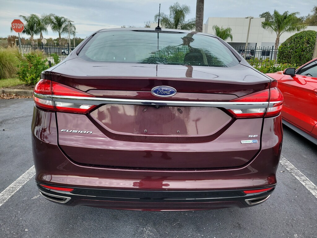 This Vehicle is nicely equipped with the following features: Equipment Group 202A, Fusion SE Luxury Package (Auto-Dimming Rear-View Mirror, Heated Leather Front Bucket Seats, Intelligent Access w/Remote Start System, Leather-Wrapped Steering Wheel, LED Fog Lamps, LED Headlamps, Upgraded Sideview Mirrors w/Heat, and Warm Interior Accents), 6-Speed Automatic, AWD, 4-Wheel Disc Brakes, 6 Speakers, ABS brakes, Air Conditioning, Alloy wheels, AM/FM radio: SiriusXM, Brake assist, Bumpers: body-color, CD player, Cloth/Vinyl Bolster Seats, Compass, Delay-off headlights, Driver door bin, Driver vanity mirror, Dual front impact airbags, Dual front side impact airbags, Electronic Stability Control, Emergency communication system: 911 Assist, Exterior Parking Camera Rear, Four wheel independent suspension, Front anti-roll bar, Front Bucket Seats, Front Center Armrest, Front reading lights, Fully automatic headlights, Illuminated entry, Knee airbag, Low tire pressure warning, Occupant sensing airbag, Outside temperature display, Overhead airbag, Overhead console, Panic alarm, Passenger door bin, Passenger vanity mirror, Power door mirrors, Power driver seat, Power passenger seat, Power steering, Power windows, Radio data system, Radio: AM/FM Stereo/MP3/Single-CD, Rear anti-roll bar, Rear reading lights, Rear seat center armrest, Rear window defroster, Remote keyless entry, Security system, SiriusXM Radio, Speed control, Speed-sensing steering, Speed-Sensitive Wipers, Split folding rear seat, Spoiler, Steering wheel mounted audio controls, SYNC Communications & Entertainment System, Tachometer, Telescoping steering wheel, Tilt steering wheel, Traction control, Trip computer, Variably intermittent wipers, Wheels: 18 Machine-Faced Alum. W/Painted Pockets, and Wheels: 18 Prem Painted Dark Stainless. 20/29 City/Highway MPG