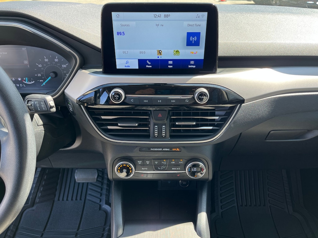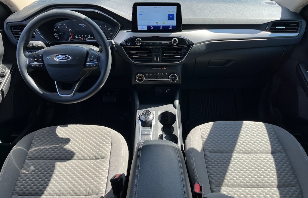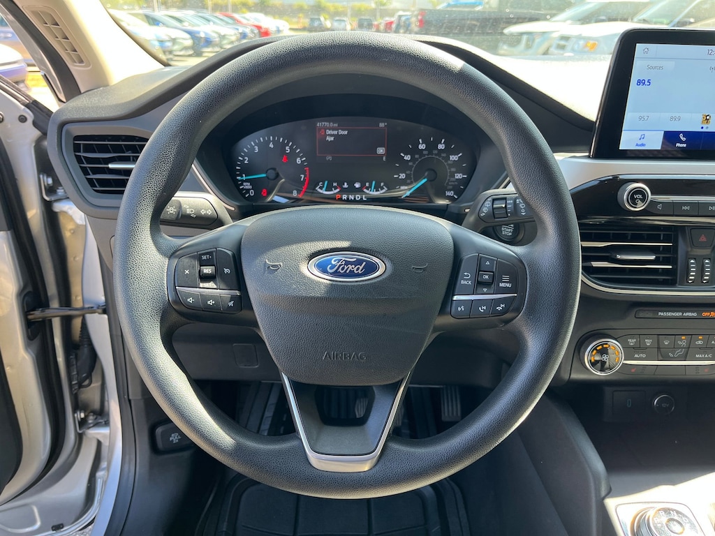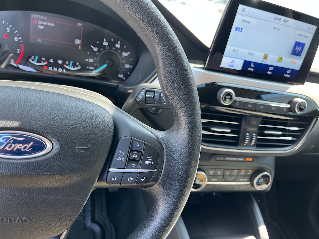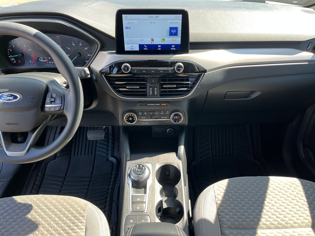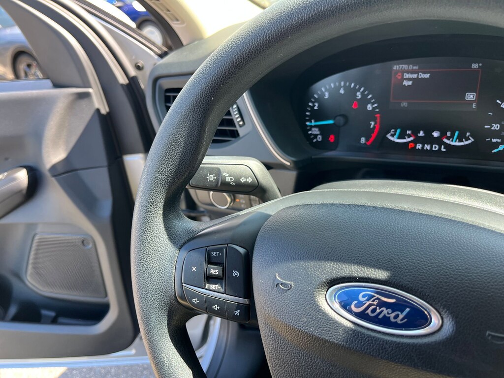 This vehicle comes equipped with : Equipment Group 200A, 3.52 Axle Ratio, 4-Wheel Disc Brakes, 6 Speakers, ABS brakes, Air Conditioning, Alloy wheels, AM/FM radio: SiriusXM, AM/FM Stereo, Auto High-beam Headlights, Automatic temperature control, Brake assist, Bumpers: body-color, Compass, Delay-off headlights, Driver door bin, Driver vanity mirror, Dual front impact airbags, Dual front side impact airbags, Electronic Stability Control, Emergency communication system: SYNC 3 911 Assist, Exterior Parking Camera Rear, FordPass Connect, Four wheel independent suspension, Front anti-roll bar, Front Bucket Seats, Front Center Armrest, Front reading lights, Fully automatic headlights, Heated door mirrors, Heated front seats, Heated Unique Cloth Front Bucket Seats, Illuminated entry, Knee airbag, Low tire pressure warning, Occupant sensing airbag, Outside temperature display, Overhead airbag, Overhead console, Panic alarm, Passenger door bin, Passenger vanity mirror, Power door mirrors, Power driver seat, Power steering, Power windows, Radio data system, Rear anti-roll bar, Rear reading lights, Rear seat center armrest, Rear window defroster, Rear window wiper, Remote keyless entry, Speed control, Speed-sensing steering, Speed-Sensitive Wipers, Split folding rear seat, Spoiler, Steering wheel mounted audio controls, SYNC 3 Communications & Entertainment System, Tachometer, Telescoping steering wheel, Tilt steering wheel, Traction control, Trip computer, Variably intermittent wipers, and Wheels: 17" Shadow Silver-Painted Aluminum.