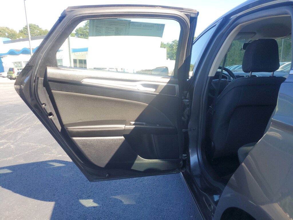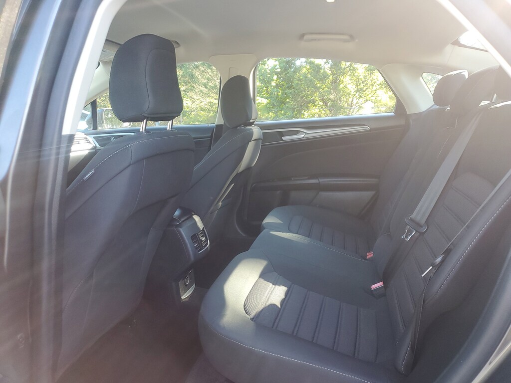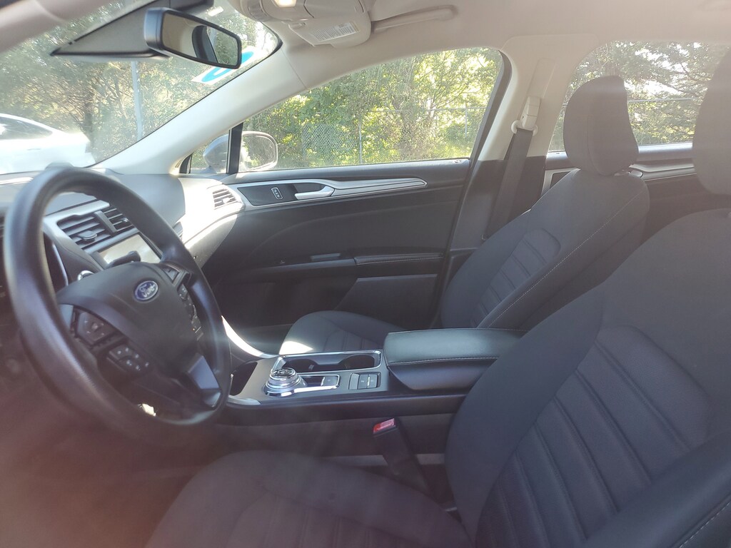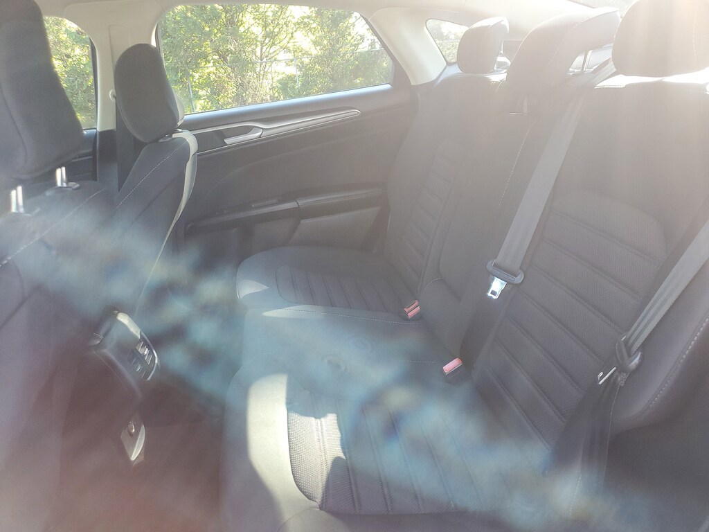 This Vehicle includes the following Options and Features Equipment Group 150A, Fusion SE, 4D Sedan, 1.5L EcoBoost, 6-Speed Automatic, FWD, Magnetic, Ebony w/Cloth Front Bucket Seats, 4-Wheel Disc Brakes, 6 Speakers, ABS brakes, Air Conditioning, Alloy wheels, AM/FM radio: SiriusXM, Auto High-beam Headlights, Auto Start-Stop Technology, Auto-dimming Rear-View mirror, Automatic temperature control, Brake assist, Bumpers: body-color, Cloth Front Bucket Seats, Compass, Delay-off headlights, Driver door bin, Driver vanity mirror, Dual front impact airbags, Dual front side impact airbags, Electronic Stability Control, Emergency communication system: SYNC 3 911 Assist, Exterior Parking Camera Rear, Four wheel independent suspension, Front anti-roll bar, Front Bucket Seats, Front Center Armrest, Front dual zone A/C, Front reading lights, Fully automatic headlights, Illuminated entry, Knee airbag, Low tire pressure warning, Occupant sensing airbag, Outside temperature display, Overhead airbag, Overhead console, Panic alarm, Passenger door bin, Passenger vanity mirror, Power door mirrors, Power driver seat, Power steering, Power windows, Radio data system, Radio: AM/FM/MP3 Stereo, Rain sensing wipers, Rear anti-roll bar, Rear reading lights, Rear seat center armrest, Rear window defroster, Remote keyless entry, Security system, SiriusXM Radio, Speed control, Speed-sensing steering, Speed-Sensitive Wipers, Split folding rear seat, Steering wheel mounted audio controls, SYNC 3 Communications & Entertainment System, Tachometer, Telescoping steering wheel, Tilt steering wheel, Traction control, Trip computer, Variably intermittent wipers, and Wheels: 17" Sparkle Silver-Painted Aluminum.