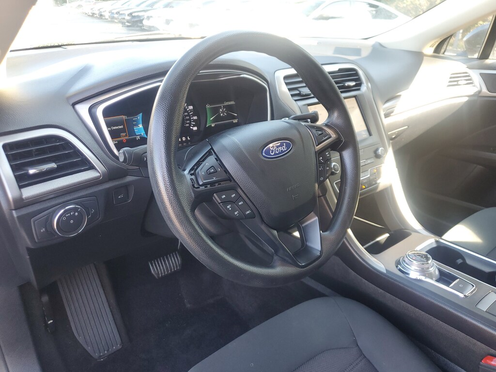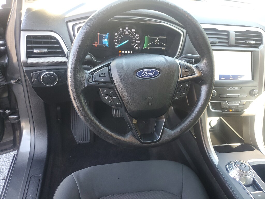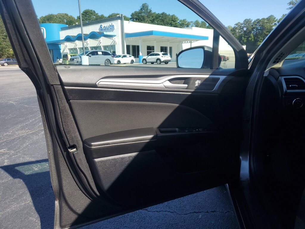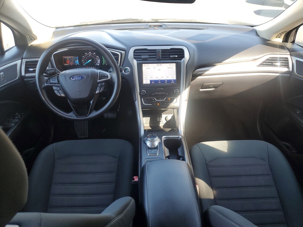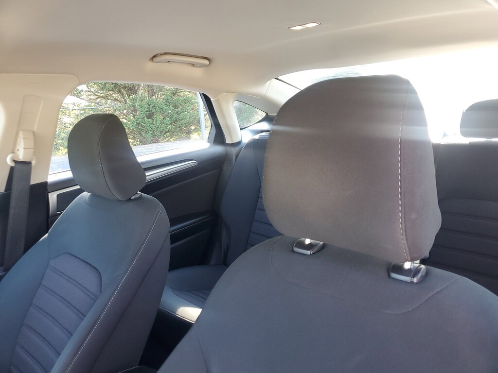 This Vehicle includes the following Options and Features Equipment Group 150A, Fusion SE, 4D Sedan, 1.5L EcoBoost, 6-Speed Automatic, FWD, Magnetic, Ebony w/Cloth Front Bucket Seats, 4-Wheel Disc Brakes, 6 Speakers, ABS brakes, Air Conditioning, Alloy wheels, AM/FM radio: SiriusXM, Auto High-beam Headlights, Auto Start-Stop Technology, Auto-dimming Rear-View mirror, Automatic temperature control, Brake assist, Bumpers: body-color, Cloth Front Bucket Seats, Compass, Delay-off headlights, Driver door bin, Driver vanity mirror, Dual front impact airbags, Dual front side impact airbags, Electronic Stability Control, Emergency communication system: SYNC 3 911 Assist, Exterior Parking Camera Rear, Four wheel independent suspension, Front anti-roll bar, Front Bucket Seats, Front Center Armrest, Front dual zone A/C, Front reading lights, Fully automatic headlights, Illuminated entry, Knee airbag, Low tire pressure warning, Occupant sensing airbag, Outside temperature display, Overhead airbag, Overhead console, Panic alarm, Passenger door bin, Passenger vanity mirror, Power door mirrors, Power driver seat, Power steering, Power windows, Radio data system, Radio: AM/FM/MP3 Stereo, Rain sensing wipers, Rear anti-roll bar, Rear reading lights, Rear seat center armrest, Rear window defroster, Remote keyless entry, Security system, SiriusXM Radio, Speed control, Speed-sensing steering, Speed-Sensitive Wipers, Split folding rear seat, Steering wheel mounted audio controls, SYNC 3 Communications & Entertainment System, Tachometer, Telescoping steering wheel, Tilt steering wheel, Traction control, Trip computer, Variably intermittent wipers, and Wheels: 17" Sparkle Silver-Painted Aluminum.