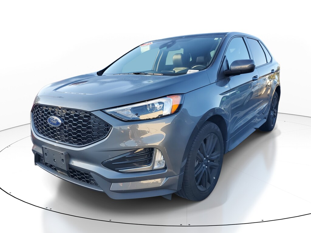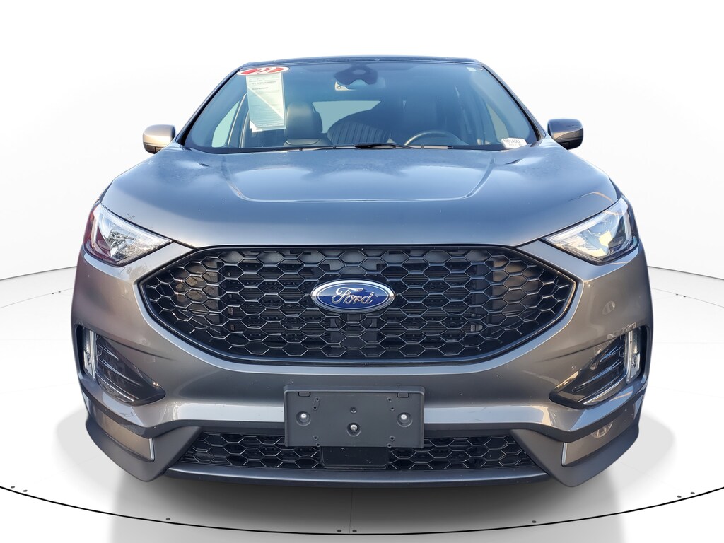 2022 Ford Edge EcoBoost 2.0L I4 GTDi DOHC Turbocharged VCT Carbonized Gray Metallic AWD. This vehicle also comes equipped with: Class II Trailer Tow Package, Equipment Group 250A, AWD, 3.80 Axle Ratio, 4-Wheel Disc Brakes, 6 Speakers, ABS brakes, ActiveX Seating Material Heated Bucket Seats, Air Conditioning, Alloy wheels, AM/FM radio: SiriusXM with 360L, Auto High-beam Headlights, Auto-dimming Rear-View mirror, Automatic temperature control, Brake assist, Bumpers: body-color, Compass, Delay-off headlights, Driver door bin, Driver vanity mirror, Dual front impact airbags, Dual front side impact airbags, Electronic Stability Control, Emergency communication system: SYNC 4 911 Assist, FordPass Connect, Four wheel independent suspension, Front anti-roll bar, Front Bucket Seats, Front Center Armrest w/Storage, Front dual zone A/C, Front fog lights, Front reading lights, Fully automatic headlights, Garage door transmitter, Heated door mirrors, Heated front seats, Heated Steering Wheel, Illuminated entry, Knee airbag, Low tire pressure warning, Occupant sensing airbag, Outside temperature display, Overhead airbag, Overhead console, Panic alarm, Panoramic Vista Roof, Passenger door bin, Passenger vanity mirror, Power door mirrors, Power driver seat, Power Liftgate, Power passenger seat, Power steering, Power windows, Radio: AM/FM Stereo/MP3 Capable, Rear anti-roll bar, Rear Parking Sensors, Rear reading lights, Rear seat center armrest, Rear window defroster, Rear window wiper, Remote keyless entry, Security system, SiriusXM w/360L, Speed control, Speed-Sensitive Wipers, Split folding rear seat, Spoiler, Steering wheel mounted audio controls, SYNC 4A w/Enhanced Voice Recognition, Tachometer, Telescoping steering wheel, Tilt steering wheel, Traction control, Trip computer, Variably intermittent wipers, and Wheels: 20 Premium Gloss Black-Painted Aluminum. AWD 8-Speed Automatic Recent Arrival! Odometer is 28432 miles below market average! 21/28 City/Highway MPG