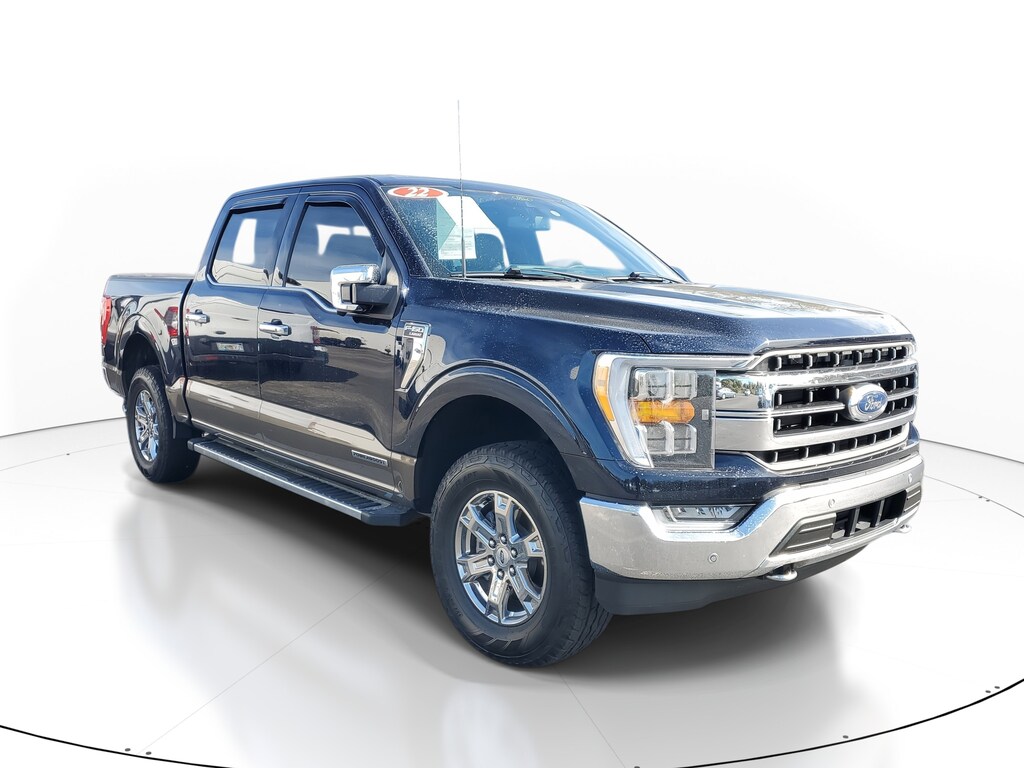 2022 Ford F-150 3.5L PowerBoost Full-Hybrid V6 Antimatter Blue Metallic 3.5L PowerBoost Full-Hybrid V6, 4WD. This vehicle also comes equipped with: Bed Utility Package (BoxLink, LED Box Lighting, Power Tailgate, and Tailgate Step w/Tailgate Work Surface), Equipment Group 501A Mid (Radio: B&O Sound System by Bang & Olufsen), Ford Co-Pilot360 Assist 2.0 (DISC) (Connected Built-In Navigation, Evasive Steering Assist, Intelligent Adaptive Cruise Control w/Stop & Go, Intersection Assist, and Speed Sign Recognition), Lariat Chrome Appearance Package (6 Bright Polished Running Board, Chrome 2-Bar Grille w/4 Minor Bars, Chrome Door & Tailgate Handles w/Body-Color Bezel, Chrome Single-Tip Exhaust, Chrome Skull Caps on Exterior Mirrors, and Wheels: 18 Chrome-Like PVD), Trailer Tow Package (Class IV Trailer Hitch Receiver, Integrated Trailer Brake Controller, and Pro Trailer Backup Assist), 3.5L PowerBoost Full-Hybrid V6, 4WD, 18 Machined-Aluminum Wheels, 360 Degree Camera, 4-Wheel Disc Brakes, 7 Speakers, ABS brakes, Adjustable pedals, Air Conditioning, Alloy wheels, AM/FM radio: SiriusXM with 360L, Auto High-beam Headlights, Auto Start-Stop Removal, Auto-dimming door mirrors, Auto-dimming Rear-View mirror, Automatic temperature control, Brake assist, Bumpers: chrome, Compass, Delay-off headlights, Driver door bin, Driver vanity mirror, Dual front impact airbags, Dual front side impact airbags, Electronic Stability Control, Emergency communication system: SYNC 4 911 Assist, Exterior Parking Camera Rear, Front anti-roll bar, Front Center Armrest w/Storage, Front dual zone A/C, Front fog lights, Front reading lights, Front wheel independent suspension, Fully automatic headlights, Heated door mirrors, Heated front seats, Illuminated entry, Leather-Trimmed 40/20/40 Front Seat, LED Sideview Mirror Spotlights, Low tire pressure warning, Memory seat, Occupant sensing airbag, Outside temperature display, Overhead airbag, Overhead console, Panic alarm, Passenger door bin, Passenger vanity mirror, Pedal memory, Power door mirrors, Power driver seat, Power passenger seat, Power steering, Power windows, Pro Power Onboard - 7.2KW, Radio data system, Radio: AM/FM SiriusXM w/360L, Rear reading lights, Rear seat center armrest, Rear step bumper, Rear window defroster, Remote keyless entry, Security system, Speed control, Speed-sensing steering, Split folding rear seat, Steering wheel mounted audio controls, SYNC 4 w/Enhanced Voice Recognition, Tachometer, Telescoping steering wheel, Tilt steering wheel, Traction control, Tray Style Floor Liner (47W), Trip computer, Turn signal indicator mirrors, Variably intermittent wipers, Ventilated front seats, Voltmeter, and Wireless Charging Pad. 4WD 10-Speed Automatic Recent Arrival!