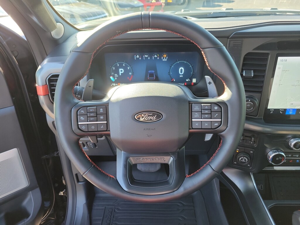 THIS VEHCILE INCLUDES THE FOLLOWING OPTIONS AND FEATURES: Equipment Group 802A Raptor 37 (Carbon Fiber Interior Appliques, Dual Valve Shocks, Modular Front Bumper, RECARO Alcantara Suede Front Seats, and Wheels: Raptor 37 Unique 17 Cast Aluminum), 14 Speakers, 17 Cast Aluminum Wheels, 4-Wheel Disc Brakes, ABS brakes, Adjustable pedals, Air Conditioning, Alloy wheels, AM/FM radio: SiriusXM with 360L, Auto High-beam Headlights, Auto tilt-away steering wheel, Auto-dimming door mirrors, Auto-dimming Rear-View mirror, Automatic temperature control, Brake assist, Bumpers: body-color, Compass, Delay-off headlights, Driver door bin, Driver vanity mirror, Dual front impact airbags, Dual front side impact airbags, Electronic Locking w/4.10 Axle Ratio, Electronic Stability Control, Emergency communication system: SYNC 4 911 Assist, Front anti-roll bar, Front Bucket Seats, Front Center Armrest, Front dual zone A/C, Front fog lights, Front reading lights, Front wheel independent suspension, Fully automatic headlights, Garage door transmitter, Heads-Up Display, Heated door mirrors, Heated front seats, Heated rear seats, Heated steering wheel, Illuminated entry, Internet access capable: FordPass Connect 5G, Lane Departure Warning System, Leather steering wheel, Leather Trimmed Seats, Low tire pressure warning, Memory seat, Navigation system: Connected Navigation, Occupant sensing airbag, Outside temperature display, Overhead airbag, Overhead console, Panic alarm, Passenger door bin, Passenger vanity mirror, Pedal memory, Power door mirrors, Power driver seat, Power passenger seat, Power steering, Power windows, Radio data system, Radio: B&O Unleashed Sound System by Bang & Olufsen, Rain sensing wipers, Rear reading lights, Rear step bumper, Rear window defroster, Remote keyless entry, Security system, Speed control, Speed-sensing steering, Split folding rear seat, Steering wheel memory, Steering wheel mounted audio controls, SYNC 4 w/Enhanced Voice Recognition, Tachometer, Telescoping steering wheel, Tilt steering wheel, Traction control, Trip computer, Turn signal indicator mirrors, Variably intermittent wipers, and Ventilated front seats.