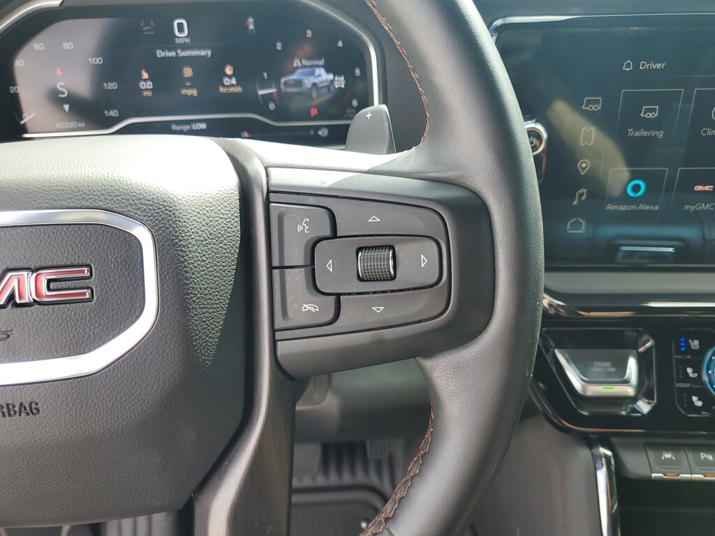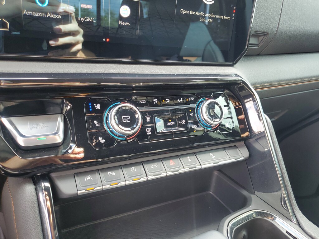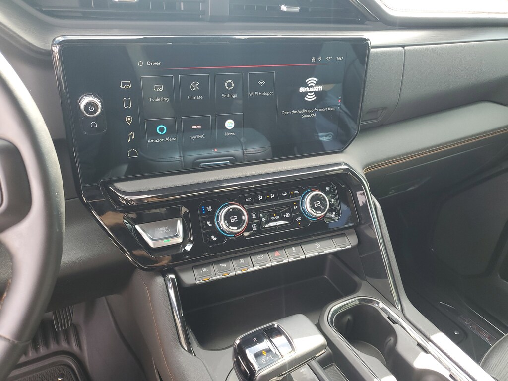 This Vehicle comes equipped with: AT4 Preferred Package (Power Sliding Rear Window w/Rear Defogger and Universal Home Remote), AT4 Premium Package (Off-Road High Clearance Step (LPO)), Preferred Equipment Group 4SB (120-Volt Bed Mounted Power Outlet, 120-Volt Interior Power Outlet, 2 Charge/Data USB Ports Inside Center Console, 2 Type-C Charge-Only Rear USB Ports, 2 USB Ports, 220 Amp Alternator, Auto-Locking Rear Differential, Black Chrome Header & Grille Insert Bars, Color-Keyed Carpeting Floor Covering, Deep-Tinted Glass, Electric Rear-Window Defogger, Floor-Mounted Center Console, Front Prem Floor Liners w/Removable Carpet Insert, Front Rain-Sensing Wipers, GMC Connected Access Capable, HD Surround Vision, Heated 2nd Row Outboard Seats, Heated Driver & Front Outboard Passenger Seating, Heavy-Duty Air Filter, Hill Descent Control, Hitch View, In-Vehicle Trailering System App, Integrated Trailer Brake Controller, Keyless Open & Start, LED Cargo Area Lighting, OnStar & GMC Connected Services Capable, Perimeter Lighting, Power Door Locks, Power Front Passenger Windows w/Express Up/Down, Power Front Windows w/Driver Express Up/Down, Power Rake & Telescoping Steering Column, Power Rear Windows w/Express Down, Premium Bose 7-Speaker Sound System, Push Button Start, Rear Cross Traffic Braking, Rear Pedestrian Detection, Rear Prem Floor Liners w/Removable Carpet Insert, Rear Wheelhouse Liners, Red Recovery Hooks, Remote Vehicle Starter System, SiriusXM w/360L, Spray-On Pickup Bedliner w/AT4 Logo, Steering Wheel Audio Controls, Theft Deterrent System (Unauthorized Entry), Trailer Camera Provisions, Trailer Side Blind Zone Alert, Ultrasonic Front & Rear Park Assist, Ventilated Driver & Front Passenger Seats, Wi-Fi Hotspot Capable, and Wireless Charging), Technology Package (Bed View Camera, Multicolor 15" Diagonal Head-Up Display, and Rear Camera Mirror), Trailering Package (Hitch Guidance), 10-Speed Automatic, 4WD, Jet Black With Kalahari Accents Leather, 10-Way Power Driver Seat Adjuster w/Lumbar, 10-Way Power Passenger Seat Adjuster w/Lumbar, 170 Amp Alternator, 18" x 8.5" Machined Aluminum Wheels, 3.23 Rear Axle Ratio, 4-Wheel Disc Brakes, 7 Speakers, ABS brakes, Air Conditioning, Alloy wheels, AM/FM radio: SiriusXM with 360L, Apple CarPlay/Android Auto, Auto High-beam Headlights, Auto-dimming door mirrors, Auto-dimming Rear-View mirror, Automatic Emergency Braking, Automatic temperature control, Auxiliary External Transmission Oil Cooler, Block heater, Brake assist, Buckle to Drive, Bumpers: body-color, Compass, Delay-off headlights, Driver door bin, Driver Memory, Driver vanity mirror, Dual Active Exhaust, Dual front impact airbags, Dual front side impact airbags, Electronic Stability Control, External Engine Oil Cooling, Following Distance Indicator, Forward Collision Alert, Front anti-roll bar, Front Bucket Seats, Front Center Armrest, Front dual zone A/C, Front fog lights, Front Pedestrian Braking, Front reading lights, Front wheel independent suspension, Fully automatic headlights, Heated door mirrors, Heated front seats, Heated rear seats, Heated steering wheel, Illuminated entry, IntelliBeam Automatic High Beam On/Off, Lane Keep Assist w/Lane Departure Warning, Low tire pressure warning, Memory seat, Navigation System, Occupant sensing airbag, Off-Road Suspension, Outside temperature display, Overhead airbag, Overhead console, Panic alarm, Passenger door bin, Passenger vanity mirror, Perforated Front Leather Seat Trim, Power door mirrors, Power driver seat, Power passenger seat, Power steering, Power Sunroof, Power windows, Premium audio system: GMC Infotainment System, Radio data system, Radio: Premium GMC Infotainment Audio System, Rain sensing wipers, Rear reading lights, Rear seat center armrest, Rear step bumper, Rear window defroster, Remote keyless entry,