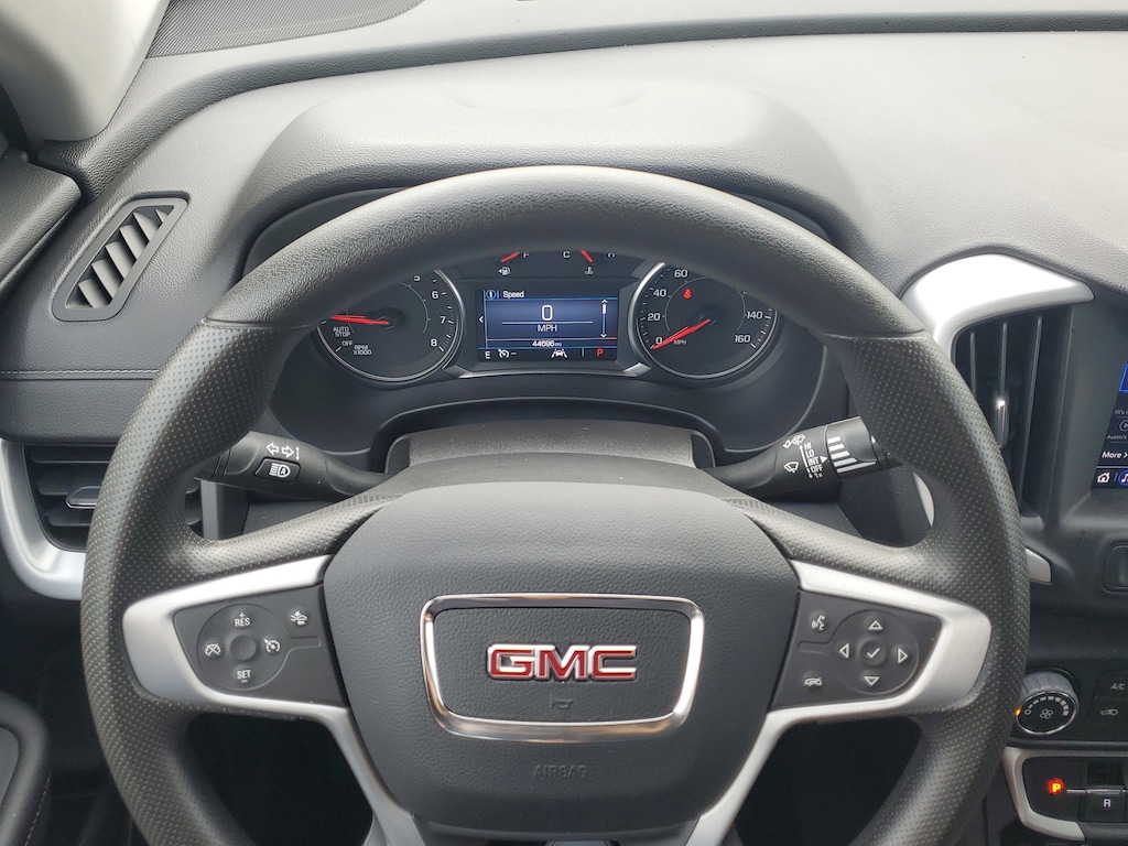 THIS VEHICLE IS EQUIPT WITH THE FOLLOWING FEATURES AND OPTIONS: License Plate Front Mounting Package, Preferred Equipment Group 3SA, 2 USB Data Ports w/Auxiliary Input Jack, 3.47 Final Drive Axle Ratio, 4-Way Manual Driver's Seat, 4-Way Manual Front Passenger Seat, 4-Wheel Disc Brakes, 4.2 Multi-Color Driver Information Screen, 6 Speakers, 6-Speaker Audio System Feature, ABS brakes, Air Conditioning, Alloy wheels, AM/FM radio: SiriusXM, Auto High-beam Headlights, Auto-dimming Rear-View mirror, Automatic temperature control, Bluetooth® For Phone, Brake assist, Bumpers: body-color, Cold Air Grille Shutter, Compass, Delay-off headlights, Driver door bin, Driver vanity mirror, Dual front impact airbags, Dual front side impact airbags, Electronic Stability Control, Emergency communication system: OnStar and GMC connected services capable, Four wheel independent suspension, Front anti-roll bar, Front Bucket Seats, Front Center Armrest, Front reading lights, Fully automatic headlights, Heated door mirrors, Illuminated entry, Low tire pressure warning, Not Equipped w/Seasonal Lower Grille Cover, Occupant sensing airbag, Outside temperature display, Overhead airbag, Overhead console, Panic alarm, Passenger door bin, Passenger vanity mirror, Power door mirrors, Power steering, Power windows, Premium Cloth Seat Trim, Radio data system, Radio: GMC Infotainment Audio System w/7 Display, Rear anti-roll bar, Rear seat center armrest, Rear window defroster, Rear window wiper, Remote keyless entry, Security system, SiriusXM, Speed control, Speed-sensing steering, Split folding rear seat, Spoiler, Steering wheel mounted audio controls, Tachometer, Telescoping steering wheel, Tilt steering wheel, Traction control, Trip computer, Variably intermittent wipers, Wheels: 17 x 7 Silver Painted Aluminum, and Wireless Apple CarPlay/Wireless Android Auto.
