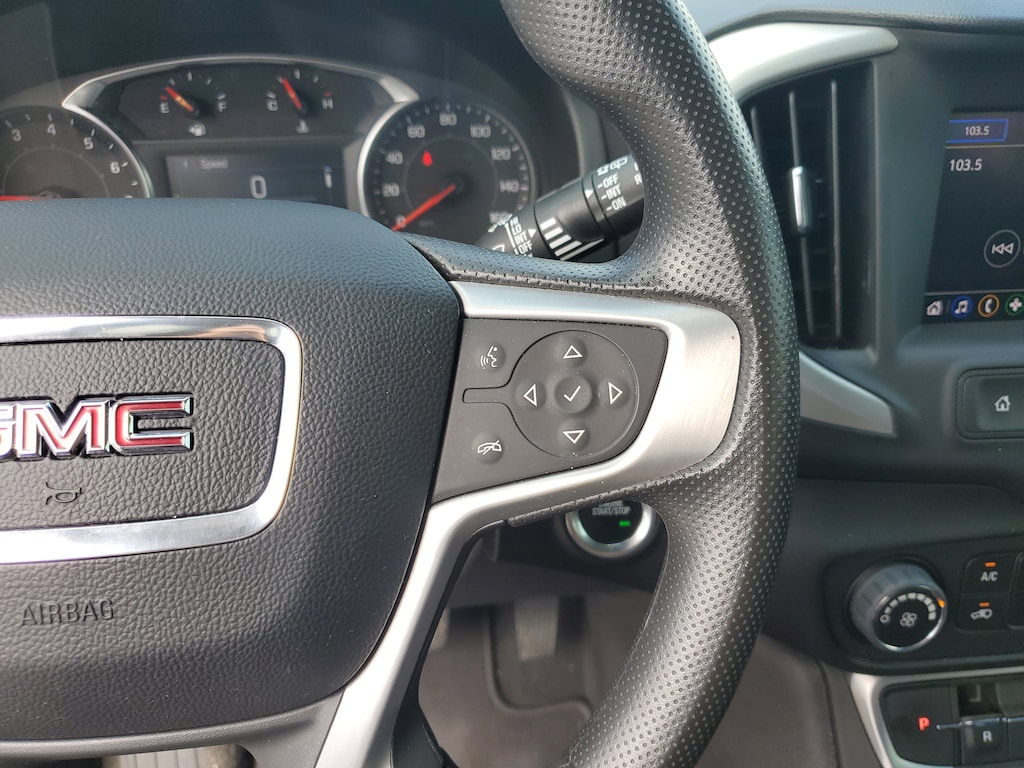 This Vehicle comes equipped with: License Plate Front Mounting Package, Preferred Equipment Group 3SA, 2 USB Data Ports w/Auxiliary Input Jack, 3.47 Final Drive Axle Ratio, 4-Way Manual Driver's Seat, 4-Way Manual Front Passenger Seat, 4-Wheel Disc Brakes, 4.2" Multi-Color Driver Information Screen, 6 Speakers, 6-Speaker Audio System Feature, ABS brakes, Air Conditioning, Alloy wheels, AM/FM radio: SiriusXM, Auto High-beam Headlights, Auto-dimming Rear-View mirror, Automatic temperature control, Bluetooth® For Phone, Brake assist, Bumpers: body-color, Compass, Delay-off headlights, Driver door bin, Driver vanity mirror, Dual front impact airbags, Dual front side impact airbags, Electronic Stability Control, Emergency communication system: OnStar and GMC connected services capable, Four wheel independent suspension, Front anti-roll bar, Front Bucket Seats, Front Center Armrest, Front reading lights, Fully automatic headlights, Heated door mirrors, Illuminated entry, Low tire pressure warning, Occupant sensing airbag, Outside temperature display, Overhead airbag, Overhead console, Panic alarm, Passenger door bin, Passenger vanity mirror, Power door mirrors, Power steering, Power windows, Premium Cloth Seat Trim, Radio data system, Radio: GMC Infotainment Audio System w/7" Display, Rear anti-roll bar, Rear seat center armrest, Rear window defroster, Rear window wiper, Remote keyless entry, Security system, SiriusXM, Speed control, Speed-sensing steering, Split folding rear seat, Spoiler, Steering wheel mounted audio controls, Tachometer, Telescoping steering wheel, Tilt steering wheel, Traction control, Trip computer, Variably intermittent wipers, Wheels: 17" x 7" Silver Painted Aluminum, and Wireless Apple CarPlay/Wireless Android Auto.