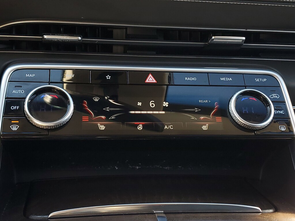 This Vehicle is nicely equipped with the following features: Option Group 01, 12 Speakers, 4-Wheel Disc Brakes, 4.363 Axle Ratio, ABS brakes, Air Conditioning, Alloy wheels, AM/FM radio: SiriusXM, Android Auto & Apple CarPlay, Anti-whiplash front head restraints, Auto High-beam Headlights, Auto tilt-away steering wheel, Auto-dimming door mirrors, Auto-dimming Rear-View mirror, Auto-leveling suspension, Automatic temperature control, Brake assist, Bumpers: body-color, Compass, Delay-off headlights, Driver door bin, Driver vanity mirror, Dual front impact airbags, Dual front side impact airbags, Electronic Stability Control, Emergency communication system: Genesis Connected Services, Exterior Parking Camera Rear, Four wheel independent suspension, Front anti-roll bar, Front Bucket Seats, Front Center Armrest, Front dual zone A/C, Front reading lights, Fully automatic headlights, Garage door transmitter: HomeLink, Genuine wood console insert, Genuine wood dashboard insert, Genuine wood door panel insert, Heated door mirrors, Heated Front Bucket Seats, Heated front seats, Heated steering wheel, Illuminated entry, Knee airbag, Leather steering wheel, Leatherette Seating Surfaces, Low tire pressure warning, Memory seat, Navigation System, Occupant sensing airbag, Outside temperature display, Overhead airbag, Overhead console, Panic alarm, Passenger door bin, Passenger vanity mirror, Power door mirrors, Power driver seat, Power Liftgate, Power passenger seat, Power steering, Power windows, Radio data system, Radio:14.5 Navigation System w/AM/FM/HD Radio, Rain sensing wipers, Rear air conditioning, Rear anti-roll bar, Rear reading lights, Rear seat center armrest, Rear side impact airbag, Rear window defroster, Rear window wiper, Remote keyless entry, Security system, Speed control, Speed-sensing steering, Speed-Sensitive Wipers, Split folding rear seat, Spoiler, Steering wheel memory, Steering wheel mounted audio controls, Tachometer, Telescoping steering wheel, Tilt steering wheel, Traction control, Trip computer, Turn signal indicator mirrors, Variably intermittent wipers, and Wheels: 19 x 8.5J Medium Metallic Gray Alloy.