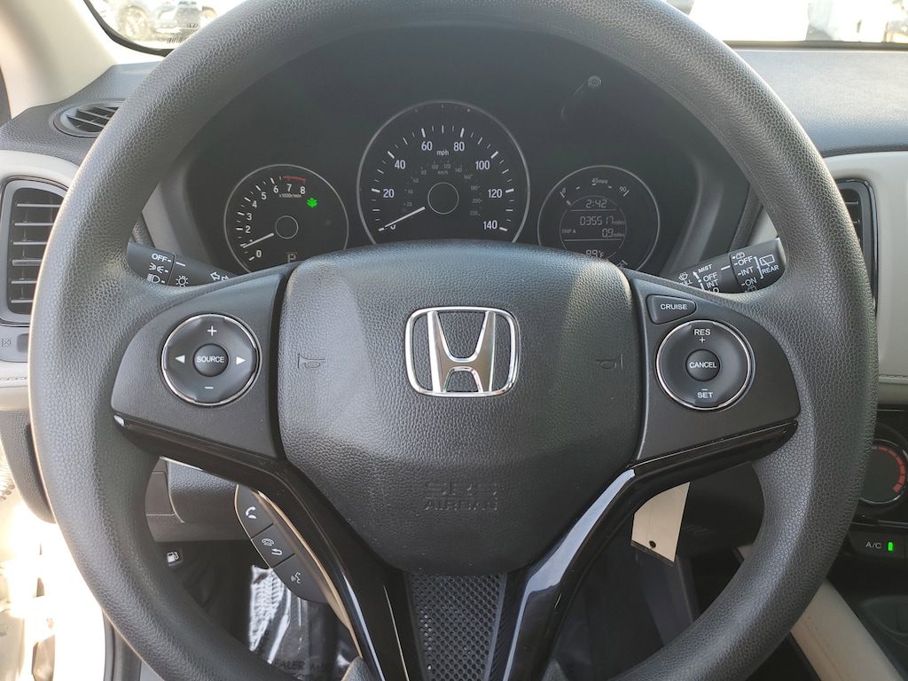 2019 Honda HR-V 1.8L I4 SOHC 16V i-VTEC White This vehicle also comes equipped with: 4 Speakers, 4-Wheel Disc Brakes, 5.436 Axle Ratio, ABS brakes, Air Conditioning, Alloy wheels, AM/FM radio, Brake assist, Bumpers: body-color, Cloth Seat Trim, Driver door bin, Driver vanity mirror, Dual front impact airbags, Dual front side impact airbags, Electronic Stability Control, Exterior Parking Camera Rear, Front anti-roll bar, Front Bucket Seats, Front Center Armrest, Front reading lights, Front wheel independent suspension, Fully automatic headlights, Illuminated entry, Low tire pressure warning, Occupant sensing airbag, Outside temperature display, Overhead airbag, Panic alarm, Passenger door bin, Passenger vanity mirror, Power door mirrors, Power steering, Power windows, Radio data system, Radio: AM/FM Stereo Audio System (160-Watt), Rear window defroster, Rear window wiper, Remote keyless entry, Security system, Speed control, Speed-sensing steering, Split folding rear seat, Spoiler, Steering wheel mounted audio controls, Tachometer, Telescoping steering wheel, Tilt steering wheel, Traction control, Trip computer, and Wheels: 17 Silver-Painted Alloy. FWD CVT Priced below KBB Fair Purchase Price! Odometer is 24309 miles below market average! 28/34 City/Highway MPG