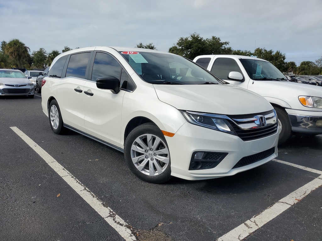 2019 Honda Odyssey 3.5L V6 SOHC i-VTEC 24V White This vehicle also comes equipped with: 3rd row seats: split-bench, 4-Wheel Disc Brakes, 4.33 Axle Ratio, 7 Speakers, ABS brakes, Air Conditioning, Alloy wheels, AM/FM radio, Anti-whiplash front head restraints, Automatic temperature control, Brake assist, Bumpers: body-color, Cloth Seat Trim, Delay-off headlights, Driver door bin, Driver vanity mirror, Driver's Seat Mounted Armrest, Dual front impact airbags, Dual front side impact airbags, Electronic Stability Control, Exterior Parking Camera Rear, Four wheel independent suspension, Front anti-roll bar, Front Bucket Seats, Front dual zone A/C, Front reading lights, Illuminated entry, Knee airbag, Low tire pressure warning, Occupant sensing airbag, Overhead airbag, Overhead console, Panic alarm, Passenger door bin, Passenger seat mounted armrest, Passenger vanity mirror, Power door mirrors, Power driver seat, Power passenger seat, Power steering, Power windows, Radio data system, Radio: 160-Watt AM/FM Audio System w/7 Speakers, Rear anti-roll bar, Rear reading lights, Rear window defroster, Rear window wiper, Reclining 3rd row seat, Remote keyless entry, Security system, Speed control, Speed-sensing steering, Speed-Sensitive Wipers, Split folding rear seat, Spoiler, Steering wheel mounted audio controls, Tachometer, Telescoping steering wheel, Tilt steering wheel, Traction control, Trip computer, Variably intermittent wipers, and Wheels: 18 Light Silver-Painted Alloy. FWD 9-Speed Automatic Recent Arrival! Odometer is 52261 miles below market average! 19/28 City/Highway MPG