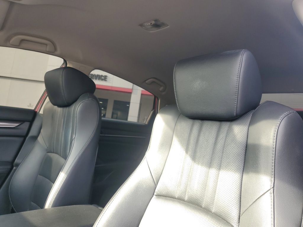 2021 Honda Accord 1.5T I4 DOHC 16V Turbocharged VTEC Red Black Leather. This vehicle also comes equipped with: Black Leather, 4-Wheel Disc Brakes, 8 Speakers, ABS brakes, Adaptive Cruise Control: Adaptive Cruise Control (ACC) with Low-Speed Follow, Air Conditioning, Alloy wheels, AM/FM radio, Apple CarPlay/Android Auto, Auto High-beam Headlights, Automatic temperature control, Brake assist, Bumpers: body-color, Delay-off headlights, Driver door bin, Driver vanity mirror, Dual front impact airbags, Dual front side impact airbags, Electronic Stability Control, Emergency communication system: HondaLink, Exterior Parking Camera Rear, Forward collision: Collision Mitigation Braking System (CMBS) + FCW mitigation, Four wheel independent suspension, Front anti-roll bar, Front Bucket Seats, Front Center Armrest, Front dual zone A/C, Front fog lights, Front reading lights, Fully automatic headlights, Heated door mirrors, Heated Front Bucket Seats, Heated front seats, Illuminated entry, Knee airbag, Lane Departure Warning System, Leather Shift Knob, Leather steering wheel, Leather-Trimmed Seats, Low tire pressure warning, Occupant sensing airbag, Outside temperature display, Overhead airbag, Overhead console, Panic alarm, Passenger door bin, Passenger vanity mirror, Power door mirrors, Power driver seat, Power passenger seat, Power steering, Power windows, Radio data system, Radio: 180-Watt AM/FM Audio System, Rear anti-roll bar, Rear seat center armrest, Rear window defroster, Remote keyless entry, Security system, Speed control, Speed-sensing steering, Speed-Sensitive Wipers, Split folding rear seat, Spoiler, Steering wheel mounted audio controls, Tachometer, Telescoping steering wheel, Tilt steering wheel, Traction control, Trip computer, Variably intermittent wipers, and Wheels: 19 Machine-Finished Alloy w/Black Inserts. FWD CVT Priced below KBB Fair Purchase Price! Odometer is 19313 miles below market average! 29/35 City/Highway MPG