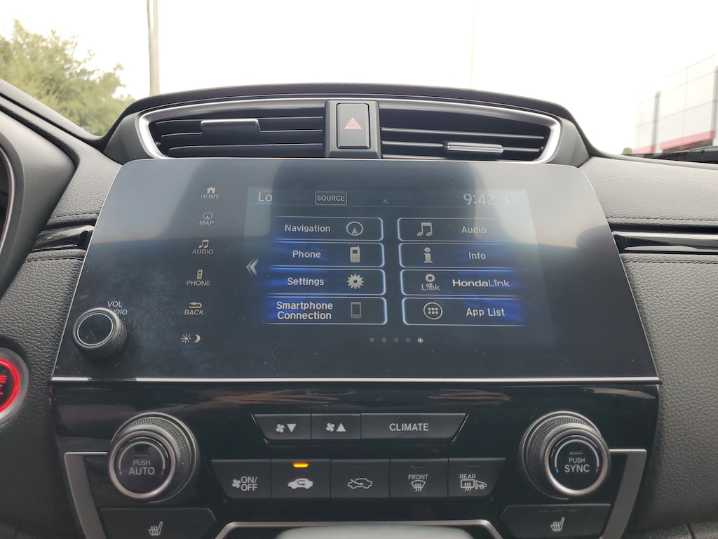 2021 Honda CR-V 1.5L I4 DOHC 16V Black This vehicle also comes equipped with: 4-Wheel Disc Brakes, 5.64 Axle Ratio, 9 Speakers, ABS brakes, Adaptive Cruise Control: Adaptive Cruise Control (ACC) with Low-Speed Follow, Air Conditioning, Alloy wheels, AM/FM radio: SiriusXM, Apple CarPlay/Android Auto, Auto High-beam Headlights, Auto-dimming Rear-View mirror, Automatic temperature control, Blind Spot Information (BSI) System warning, Brake assist, Bumpers: body-color, Compass, Delay-off headlights, Driver door bin, Driver vanity mirror, Dual front impact airbags, Dual front side impact airbags, Electronic Stability Control, Exterior Parking Camera Rear, Forward collision: Collision Mitigation Braking System (CMBS) + FCW mitigation, Four wheel independent suspension, Front anti-roll bar, Front Bucket Seats, Front Center Armrest, Front dual zone A/C, Front fog lights, Front reading lights, Garage door transmitter: HomeLink, Heated door mirrors, Heated Front Bucket Seats, Heated front seats, Heated steering wheel, Illuminated entry, Leather Seat Trim, Leather Shift Knob, Low tire pressure warning, Memory seat, Navigation system: Honda Satellite-Linked Navigation System, Occupant sensing airbag, Outside temperature display, Overhead airbag, Overhead console, Panic alarm, Passenger door bin, Passenger vanity mirror, Power door mirrors, Power driver seat, Power Liftgate, Power moonroof, Power passenger seat, Power steering, Power windows, Radio data system, Radio: 330-Watt AM/FM/HD/SiriusXM Prem Audio System, Rain sensing wipers, Rear anti-roll bar, Rear seat center armrest, Rear window defroster, Rear window wiper, Remote keyless entry, Roof rack: rails only, Security system, Speed control, Speed-sensing steering, Speed-Sensitive Wipers, Split folding rear seat, Spoiler, Steering wheel mounted audio controls, Tachometer, Telescoping steering wheel, Tilt steering wheel, Traction control, Trip computer, Turn signal indicator mirrors, Variably intermittent wipers, and Wheels: 19 Machine-Finished Alloy w/Gray Inserts. FWD CVT Priced below KBB Fair Purchase Price! 28/34 City/Highway MPG