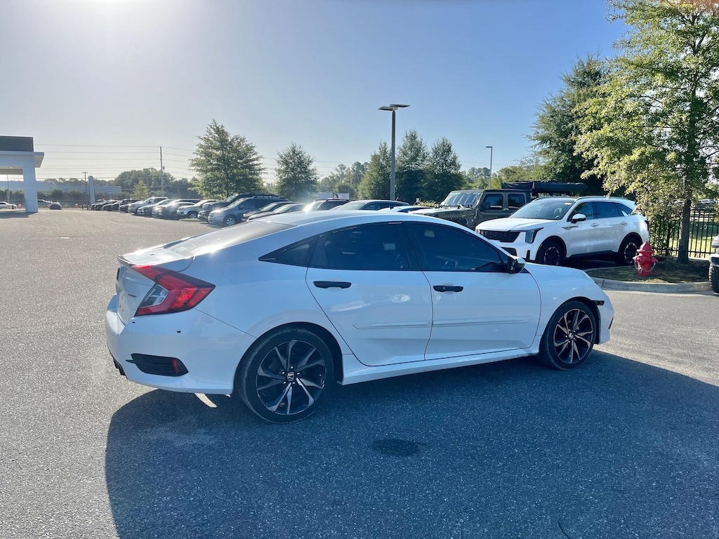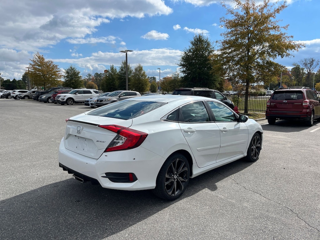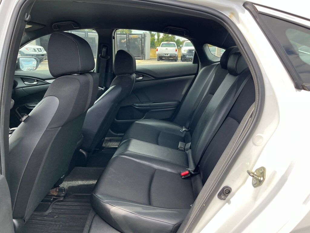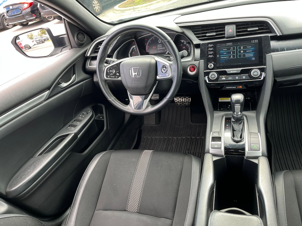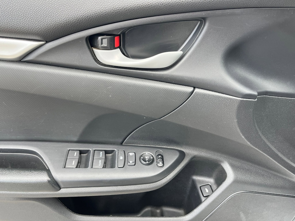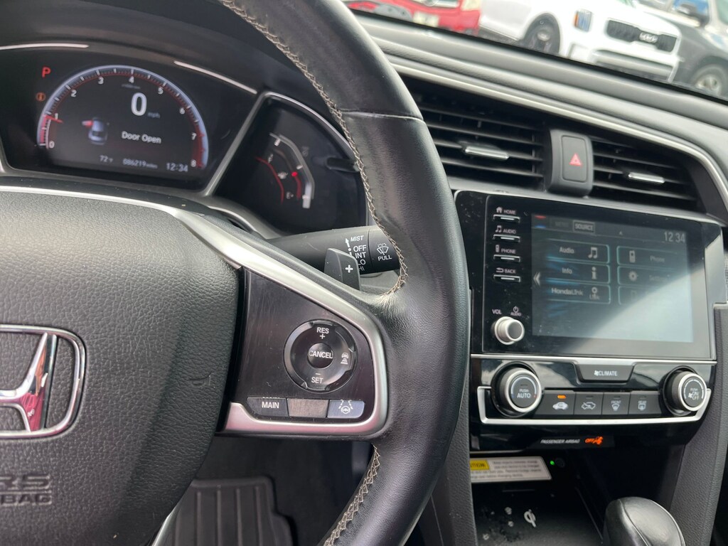 This vehicle comes equipped with : Black Cloth, 4-Wheel Disc Brakes, 8 Speakers, ABS brakes, Adaptive Cruise Control: Adaptive Cruise Control (ACC) with Low-Speed Follow, Air Conditioning, Alloy wheels, AM/FM radio, Apple CarPlay/Android Auto, Auto High-beam Headlights, Automatic temperature control, Brake assist, Bumpers: body-color, Cloth Seat Trim, Delay-off headlights, Driver door bin, Driver vanity mirror, Dual front impact airbags, Dual front side impact airbags, Electronic Stability Control, Emergency communication system: HondaLink, Exterior Parking Camera Rear, Forward collision: Collision Mitigation Braking System (CMBS) + FCW mitigation, Four wheel independent suspension, Front anti-roll bar, Front Bucket Seats, Front Center Armrest, Front fog lights, Front reading lights, Fully automatic headlights, Illuminated entry, Lane departure: Lane Keeping Assist System (LKAS) active, Leather Shift Knob, Low tire pressure warning, Occupant sensing airbag, Outside temperature display, Overhead airbag, Panic alarm, Passenger door bin, Passenger vanity mirror, Power door mirrors, Power steering, Power windows, Radio data system, Radio: 180-Watt AM/FM Audio System, Rear anti-roll bar, Rear window defroster, Remote keyless entry, Security system, Speed control, Speed-sensing steering, Split folding rear seat, Spoiler, Steering wheel mounted audio controls, Tachometer, Telescoping steering wheel, Tilt steering wheel, Traction control, Trip computer, and Wheels: 18" Alloy w/Gloss Black Inserts.