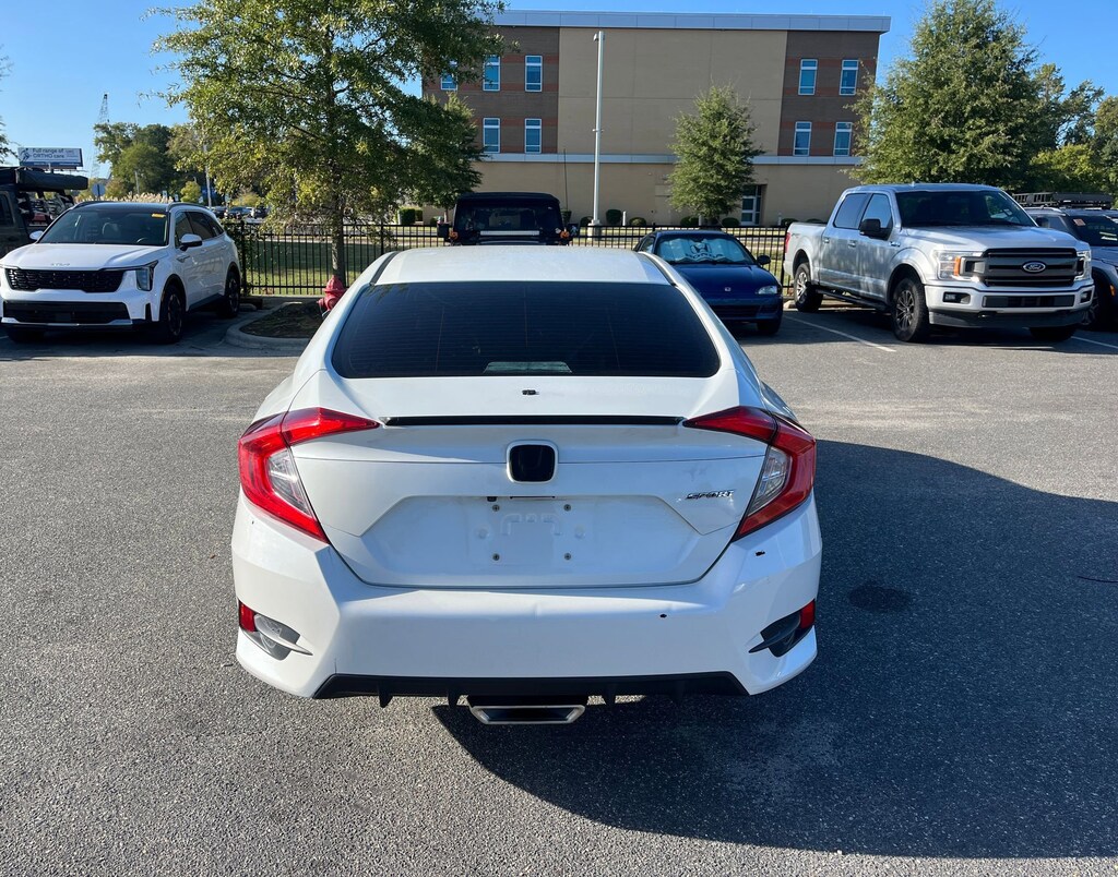 This vehicle comes equipped with : Cloth, 4-Wheel Disc Brakes, 8 Speakers, ABS brakes, Adaptive Cruise Control: Adaptive Cruise Control (ACC) with Low-Speed Follow, Air Conditioning, Alloy wheels, AM/FM radio, Apple CarPlay/Android Auto, Auto High-beam Headlights, Automatic temperature control, Brake assist, Bumpers: body-color, Cloth Seat Trim, Delay-off headlights, Driver door bin, Driver vanity mirror, Dual front impact airbags, Dual front side impact airbags, Electronic Stability Control, Emergency communication system: HondaLink, Exterior Parking Camera Rear, Forward collision: Collision Mitigation Braking System (CMBS) + FCW mitigation, Four wheel independent suspension, Front anti-roll bar, Front Bucket Seats, Front Center Armrest, Front fog lights, Front reading lights, Fully automatic headlights, Illuminated entry, Lane departure: Lane Keeping Assist System (LKAS) active, Leather Shift Knob, Low tire pressure warning, Occupant sensing airbag, Outside temperature display, Overhead airbag, Panic alarm, Passenger door bin, Passenger vanity mirror, Power door mirrors, Power steering, Power windows, Radio data system, Radio: 180-Watt AM/FM Audio System, Rear anti-roll bar, Rear window defroster, Remote keyless entry, Security system, Speed control, Speed-sensing steering, Split folding rear seat, Spoiler, Steering wheel mounted audio controls, Tachometer, Telescoping steering wheel, Tilt steering wheel, Traction control, Trip computer, and Wheels: 18" Alloy w/Gloss Black Inserts.