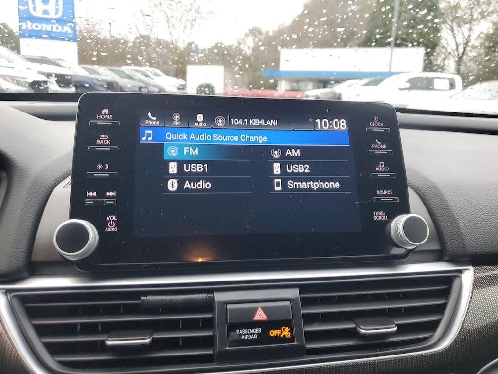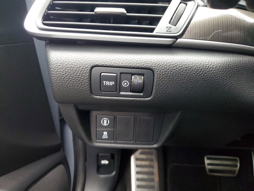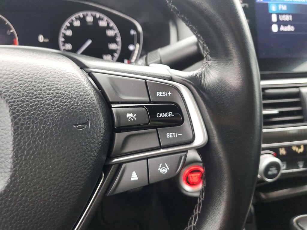 This Vehicle includes the following Options and Features 4-Wheel Disc Brakes, 8 Speakers, ABS brakes, Adaptive Cruise Control: Adaptive Cruise Control (ACC) with Low-Speed Follow, Air Conditioning, Alloy wheels, AM/FM radio, Apple CarPlay/Android Auto, Auto High-beam Headlights, Automatic temperature control, Brake assist, Bumpers: body-color, Delay-off headlights, Driver door bin, Driver vanity mirror, Dual front impact airbags, Dual front side impact airbags, Electronic Stability Control, Emergency communication system: HondaLink, Exterior Parking Camera Rear, Fabric w/Synthetic Leather Seat Trim, Forward collision: Collision Mitigation Braking System (CMBS) + FCW mitigation, Four wheel independent suspension, Front anti-roll bar, Front Bucket Seats, Front Center Armrest, Front dual zone A/C, Front fog lights, Front reading lights, Fully automatic headlights, Illuminated entry, Knee airbag, Lane Departure Warning System, Leather Shift Knob, Leather steering wheel, Low tire pressure warning, Occupant sensing airbag, Outside temperature display, Overhead airbag, Overhead console, Panic alarm, Passenger door bin, Passenger vanity mirror, Power door mirrors, Power driver seat, Power steering, Power windows, Radio data system, Radio: 180-Watt AM/FM Audio System, Rear anti-roll bar, Rear seat center armrest, Rear window defroster, Remote keyless entry, Security system, Speed control, Speed-sensing steering, Speed-Sensitive Wipers, Split folding rear seat, Spoiler, Steering wheel mounted audio controls, Tachometer, Telescoping steering wheel, Tilt steering wheel, Traction control, Trip computer, Variably intermittent wipers, and Wheels: 19" Machine-Finished Alloy w/Black Inserts.