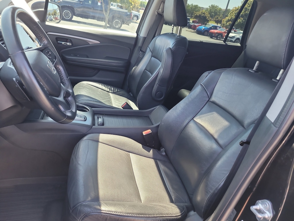 This Vehicle is nicely equipped with the following features: 3rd row seats: split-bench, 4-Wheel Disc Brakes, 4.33 Axle Ratio, 7 Speakers, A/V remote: CabinControl, ABS brakes, Air Conditioning, Alloy wheels, AM/FM radio: SiriusXM, Apple CarPlay/Android Auto, Auto High-beam Headlights, Auto-dimming Rear-View mirror, Automatic temperature control, Blind Spot Information (BSI) System warning, Brake assist, Bumpers: body-color, Delay-off headlights, Driver door bin, Driver vanity mirror, Dual front impact airbags, Dual front side impact airbags, Electronic Stability Control, Emergency communication system: HondaLink Assist, Exterior Parking Camera Rear, Forward collision: Collision Mitigation Braking System (CMBS) + FCW mitigation, Four wheel independent suspension, Front anti-roll bar, Front Bucket Seats, Front Center Armrest, Front dual zone A/C, Front fog lights, Front reading lights, Fully automatic headlights, Garage door transmitter: HomeLink, Heated door mirrors, Heated Front Bucket Seats, Heated front seats, Illuminated entry, Lane departure: Lane Keeping Assist System (LKAS) active, Leather Seat Trim, Low tire pressure warning, Memory seat, Occupant sensing airbag, Outside temperature display, Overhead airbag, Overhead console, Panic alarm, Passenger door bin, Passenger vanity mirror, Power door mirrors, Power driver seat, Power Liftgate, Power moonroof, Power passenger seat, Power steering, Power windows, Radio data system, Radio: 215-Watt Audio System, Rear air conditioning, Rear anti-roll bar, Rear reading lights, Rear seat center armrest, Rear window defroster, Rear window wiper, Reclining 3rd row seat, Remote keyless entry, Roof rack: rails only, Security system, Speed control, Speed-sensing steering, Speed-Sensitive Wipers, Split folding rear seat, Spoiler, Steering wheel mounted audio controls, Tachometer, Telescoping steering wheel, Tilt steering wheel, Traction control, Trip computer, Turn signal indicator mirrors, Variably intermittent wipers, and Wheels: 20" Exclusive Gloss Black Alloy. 20/27 City/Highway MPG