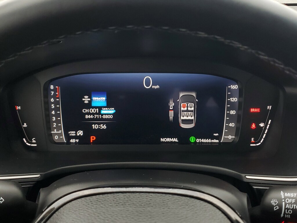 This Vehicle is nicely equipped with the following features: Black Leather, 12 Speakers, AM/FM radio: SiriusXM, Automatic temperature control, Blind Spot Information (BSI) System warning, Bose Premium Audio System, Front dual zone A/C, Navigation system: Honda Satellite-Linked Navigation System, Power driver seat, Power moonroof, Power steering, Power windows, Radio data system, Rear window defroster, Remote keyless entry, Steering wheel mounted audio controls, 4-Wheel Disc Brakes, ABS brakes, Adaptive Cruise Control: Adaptive Cruise Control (ACC) with Low-Speed Follow, Air Conditioning, Alloy wheels, Apple CarPlay/Android Auto, Auto High-beam Headlights, Auto-dimming Rear-View mirror, Brake assist, Bumpers: body-color, Compass, Delay-off headlights, Driver door bin, Driver vanity mirror, Dual front impact airbags, Dual front side impact airbags, Electronic Stability Control, Emergency communication system: HondaLink, Exterior Parking Camera Rear, Four wheel independent suspension, Front anti-roll bar, Front Bucket Seats, Front Center Armrest, Front fog lights, Front reading lights, Fully automatic headlights, Garage door transmitter: HomeLink, Heated door mirrors, Heated Front Bucket Seats, Heated front seats, Illuminated entry, Knee airbag, Leather Shift Knob, Leather steering wheel, Leather-Trimmed Seating Surfaces, Low tire pressure warning, Occupant sensing airbag, Outside temperature display, Overhead airbag, Overhead console, Panic alarm, Passenger door bin, Passenger vanity mirror, Power door mirrors, Power passenger seat, Rain sensing wipers, Rear anti-roll bar, Rear seat center armrest, Rear side impact airbag, Security system, Speed control, Speed-sensing steering, Split folding rear seat, Tachometer, Telescoping steering wheel, Tilt steering wheel, Traction control, Trip computer, Turn signal indicator mirrors, Variably intermittent wipers, and Wheels: 18 Alloy w/Gloss Shark Gray Inserts.