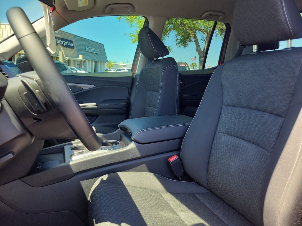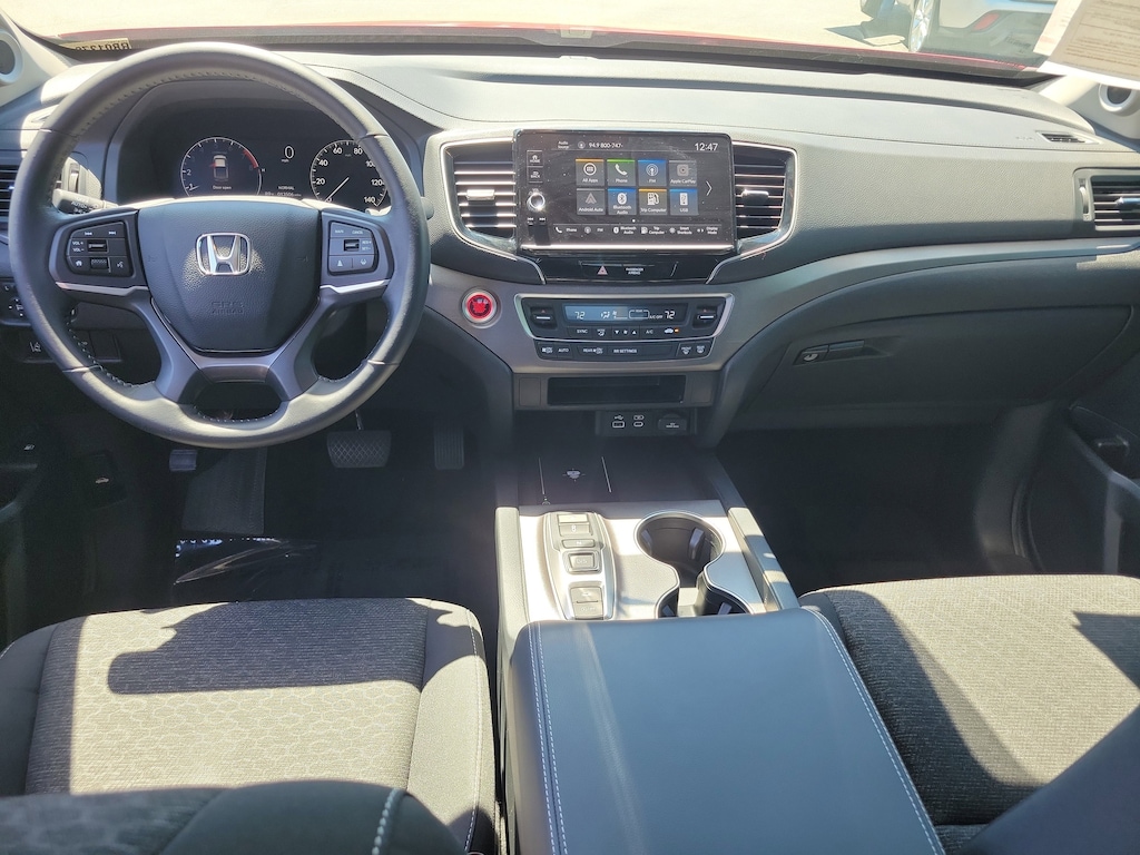 2024 Honda Ridgeline 3.5L V6 SOHC i-VTEC 24V Cloth. This vehicle also comes equipped with: Cloth, 4-Wheel Disc Brakes, 4.33 Axle Ratio, 7 Speakers, ABS brakes, Air Conditioning, Alloy wheels, AM/FM radio, Automatic temperature control, Blind Spot Information (BSI) System warning, Bluetooth® Hands-Free Link, Brake assist, Bumpers: body-color, Cloth Seat Trim, Delay-off headlights, Driver door bin, Driver vanity mirror, Driver's Seat Mounted Armrest, Dual front impact airbags, Dual front side impact airbags, Electronic Stability Control, Emergency communication system: HondaLink Assist, Exterior Parking Camera Rear, Four wheel independent suspension, Front anti-roll bar, Front Bucket Seats, Front dual zone A/C, Front fog lights, Fully automatic headlights, Illuminated entry, Low tire pressure warning, Occupant sensing airbag, Outside temperature display, Overhead airbag, Overhead console, Panic alarm, Passenger door bin, Passenger seat mounted armrest, Passenger vanity mirror, Power door mirrors, Power steering, Power windows, Radio data system, Radio: 215-Watt Audio System w/7 Speakers, Rear air conditioning, Rear anti-roll bar, Rear reading lights, Rear seat center armrest, Rear step bumper, Rear window defroster, Remote keyless entry, Security system, Speed control, Speed-sensing steering, Split folding rear seat, Steering wheel mounted audio controls, Tachometer, Telescoping steering wheel, Tilt steering wheel, Traction control, Trip computer, Variably intermittent wipers, Wheels: 18 Shark Gray Alloy, and Wireless Apple CarPlay/Wireless Android Auto. AWD 9-Speed Automatic Recent Arrival! Odometer is 1738 miles below market average!