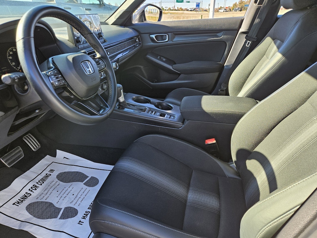 Black Cloth. Platinum White Pearl 2025 Honda Civic Sport 4D Sedan FWD CVT 2.0L I4 DOHC 16V