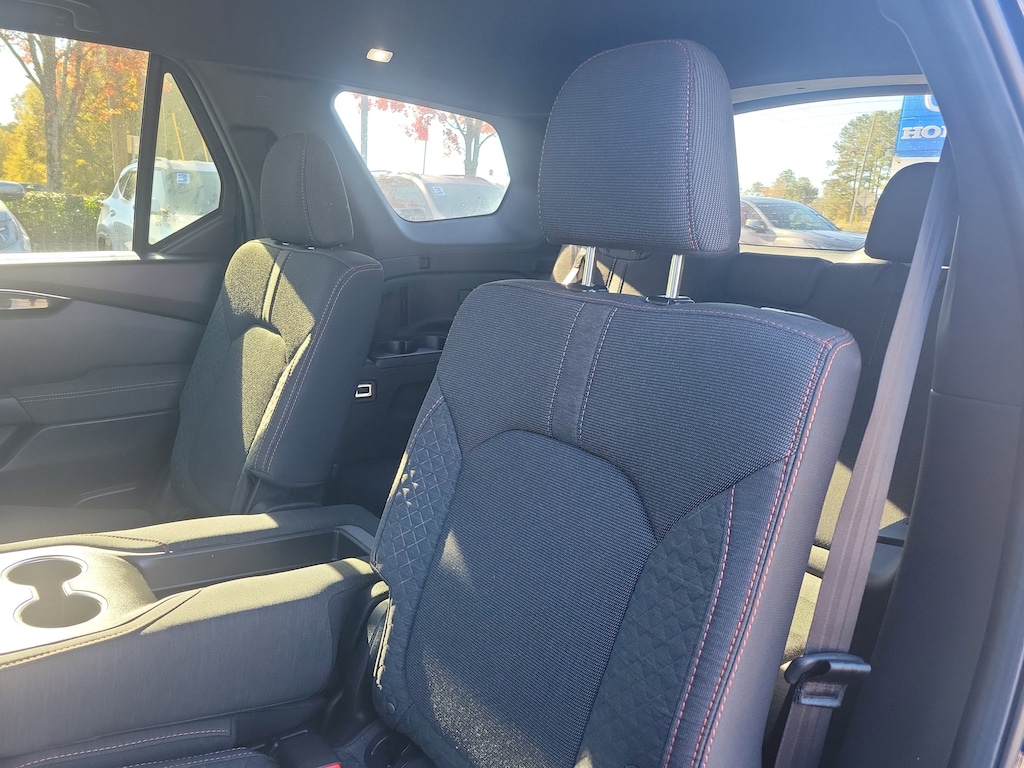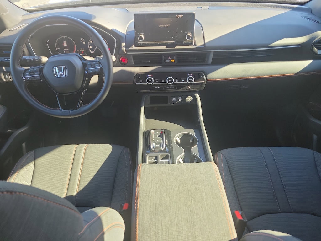 This Vehicle includes the following Options and Features AWD, 3rd row seats: split-bench, 4-Wheel Disc Brakes, 4.167 Axle Ratio, 7 Speakers, ABS brakes, Adaptive Cruise Control: Adaptive Cruise Control (ACC) with Low-Speed Follow, Air Conditioning, Alloy wheels, Apple CarPlay/Android Auto, Auto High-beam Headlights, Automatic temperature control, Blind Spot Information (BSI) System warning, Brake assist, Bumpers: body-color, Cloth Seat Trim, Delay-off headlights, Driver door bin, Driver vanity mirror, Dual front impact airbags, Dual front side impact airbags, Electronic Stability Control, Emergency communication system: HondaLink Assist, Exterior Parking Camera Rear, Four wheel independent suspension, Front anti-roll bar, Front Bucket Seats, Front Center Armrest, Front dual zone A/C, Front fog lights, Front reading lights, Fully automatic headlights, Heated Front Bucket Seats, Heated front seats, Illuminated entry, Knee airbag, Lane departure: Lane Keeping Assist System (LKAS) active, Low tire pressure warning, Occupant sensing airbag, Outside temperature display, Overhead airbag, Overhead console, Panic alarm, Passenger door bin, Passenger vanity mirror, Power door mirrors, Power driver seat, Power passenger seat, Power steering, Power windows, Radio data system, Radio: 240-Watt Audio System, Rear air conditioning, Rear anti-roll bar, Rear reading lights, Rear seat center armrest, Rear window defroster, Rear window wiper, Reclining 3rd row seat, Remote keyless entry, Security system, Speed control, Speed-sensing steering, Speed-Sensitive Wipers, Split folding rear seat, Spoiler, Steering wheel mounted audio controls, Tachometer, Telescoping steering wheel, Tilt steering wheel, Traction control, Trip computer, and Variably intermittent wipers.