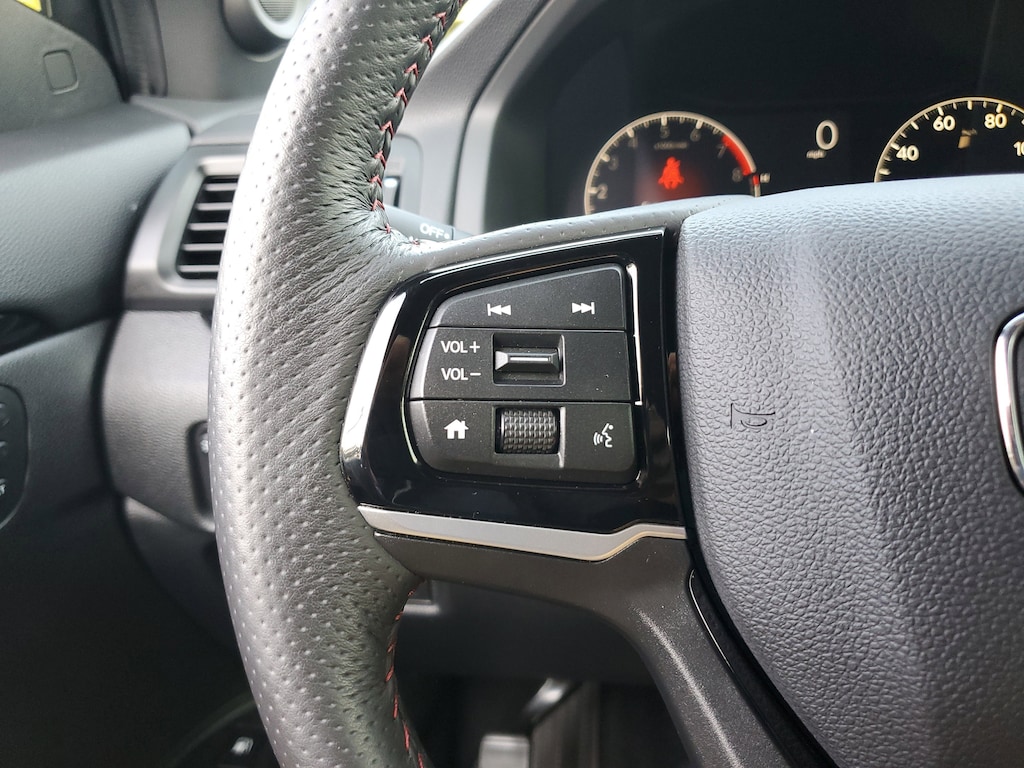 This Vehicle is nicely equipped with the following features: Function Package (All Season Mats (PPO), Bed Cargo Net (PPO), Door Sill Film (PPO), and Interior Tie-Down Hook (PPO)), Black Leather, Alloy wheels, Honda Satellite-Linked Navigation System, Navigation System, Navigation system: Honda Satellite-Linked Navigation System, Power moonroof, Wheels: 18 Berlina Black Alloy, 4-Wheel Disc Brakes, 4.33 Axle Ratio, 8 Speakers, ABS brakes, Air Conditioning, AM/FM radio: SiriusXM, Auto High-beam Headlights, Auto-dimming Rear-View mirror, Automatic temperature control, Blind Spot Information (BSI) System warning, Bluetooth® Hands-Free Link, Brake assist, Bumpers: body-color, Compass, Delay-off headlights, Driver door bin, Driver vanity mirror, Driver's Seat Mounted Armrest, Dual front impact airbags, Dual front side impact airbags, Electronic Stability Control, Emergency communication system: HondaLink Assist, Exterior Parking Camera Rear, Four wheel independent suspension, Front anti-roll bar, Front Bucket Seats, Front dual zone A/C, Front fog lights, Front reading lights, Fully automatic headlights, Garage door transmitter: HomeLink, Heated & Ventilated Front Bucket Seats, Heated door mirrors, Heated front seats, Heated rear seats, Heated steering wheel, Illuminated entry, Leather Seat Trim, Leather steering wheel, Low tire pressure warning, Memory seat, Occupant sensing airbag, Outside temperature display, Overhead airbag, Overhead console, Panic alarm, Passenger door bin, Passenger seat mounted armrest, Passenger vanity mirror, Power door mirrors, Power driver seat, Power passenger seat, Power steering, Power windows, Radio data system, Radio: 540-Watt Premium Audio System w/8 Speakers, Rear air conditioning, Rear anti-roll bar, Rear reading lights, Rear seat center armrest, Rear step bumper, Rear window defroster, Remote keyless entry, Security system, SiriusXM, Speed control, Speed-sensing steering, Split folding rear seat, Steering wheel mounted audio controls, Tachometer, Telescoping steering wheel, Tilt steering wheel, Traction control, Trip computer, Turn signal indicator mirrors, Variably intermittent wipers, and Ventilated front seats.
