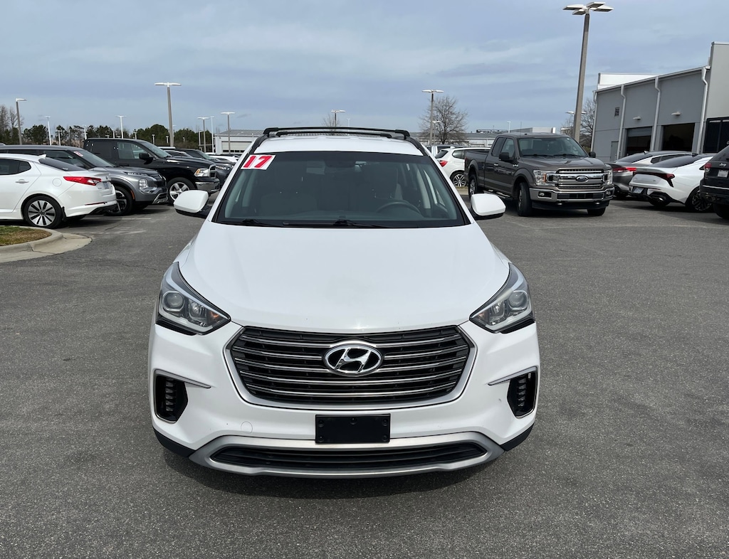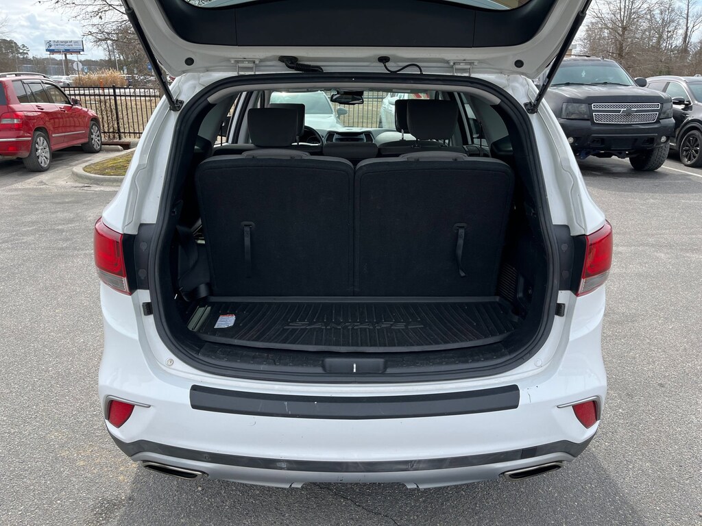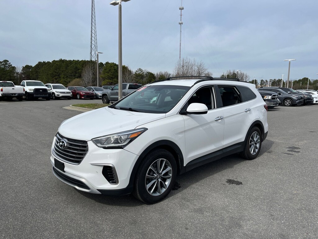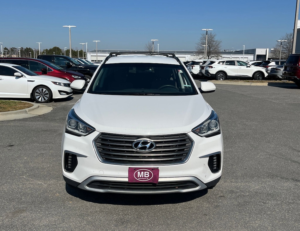 This vehicle comes equipped with : Option Group 01, Gray Cloth, 18" x 7.5J Aluminum Alloy Wheels, 3.041 Axle Ratio, 3rd row seats: split-bench, 4-Wheel Disc Brakes, 6 Speakers, ABS brakes, Air Conditioning, Alloy wheels, AM/FM radio: SiriusXM, Android Auto, Automatic temperature control, Brake assist, Bumper Applique, Bumpers: body-color, Cargo Tray, Carpeted Floor Mats, CD player, Cloth Seating Surfaces w/Yes Essentials, Delay-off headlights, Driver door bin, Driver vanity mirror, Dual front impact airbags, Dual front side impact airbags, Electronic Stability Control, Emergency communication system: Blue Link, Exterior Parking Camera Rear, First Aid Kit, Four wheel independent suspension, Front anti-roll bar, Front Bucket Seats, Front Center Armrest, Front dual zone A/C, Front reading lights, Fully automatic headlights, Heated door mirrors, Illuminated entry, Knee airbag, Leather Seating Surfaces, Low tire pressure warning, Multi-Adjustable Bucket Seats, Occupant sensing airbag, Outside temperature display, Overhead airbag, Overhead console, Panic alarm, Passenger door bin, Passenger vanity mirror, Power door mirrors, Power driver seat, Power steering, Power windows, Radio: AM/FM/SiriusXM/CD/HD/MP3 Display Audio, Rear air conditioning, Rear anti-roll bar, Rear seat center armrest, Rear window defroster, Rear window wiper, Remote keyless entry, Roof Rack Cross Bars, Roof rack: rails only, Security system, Speed control, Speed-sensing steering, Split folding rear seat, Spoiler, Steering wheel mounted audio controls, Tachometer, Telescoping steering wheel, Tilt steering wheel, Traction control, Trip computer, and Variably intermittent wipers.