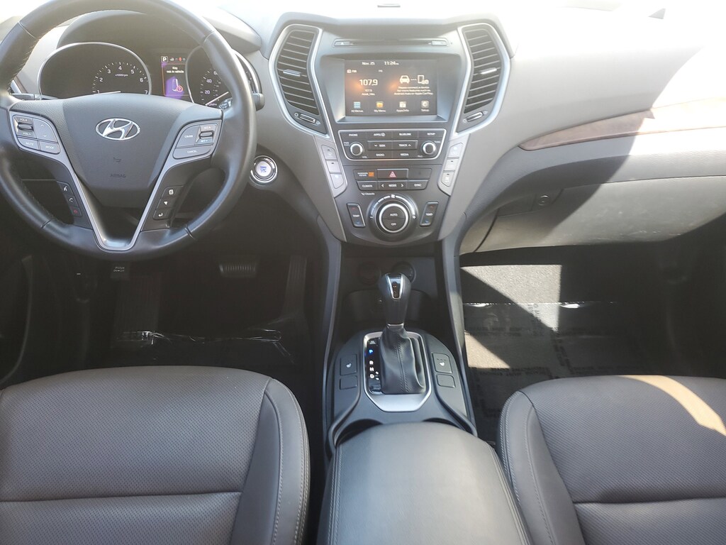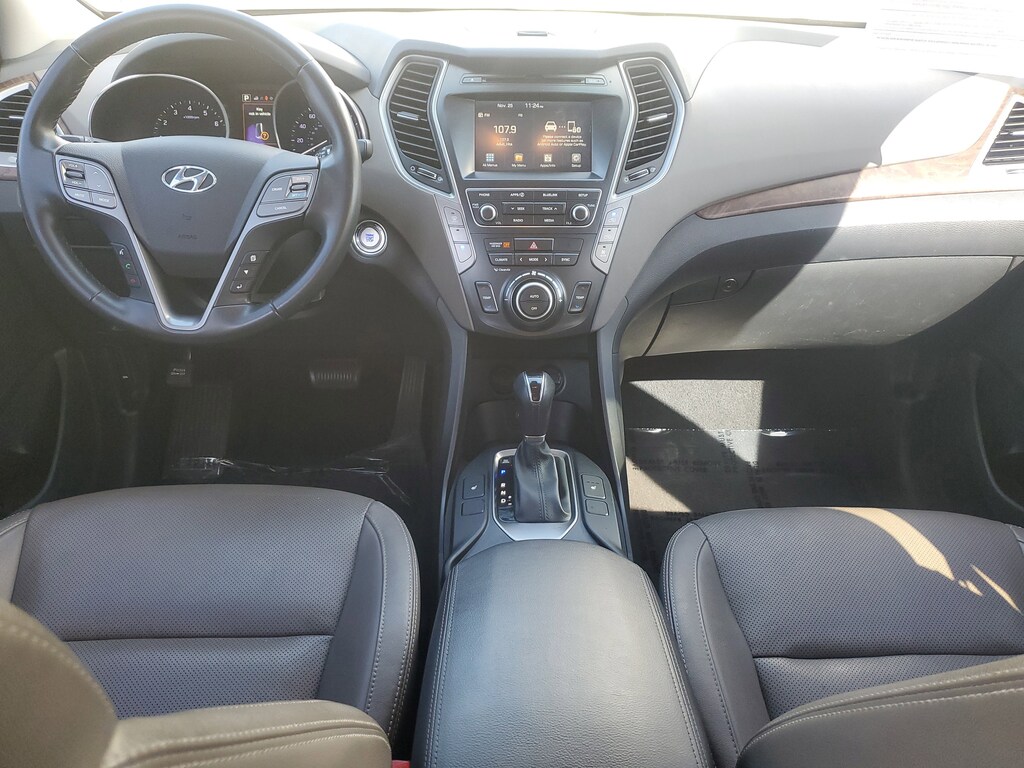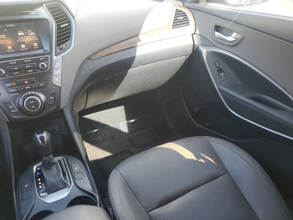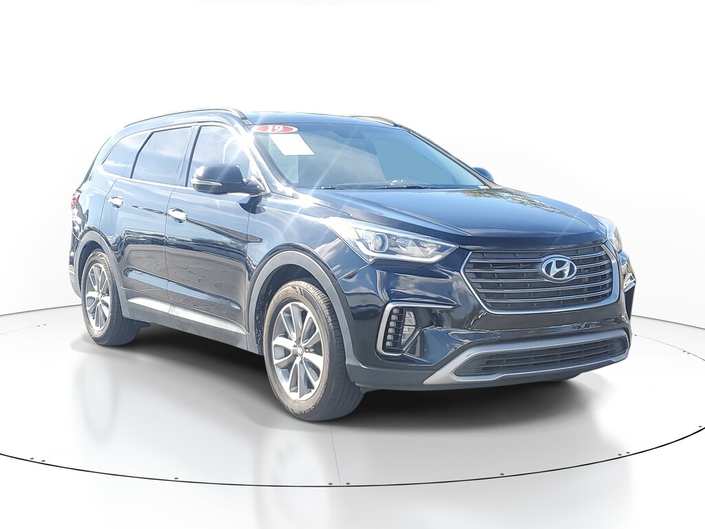 2019 Hyundai Santa Fe XL 3.3L V6 DGI DOHC 24V Becketts Black This vehicle also comes equipped with: SE Premium Package 02 (3rd Row USB Outlet, Auto-Dimming Inside Rear-View Mirror, Blind Spot Detection System, Dual Power Side Mirrors w/Turn Signal Indicators, Electroluminescent Gauge Cluster, Front LED Fog Lights, Hands-Free Smart Liftgate w/Auto Open, Heated Front Seats, Leather Seating Surfaces, Leather Wrapped Steering Wheel & Shift Knob, Manual Rear Side Window Shades, Option Group 02, Power Height-Adjustable Front Passenger Seat, Premium Door Sill Plates, Proximity Key Entry w/Push Button Start, and Rear Cross Traffic Alert), 18 x 7.5J Alloy Wheels, 3.041 Axle Ratio, 3rd row seats: split-bench, 4-Wheel Disc Brakes, 6 Speakers, ABS brakes, Air Conditioning, Alloy wheels, AM/FM radio: SiriusXM, Apple CarPlay & Android Auto, Automatic temperature control, Brake assist, Bumpers: body-color, Cargo Cover, Cargo Tray, Carpeted Floor Mats, CD player, Cloth Seating Surfaces w/Yes Essentials, Delay-off headlights, Driver door bin, Driver vanity mirror, Dual front impact airbags, Dual front side impact airbags, Electronic Stability Control, Emergency communication system: Blue Link, Exterior Parking Camera Rear, First Aid Kit, Four wheel independent suspension, Front anti-roll bar, Front Bucket Seats, Front Center Armrest, Front dual zone A/C, Front reading lights, Fully automatic headlights, Heated door mirrors, Illuminated entry, Knee airbag, Low tire pressure warning, Occupant sensing airbag, Outside temperature display, Overhead airbag, Overhead console, Panic alarm, Passenger door bin, Passenger vanity mirror, Power door mirrors, Power driver seat, Power steering, Power windows, Radio: AM/FM/HD/CD/MP3 Display Audio, Rear anti-roll bar, Rear seat center armrest, Rear window defroster, Rear window wiper, Remote keyless entry, Roof rack: rails only, Security system, Speed control, Speed-sensing steering, Split folding rear seat, Spoiler, Steering wheel mounted audio controls, Tachometer, Telescoping steering wheel, Tilt steering wheel, Traction control, Trip computer, and Variably intermittent wipers. FWD 6-Speed Automatic with Shiftronic Priced below KBB Fair Purchase Price! Odometer is 15070 miles below market average!