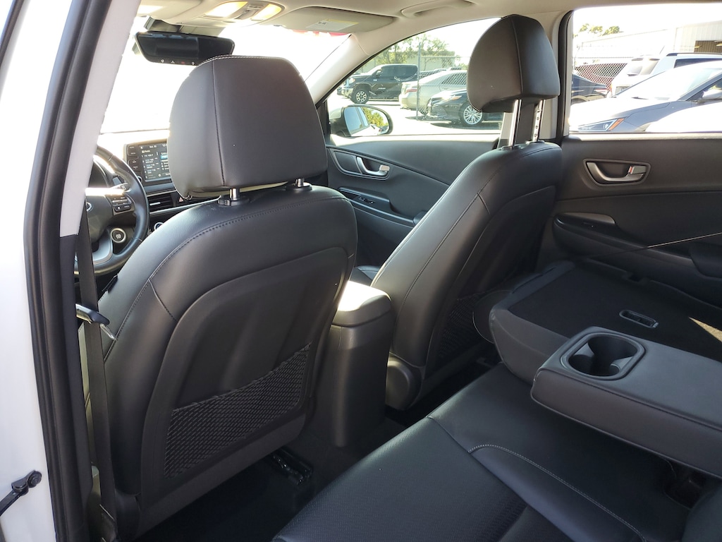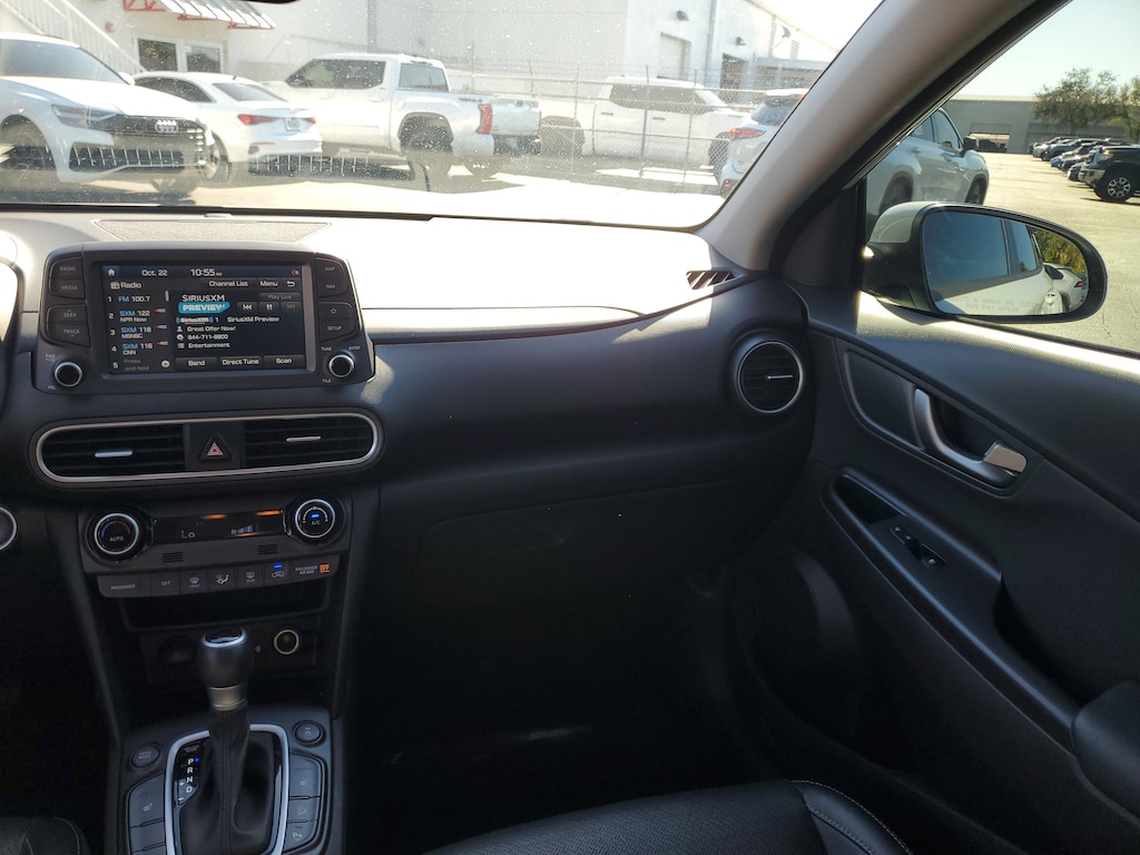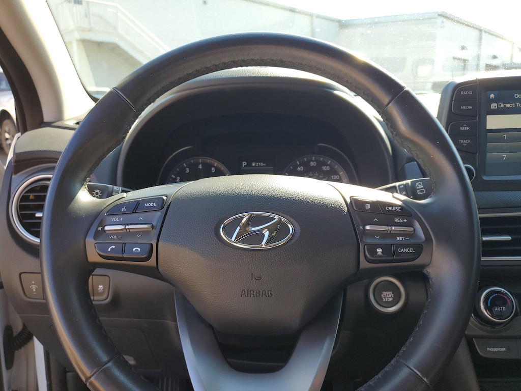 2021 Hyundai Kona I4 Chalk White This vehicle also comes equipped with: Cargo Package (Cargo Net and Cargo Tray), Option Group 01, 3.579 Axle Ratio, 4-Wheel Disc Brakes, 8 Speakers, ABS brakes, Air Conditioning, Alloy wheels, AM/FM radio: SiriusXM, Apple CarPlay & Android Auto, Auto High-beam Headlights, Auto-dimming Rear-View mirror, Automatic temperature control, Brake assist, Bumpers: body-color, Carpeted Floor Mats, Delay-off headlights, Driver door bin, Driver vanity mirror, Dual front impact airbags, Dual front side impact airbags, Electronic Stability Control, Emergency communication system, Exterior Parking Camera Rear, Four wheel independent suspension, Front & Rear Mudguards, Front anti-roll bar, Front Bucket Seats, Front Center Armrest, Front fog lights, Front reading lights, Fully automatic headlights, Garage door transmitter: HomeLink, Heads-Up Display, Heated door mirrors, Heated Front Bucket Seats, Heated front seats, Illuminated entry, Leather Seat Trim, Leather Shift Knob, Leather steering wheel, Low tire pressure warning, Navigation System, Occupant sensing airbag, Outside temperature display, Overhead airbag, Overhead console, Panic alarm, Passenger door bin, Passenger vanity mirror, Power door mirrors, Power driver seat, Power moonroof, Power steering, Power windows, Radio: AM/FM/MP3/HD Radio/SiriusXM Audio System, Rain sensing wipers, Rear anti-roll bar, Rear seat center armrest, Rear window defroster, Rear window wiper, Remote keyless entry, Roof rack: rails only, Security system, Speed control, Speed-sensing steering, Split folding rear seat, Spoiler, Steering wheel mounted audio controls, Tachometer, Telescoping steering wheel, Tilt steering wheel, Traction control, Trip computer, Turn signal indicator mirrors, Variably intermittent wipers, Wheel Locks, and Wheels: 18 x 7.5J Alloy. AWD 7-Speed Automatic Odometer is 9574 miles below market average! 26/29 City/Highway MPG