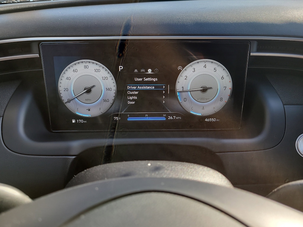 This Vehicle is nicely equipped with the following features: Convenience Package (10.25" Digital Instrument Cluster, Auto-Dimming Interior Mirror w/Homelink, Dual Automatic Temperature Control, H-Tex Seat Trim, Leather-Wrapped Shift Knob, Leather-Wrapped Steering Wheel, LED Interior Lights (Room, Map), Option Group 02, Power Sunroof, Ultrasonic Rear Occupant Alert, and Wheels: 19" x 7.5J" Machine-Face Finish Alloy), AWD, 3.648 Axle Ratio, 4-Wheel Disc Brakes, 6 Speakers, ABS brakes, Air Conditioning, Alloy wheels, AM/FM radio: SiriusXM, Apple CarPlay & Android Auto, Auto High-beam Headlights, Brake assist, Bumpers: body-color, Carpeted Floor Mats, Delay-off headlights, Driver door bin, Driver vanity mirror, Dual front impact airbags, Dual front side impact airbags, Electronic Stability Control, Emergency communication system: Blue Link Connected Car Service (3-year complimentary subscription), Four wheel independent suspension, Front anti-roll bar, Front Bucket Seats, Front Center Armrest, Front reading lights, Fully automatic headlights, Heated door mirrors, Heated Front Bucket Seats, Heated front seats, Illuminated entry, Low tire pressure warning, Occupant sensing airbag, Outside temperature display, Overhead airbag, Overhead console, Panic alarm, Passenger door bin, Passenger vanity mirror, Power door mirrors, Power driver seat, Power Liftgate, Power steering, Power windows, Radio data system, Radio: AM/FM/HD/SiriusXM Audio System, Rear anti-roll bar, Rear seat center armrest, Rear window defroster, Rear window wiper, Remote keyless entry, Roof rack: rails only, Security system, Speed control, Split folding rear seat, Spoiler, Stain & Odor Resistant Cloth Seat Trim, Steering wheel mounted audio controls, Tachometer, Telescoping steering wheel, Tilt steering wheel, Tow Hitch, Traction control, Trip computer, Turn signal indicator mirrors, Variably intermittent wipers, and Wheels: 17" x 7.0J" Alloy. 23/28 City/Highway MPG