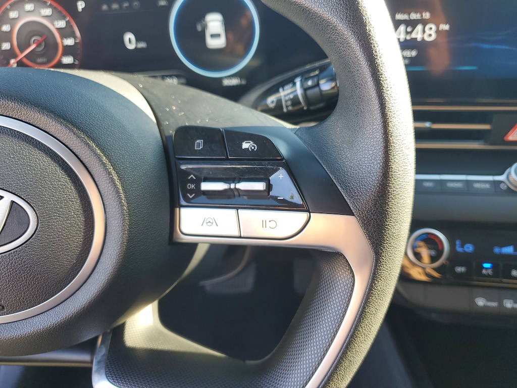 This Vehicle comes equipped with: Option Group 01, 16" x 6.5J Alloy Wheels, 4-Wheel Disc Brakes, 6 Speakers, ABS brakes, Air Conditioning, Alloy wheels, AM/FM radio: SiriusXM, Apple CarPlay & Android Auto, Auto High-beam Headlights, Automatic temperature control, Brake assist, Bumpers: body-color, Cloth Seat Trim, Delay-off headlights, Driver door bin, Driver vanity mirror, Dual front impact airbags, Dual front side impact airbags, Electronic Stability Control, Emergency communication system: Bluelink+, Exterior Parking Camera Rear, Front anti-roll bar, Front Bucket Seats, Front Center Armrest, Front dual zone A/C, Front reading lights, Front wheel independent suspension, Fully automatic headlights, Illuminated entry, Low tire pressure warning, Navigation System, Occupant sensing airbag, Outside temperature display, Overhead airbag, Overhead console, Panic alarm, Passenger door bin, Passenger vanity mirror, Power door mirrors, Power steering, Power windows, Radio: AM/FM/HD/SiriusXM Display Audio, Rear side impact airbag, Rear window defroster, Remote keyless entry, Security system, Speed control, Speed-sensing steering, Steering wheel mounted audio controls, Tachometer, Telescoping steering wheel, Tilt steering wheel, Traction control, Trip computer, and Variably intermittent wipers.