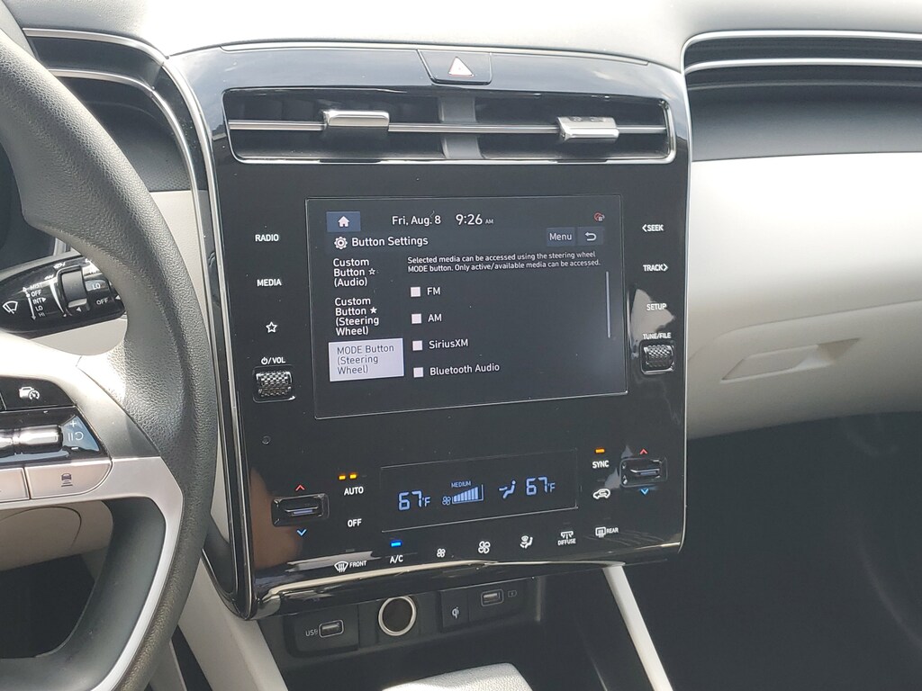 This Vehicle is nicely equipped with the following features: Option Group 01, 3.648 Axle Ratio, 4-Wheel Disc Brakes, 6 Speakers, ABS brakes, Air Conditioning, Alloy wheels, AM/FM radio: SiriusXM, Apple CarPlay & Android Auto, Auto High-beam Headlights, Automatic temperature control, Brake assist, Bumpers: body-color, Delay-off headlights, Driver door bin, Driver vanity mirror, Dual front impact airbags, Dual front side impact airbags, Electronic Stability Control, Emergency communication system: Blue Link Connected Car Service (3-year complimentary subscription), Exterior Parking Camera Rear, Four wheel independent suspension, Front anti-roll bar, Front Bucket Seats, Front Center Armrest, Front dual zone A/C, Front reading lights, Fully automatic headlights, Heated door mirrors, Heated Front Bucket Seats, Heated front seats, Illuminated entry, Low tire pressure warning, Occupant sensing airbag, Outside temperature display, Overhead airbag, Overhead console, Panic alarm, Passenger door bin, Passenger vanity mirror, Power door mirrors, Power driver seat, Power Liftgate, Power steering, Power windows, Radio data system, Radio: AM/FM/HD Audio System, Rear anti-roll bar, Rear seat center armrest, Rear side impact airbag, Rear window defroster, Rear window wiper, Remote keyless entry, Roof rack: rails only, Security system, Speed control, Split folding rear seat, Spoiler, Stain & Odor Resistant Cloth Seat Trim, Steering wheel mounted audio controls, Tachometer, Telescoping steering wheel, Tilt steering wheel, Traction control, Trip computer, Variably intermittent wipers, Wheels: 17" x 7.0J" Alloy, and Wheels: 19" x 7.5J" Machine-Face Finish Alloy. 25/32 City/Highway MPG