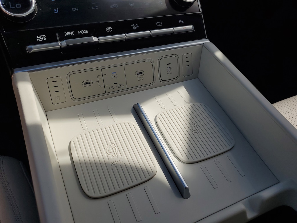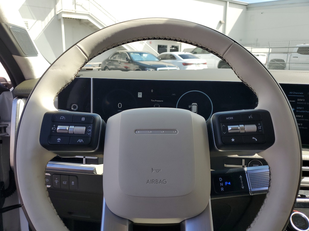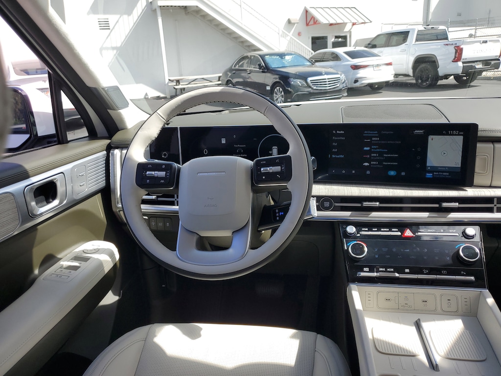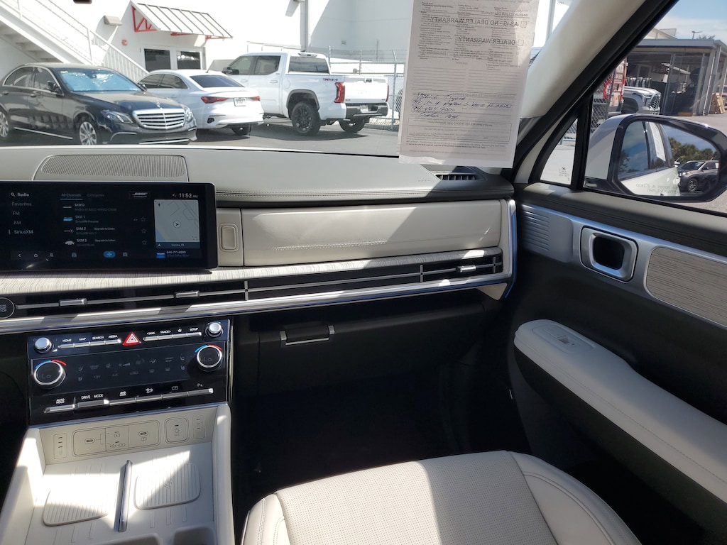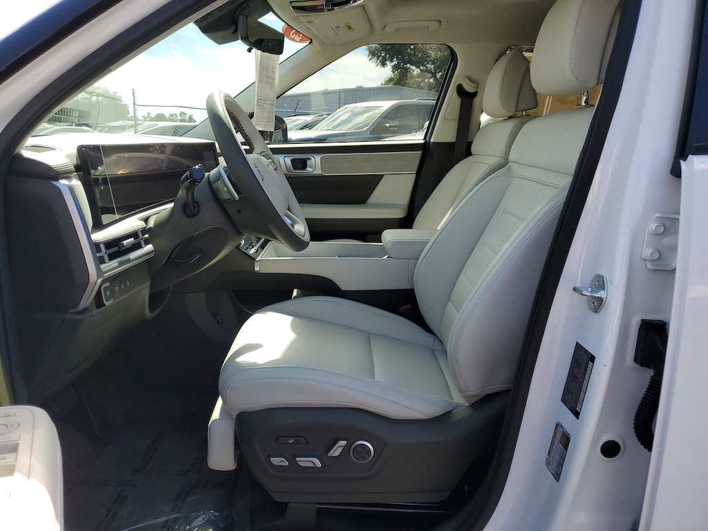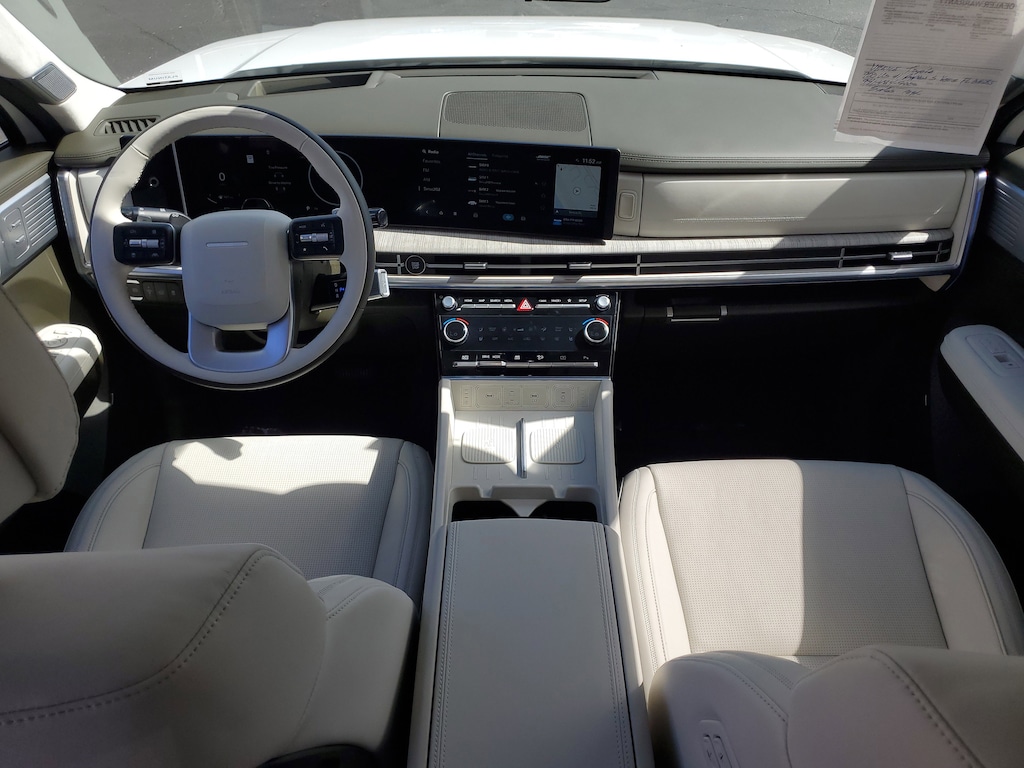 2025 Hyundai Santa Fe Hybrid I4 Serenity White I4. This vehicle also comes equipped with: Option Group 01, I4, 12 Speakers, 3rd row seats: bench, 4-Wheel Disc Brakes, ABS brakes, Air Conditioning, All Season Fitted Liners, Alloy wheels, AM/FM radio: SiriusXM, Apple CarPlay & Android Auto, Auto High-beam Headlights, Auto-dimming Rear-View mirror, Automatic temperature control, Brake assist, Bumpers: body-color, Cargo Blocks, Cargo Cover, Cargo Net, Cargo Tray, Carpeted Floor Mats, Cross Rails, Delay-off headlights, Driver door bin, Driver vanity mirror, Dual front impact airbags, Dual front side impact airbags, Electronic Stability Control, Emergency communication system, Exterior Parking Camera Rear, First Aid Kit, Four wheel independent suspension, Front anti-roll bar, Front Bucket Seats, Front Center Armrest, Front dual zone A/C, Front reading lights, Fully automatic headlights, Garage door transmitter: HomeLink, Heads-Up Display, Heated & Ventilated Front Bucket Seats, Heated door mirrors, Heated front seats, Heated rear seats, Heated steering wheel, Illuminated entry, Knee airbag, Leather steering wheel, Low tire pressure warning, Memory seat, Navigation System, Occupant sensing airbag, Outside temperature display, Overhead airbag, Overhead console, Panic alarm, Passenger door bin, Passenger vanity mirror, Power door mirrors, Power driver seat, Power Liftgate, Power moonroof, Power passenger seat, Power steering, Power windows, Premium Nappa Leather Seat Trim, Radio: AM/FM/HD Bose Premium Audio System, Rain sensing wipers, Rear anti-roll bar, Rear side impact airbag, Rear window defroster, Rear window wiper, Remote keyless entry, Roadside Assistance Kit, Security system, Speed control, Speed-sensing steering, Split folding rear seat, Spoiler, Steering wheel mounted audio controls, Tachometer, Telescoping steering wheel, Tilt steering wheel, Traction control, Trip computer, Turn signal indicator mirrors, Variably intermittent wipers, Ventilated front seats, and Wheels: 20 x 8.5J Unique Dark Finish Alloy. AWD 6-Speed Automatic with Shiftronic Priced below KBB Fair Purchase Price! Odometer is 4831 miles below market average! 35/34 City/Highway MPG