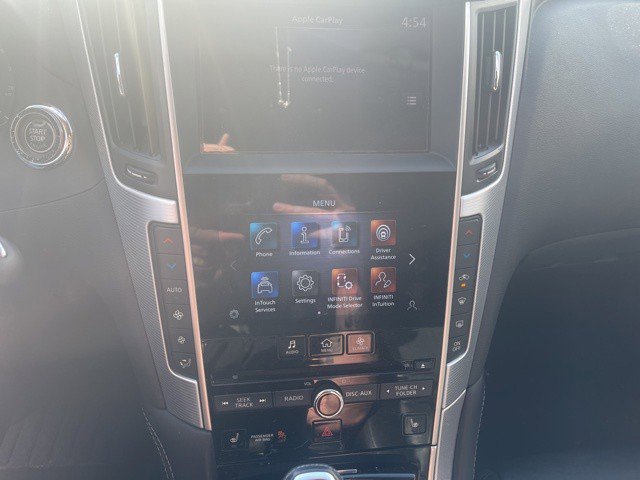 THIS VEHCILE INCLUDES THE FOLLOWING OPTIONS AND FEATURES: Cargo Package (Cargo Net, First Aid Kit, Shopping Bag Hooks, and Trunk Mat), 18" x 7.5" Aluminum Alloy Wheels, 4-Wheel Disc Brakes, 6 Speakers, ABS brakes, Air Conditioning, Alloy wheels, AM/FM radio: SiriusXM, Apple CarPlay/Android Auto, Auto High-beam Headlights, Auto-dimming Rear-View mirror, Automatic temperature control, Blind Spot Warning, Brake assist, Bumpers: body-color, CD player, Compass, Delay-off headlights, Driver door bin, Driver vanity mirror, Dual front impact airbags, Dual front side impact airbags, Electronic Stability Control, Emergency communication system, Four wheel independent suspension, Front anti-roll bar, Front Bucket Seats, Front Center Armrest, Front dual zone A/C, Front fog lights, Front reading lights, Fully automatic headlights, Garage door transmitter: HomeLink, Heated door mirrors, Heated Front Bucket Seats, Heated front seats, Heated steering wheel, Illuminated entry, Leather Shift Knob, Leather steering wheel, Leatherette Seating Surfaces, Literature Kit, Low tire pressure warning, Occupant sensing airbag, Outside temperature display, Overhead airbag, Overhead console, Panic alarm, Passenger door bin, Passenger vanity mirror, Power door mirrors, Power driver seat, Power moonroof, Power passenger seat, Power steering, Power windows, Radio data system, Radio: INFINITI InTouch w/AM/FM/HD/CD, Rain sensing wipers, Rear anti-roll bar, Rear reading lights, Rear seat center armrest, Rear USB Charging Ports, Rear window defroster, Remote keyless entry, Security system, Speed control, Speed-Sensitive Wipers, Splash Guards, Split folding rear seat, Steering wheel mounted audio controls, Tachometer, Telescoping steering wheel, Tilt steering wheel, Traction control, Trip computer, Turn signal indicator mirrors, and Variably intermittent wipers.