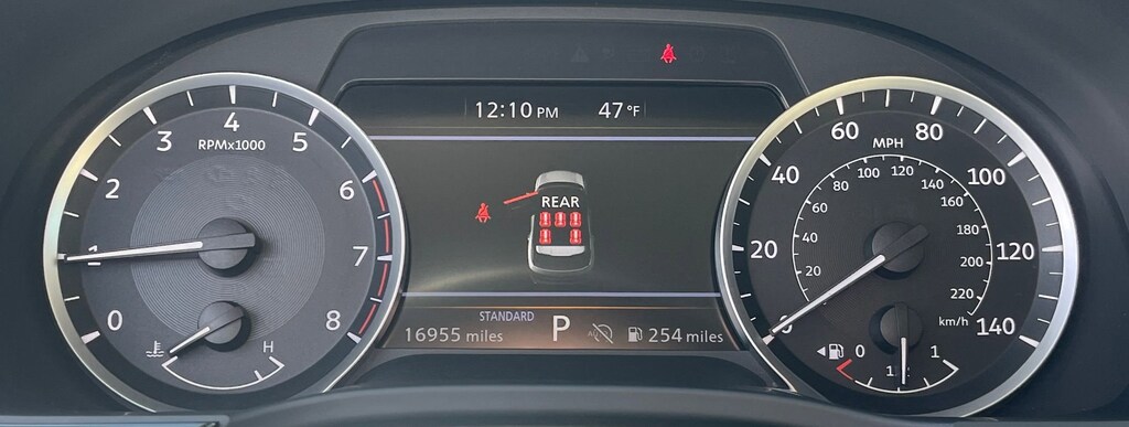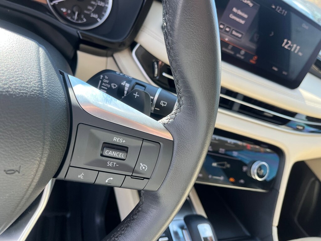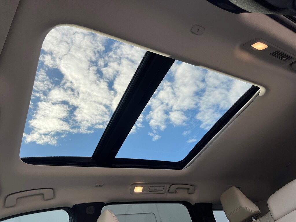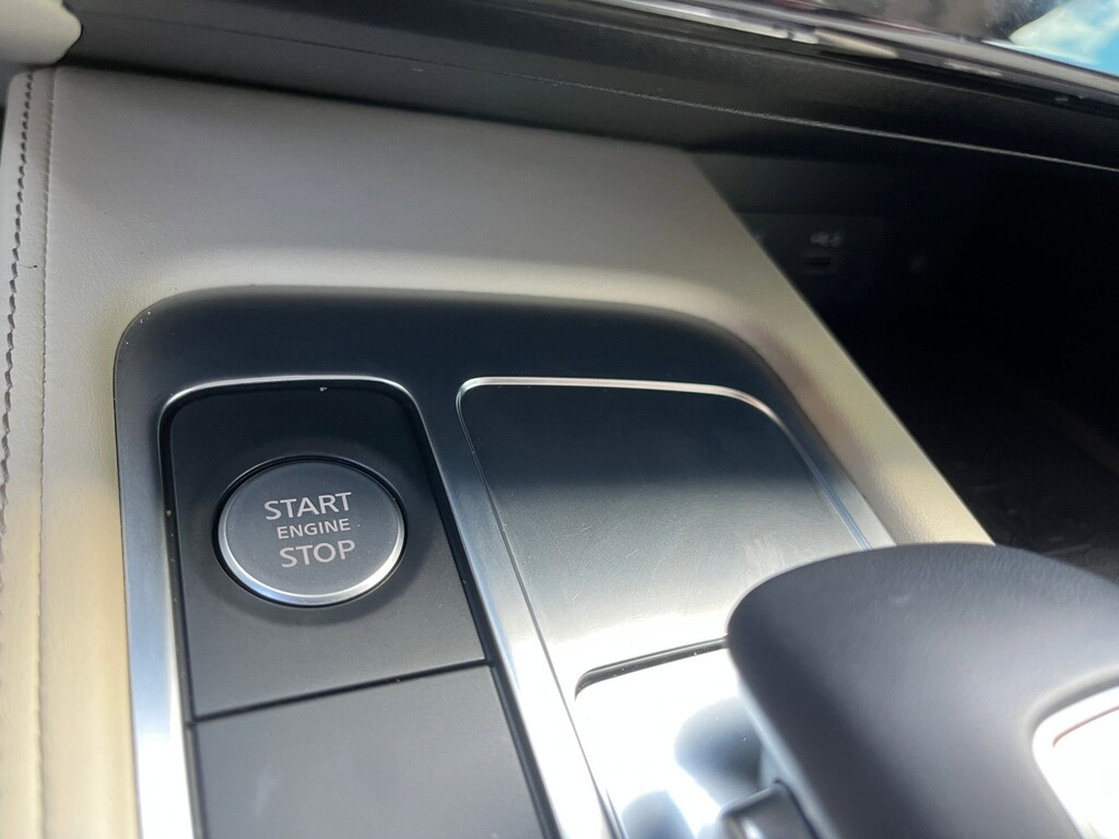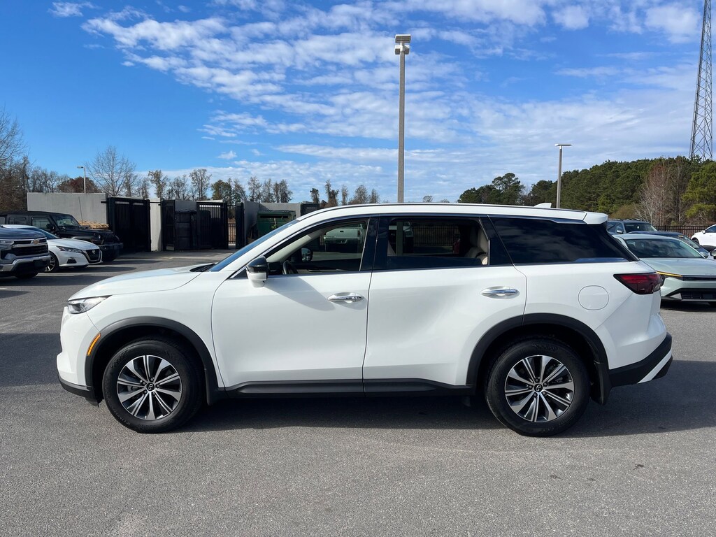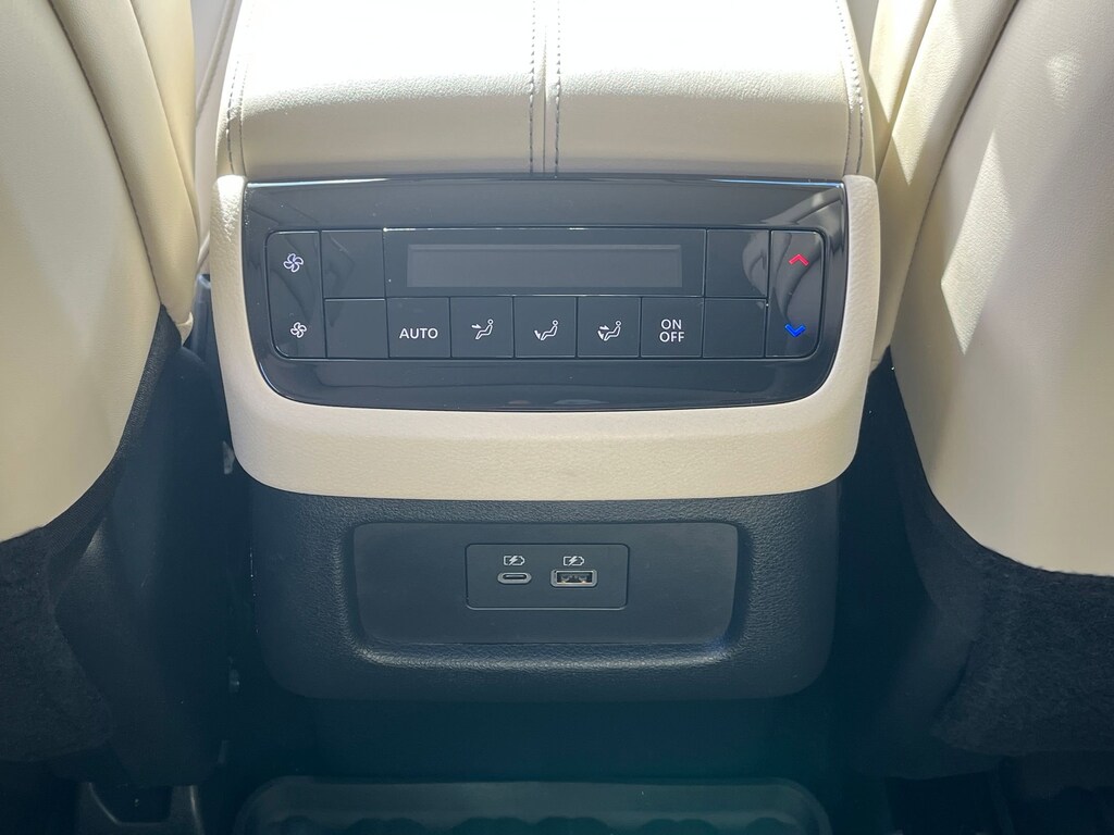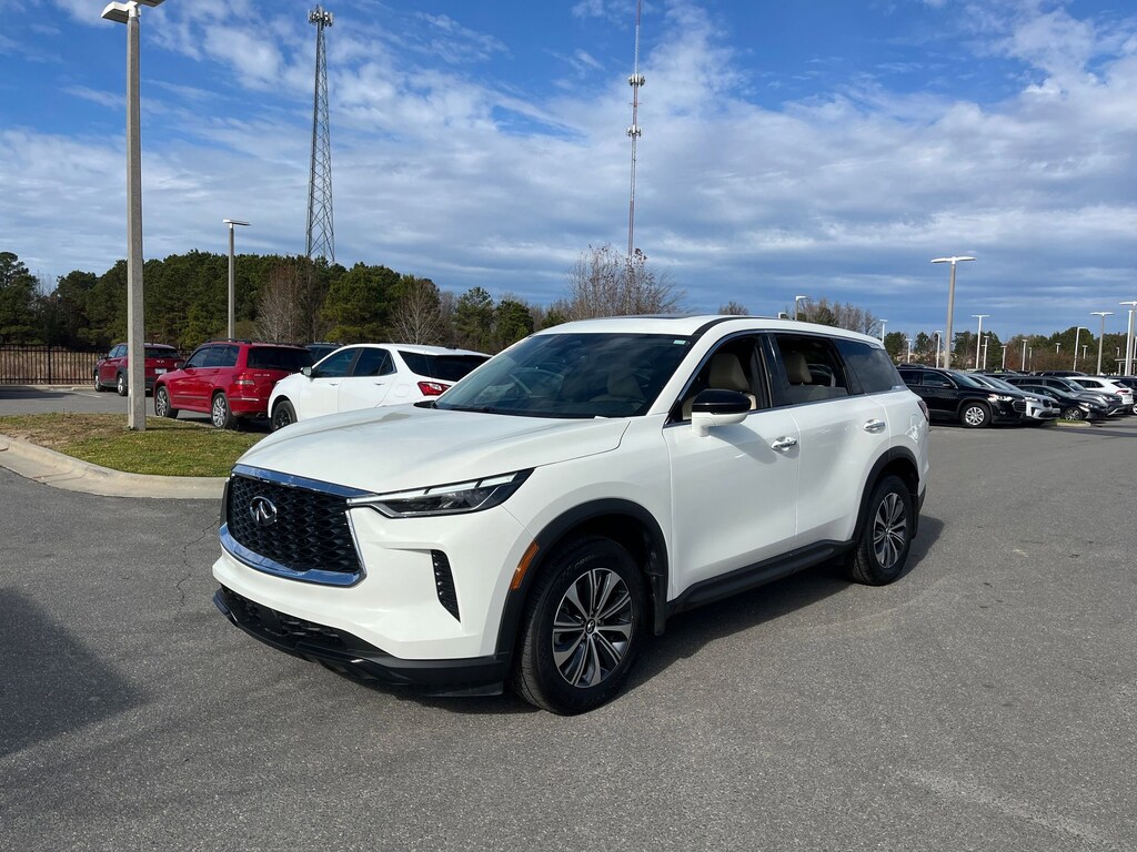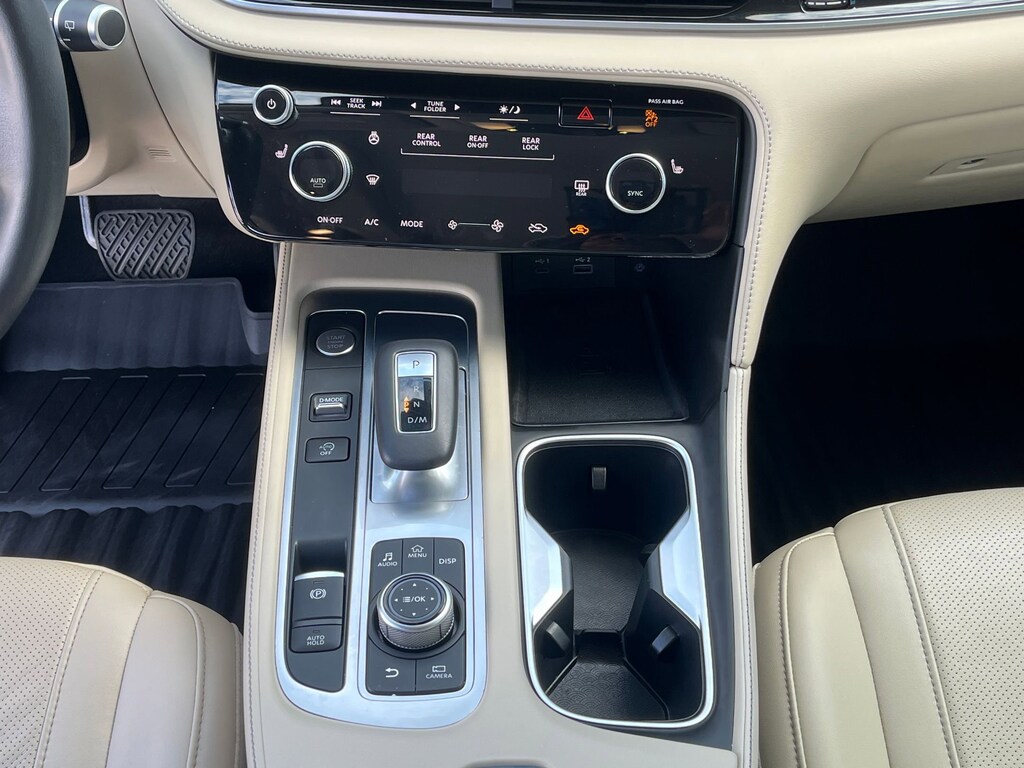 This vehicle comes equipped with : 3rd row seats: bench, 4-Wheel Disc Brakes, 9 Speakers, ABS brakes, Air Conditioning, Alloy wheels, AM/FM radio: SiriusXM, Anti-whiplash front head restraints, Apple CarPlay/Android Auto, Auto High-beam Headlights, Auto-dimming Rear-View mirror, Automatic temperature control, Blind Spot Warning, Brake assist, Bumpers: body-color, Delay-off headlights, Driver door bin, Driver vanity mirror, Dual front impact airbags, Dual front side impact airbags, Electronic Stability Control, Emergency communication system: INFINITI InTouch, Floor Mats w/Bench Seats on 3rd Row Tray, Four wheel independent suspension, Front anti-roll bar, Front Bucket Seats, Front Center Armrest, Front dual zone A/C, Front reading lights, Fully automatic headlights, Heated door mirrors, Heated Front Bucket Seats, Heated front seats, Heated steering wheel, Illuminated entry, Knee airbag, Leather Shift Knob, Leather steering wheel, Leather-Appointed Seating Surfaces, Literature Kit, Low tire pressure warning, Memory seat, Occupant sensing airbag, Outside temperature display, Overhead airbag, Overhead console, Panic alarm, Passenger door bin, Passenger vanity mirror, Power door mirrors, Power driver seat, Power Liftgate, Power moonroof, Power passenger seat, Power steering, Power windows, Radio data system, Radio: AM/FM Audio System, Rain sensing wipers, Rear air conditioning, Rear anti-roll bar, Rear Parking Sensors, Rear reading lights, Rear seat center armrest, Rear side impact airbag, Rear window defroster, Rear window wiper, Reclining 3rd row seat, Remote keyless entry, Security system, Speed control, Speed-sensing steering, Speed-Sensitive Wipers, Splash Guards, Split folding rear seat, Spoiler, Steering wheel mounted audio controls, Tachometer, Telescoping steering wheel, Tilt steering wheel, Traction control, Trip computer, Turn signal indicator mirrors, Variably intermittent wipers, and Wheels: 18" x 8J Machined Aluminum Alloy.