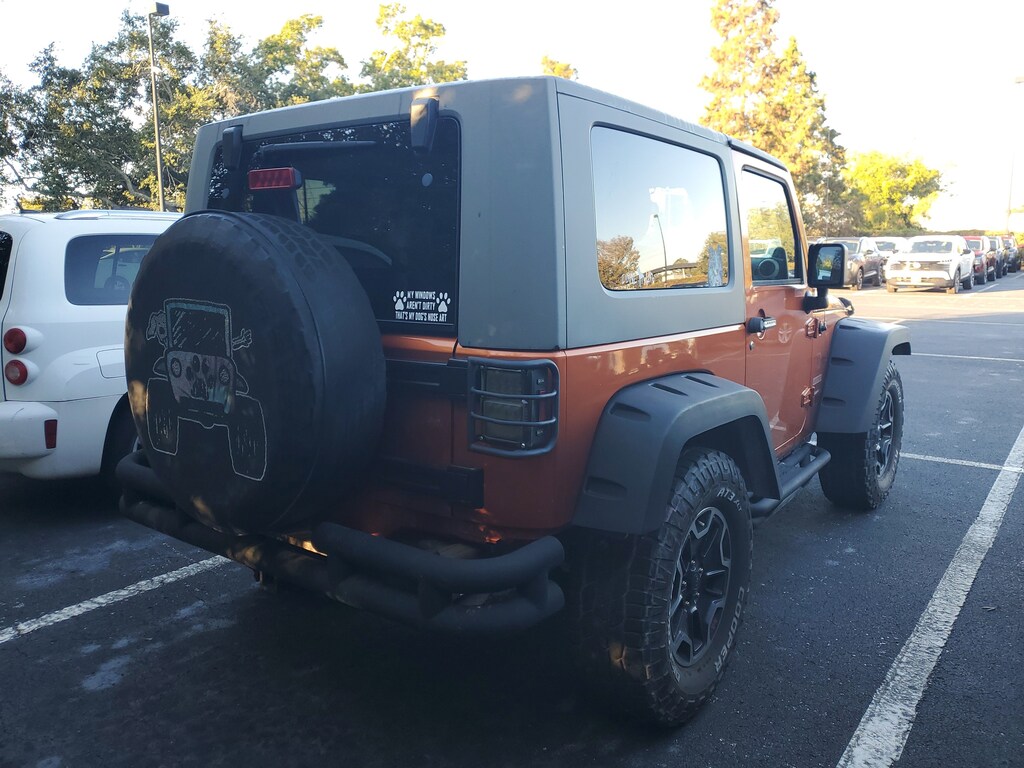 THIS VEHICLE IS EQUIPT WITH THE FOLLOWING FEATURES AND OPTIONS: Power Convenience Group (Power Heated Mirrors, Power Locks, Power Windows w/Driver & Front Passenger 1-Touch, Remote Keyless Entry, and Security Alarm), Quick Order Package 24S (17 x 7.5 Aluminum Wheels, Air Conditioning, Chrome/Leather Wrapped Shift Knob, and Leather Wrapped Steering Wheel), Trailer Tow Group (Class I Receiver Hitch, Trailer Sway Damping, and Trailer Tow w/4-Pin Connector Wiring), 16 x 7.0 Luxury Styled Steel Wheels, 4-Wheel Disc Brakes, 6 Speakers, ABS brakes, AM/FM radio, Anti-Spin Differential Rear Axle, Black Easy Folding Soft Top, Brake assist, CD player, Cloth Bucket Seats, Compass, Deep Tint Sunscreen Windows, Driver door bin, Driver vanity mirror, Dual front impact airbags, Electronic Stability Control, Front anti-roll bar, Front Bucket Seats, Front Center Armrest w/Storage, Front fog lights, Integrated roll-over protection, Low tire pressure warning, Normal Duty Suspension, Occupant sensing airbag, Outside temperature display, Passenger door bin, Passenger vanity mirror, Power steering, Radio: Media Center 130 CD/MP3, Rear anti-roll bar, SIRIUS Satellite Radio, Speed control, Steering wheel mounted audio controls, Tachometer, Tilt steering wheel, Traction control, Trip computer, and Variably intermittent wipers.