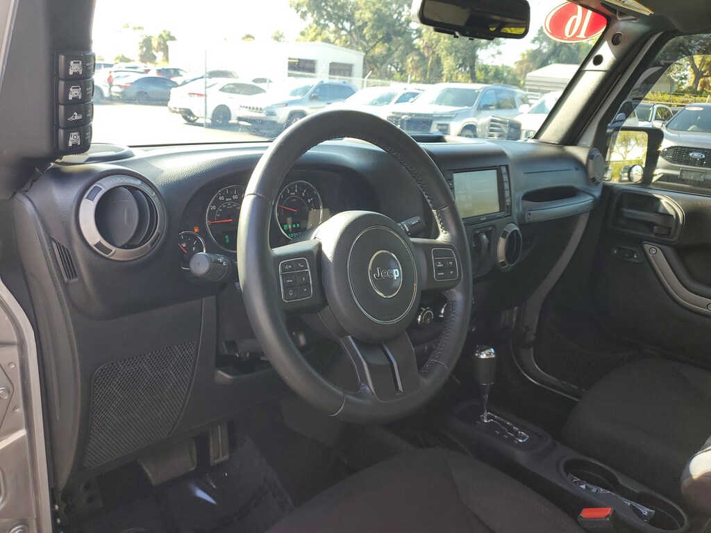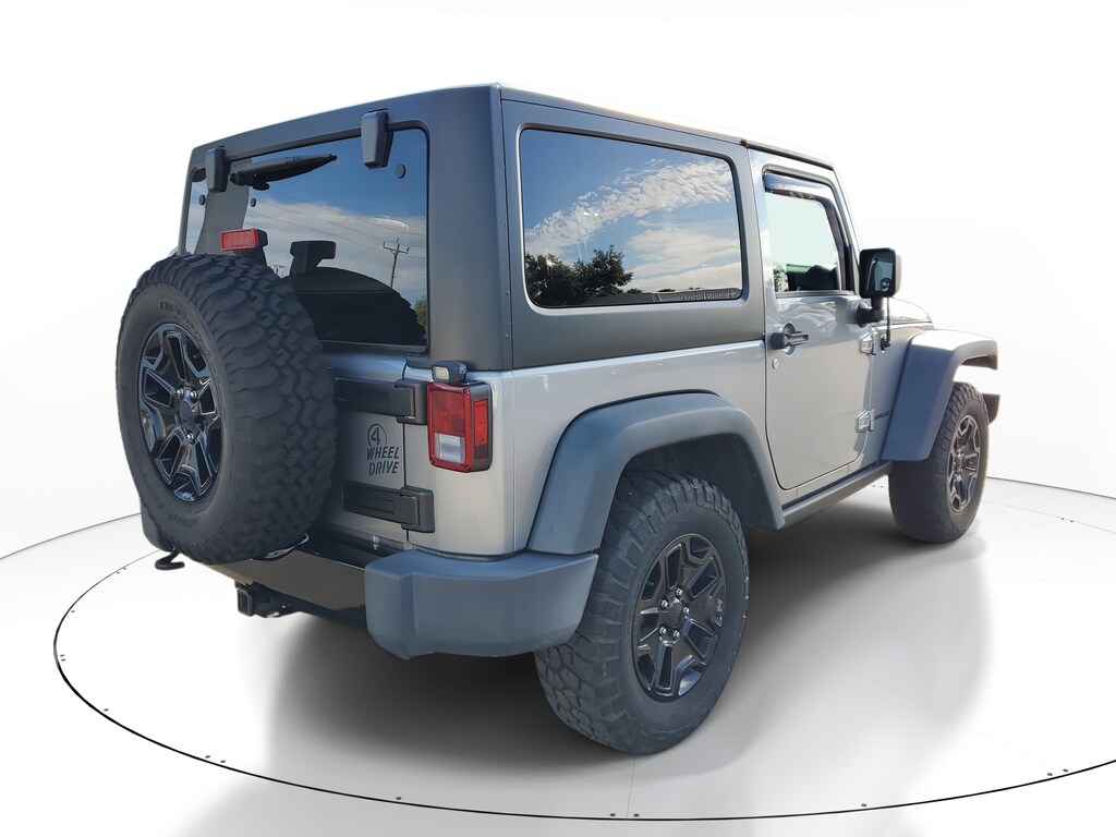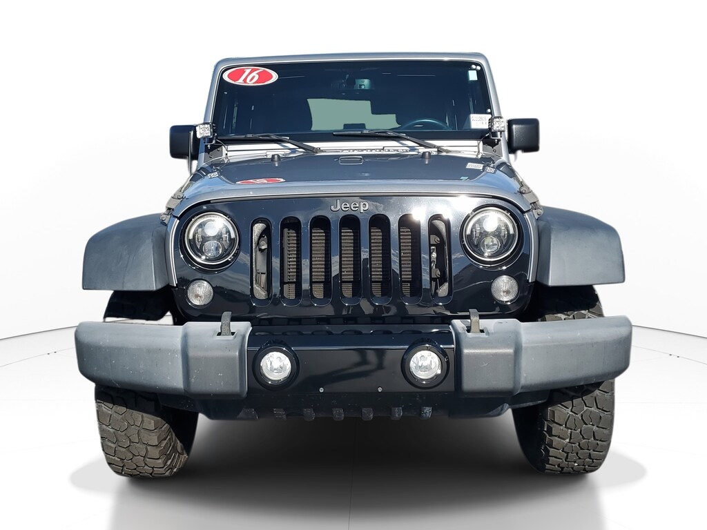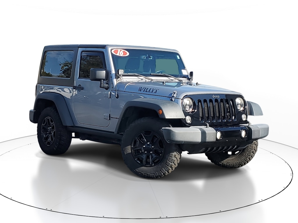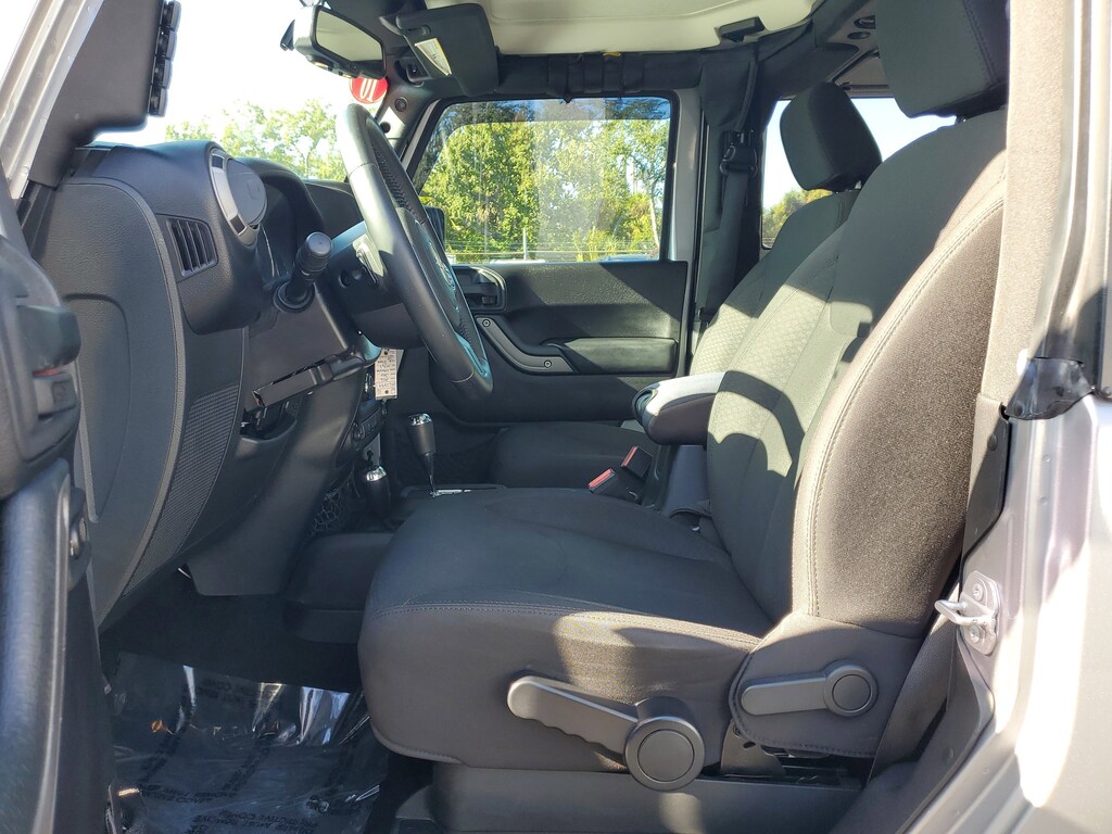 2016 Jeep Wrangler 3.6L V6 24V VVT Billet Silver Metallic Clearcoat This vehicle also comes equipped with: Connectivity Group (Remote USB Port, Tire Pressure Monitoring Display, Uconnect Voice Command w/Bluetooth, and Vehicle Information Center), Dual Top Group (Black 3-Piece Hard Top, Delete Sunrider Soft Top, Freedom Panel Storage Bag, Rear Window Defroster, Rear Window Wiper/Washer, and Tinted Rear Quarter & Liftgate Windows), Power Convenience Group (Auto-Dimming Mirror w/Reading Lamp, Front 1-Touch Down Power Windows, Power Heated Mirrors, Power Locks, Remote Keyless Entry, and Security Alarm), Quick Order Package 24W Willys Wheeler (1-Yr SiriusXM Radio Service, 4-Wheel Drive Swing Gate Decal, Air Conditioning, Anti-Spin Differential Rear Axle, Black Jeep Grille Badge, Deep Tint Sunscreen Windows, Jeep Trail Rated Kit, Low Gloss Black Wrangler Decal, MOPAR Slush Mats, Performance Suspension, Rear Passenger Assist Handles Kit, SIRIUS Satellite Radio, Wheels: 17 x 7.5 High Gloss Black Willys, Willys Hood Decal, and Willys Wheeler Grille), Trailer Tow Group (Class II Receiver Hitch and Trailer Tow w/4-Pin Connector Wiring), Willys Wheeler Package, 16 x 7.0 Luxury Styled Steel Wheels, 4-Wheel Disc Brakes, 8 Speakers, ABS brakes, Alpine 9-Speaker w/All Weather Subwoofer, AM/FM radio, Audio Jack Input for Mobile Devices, Brake assist, CD player, Cloth Seats w/Adjustable Head Restraints, Compass, Driver door bin, Driver vanity mirror, Dual front impact airbags, Electronic Stability Control, Front anti-roll bar, Front Bucket Seats, Front Center Armrest w/Storage, Front fog lights, Integrated roll-over protection, Low tire pressure warning, Normal Duty Suspension, Occupant sensing airbag, Outside temperature display, Passenger door bin, Passenger vanity mirror, Power steering, Premium Black Sunrider Soft Top, Radio: 130, Radio: 430, Rear anti-roll bar, Speed control, Steering wheel mounted audio controls, Sunrider Soft Top, Tachometer, Tilt steering wheel, Traction control, Trip computer, and Variably intermittent wipers. 4WD 5-Speed Automatic Odometer is 30175 miles below market average!