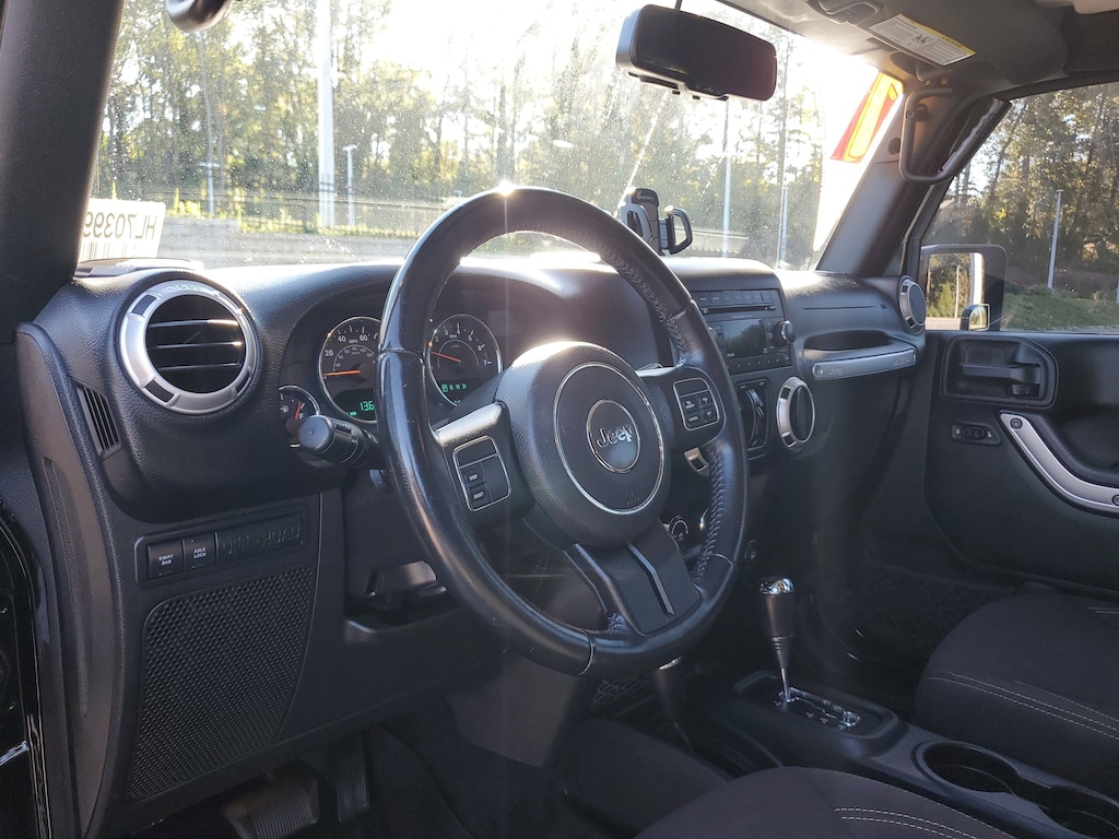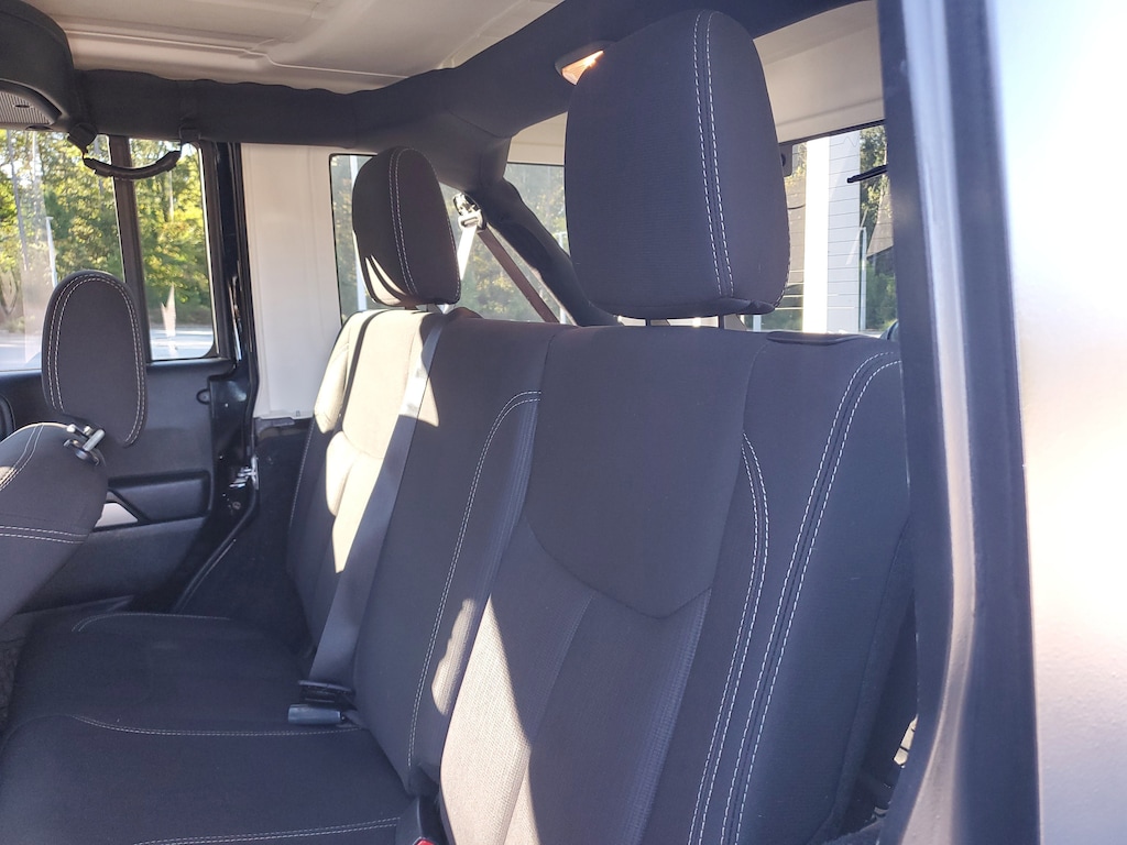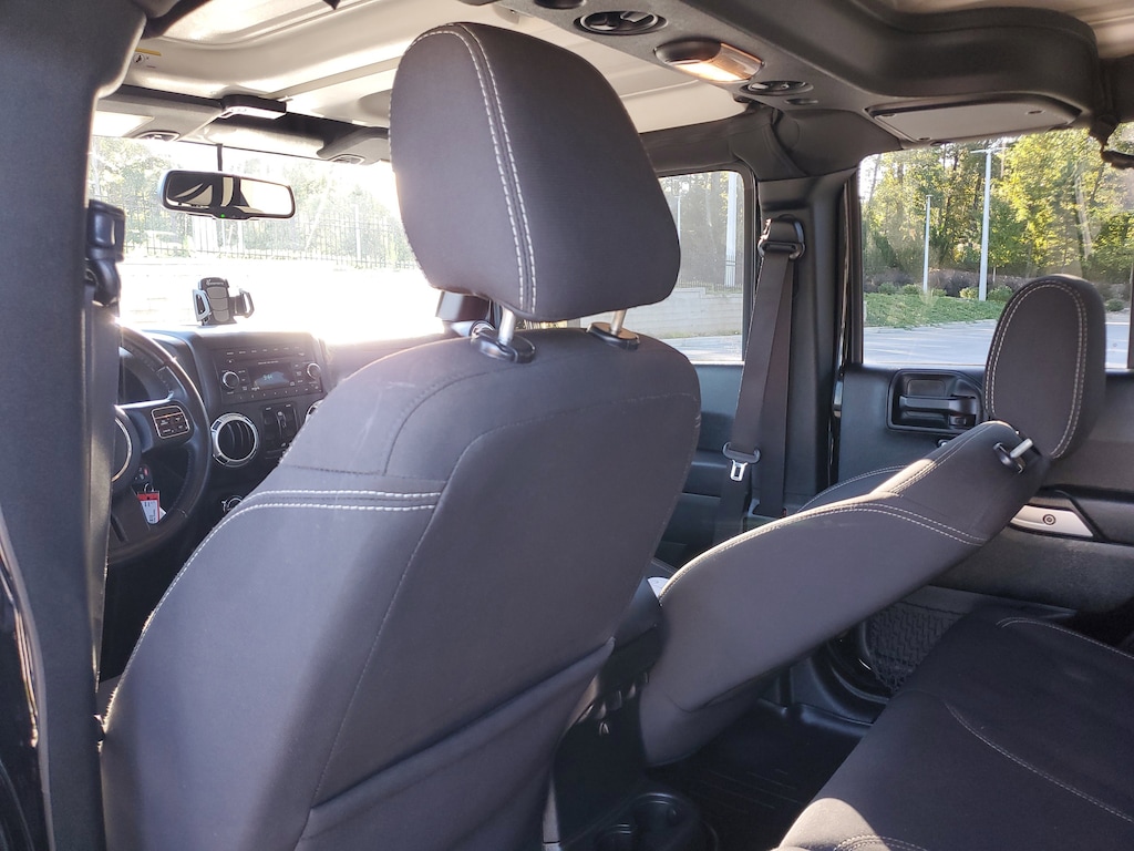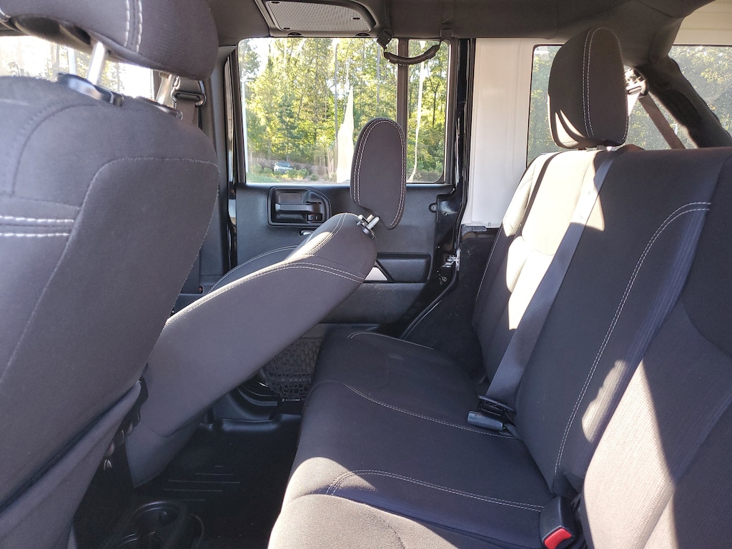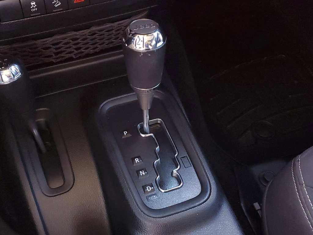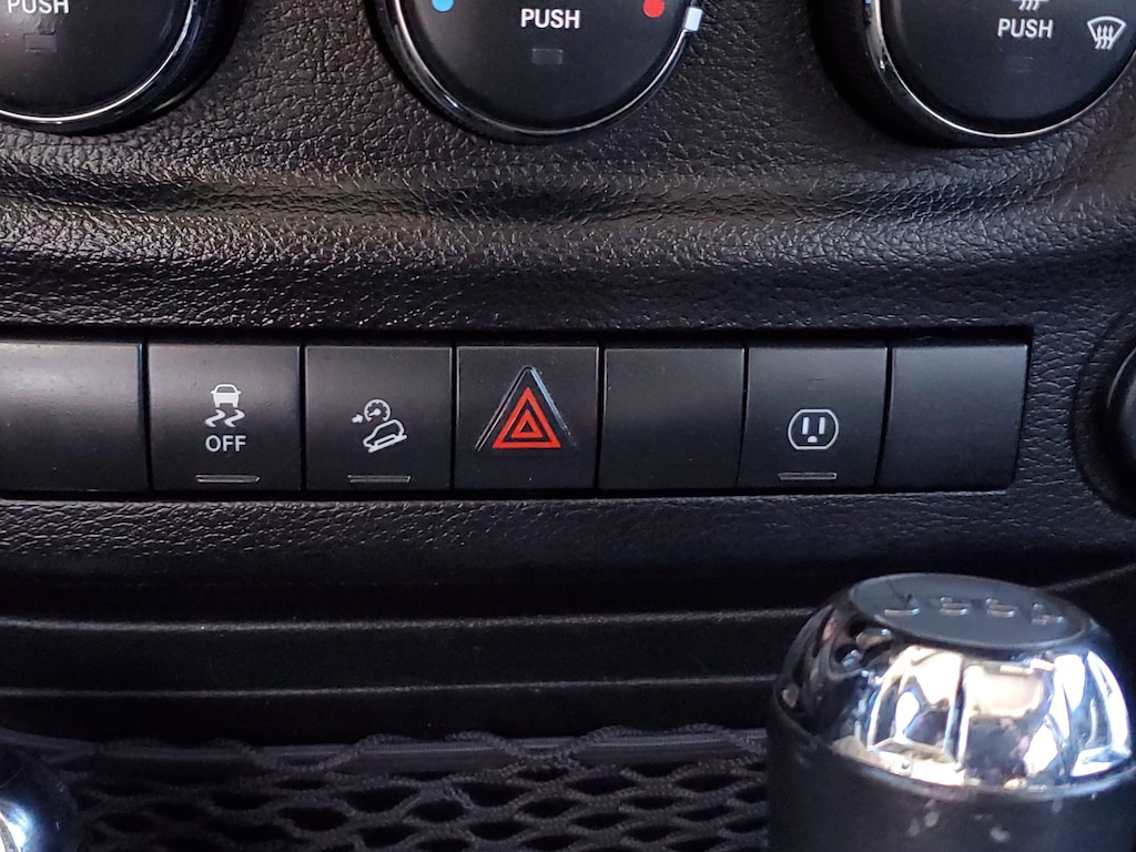 This Vehicle is nicely equipped with the following features: Max Tow Package (Class II Receiver Hitch and Trailer Tow w/4-Pin Connector Wiring), Quick Order Package 24R, 17 x 7.5 Polished Mineral Gray Wheels, Alloy wheels, Front Bucket Seats, Outside temperature display, 3.73 Rear Axle Ratio, 4-Wheel Disc Brakes, 8 Speakers, ABS brakes, Air Conditioning, Air Conditioning w/Auto Temperature Control, Air Filtering, Alpine 9-Speaker w/All Weather Subwoofer, AM/FM radio: SiriusXM, Audio Jack Input for Mobile Devices, Auto-dimming Rear-View mirror, Black 3-Piece Hard Top, Brake assist, CD player, Cloth Seats w/Adjustable Head Restraints, Compass, Delete Sunrider Soft Top, Driver door bin, Driver vanity mirror, Dual front impact airbags, Electronic Stability Control, Freedom Panel Storage Bag, Front anti-roll bar, Front Center Armrest w/Storage, Front fog lights, Front reading lights, Fully automatic headlights, Heated door mirrors, Humidity Sensor, Illuminated entry, Integrated roll-over protection, Leather steering wheel, Low tire pressure warning, Occupant sensing airbag, Panic alarm, Passenger door bin, Passenger vanity mirror, Performance Suspension, Power door mirrors, Power steering, Power windows, Radio data system, Radio: 130, Rear anti-roll bar, Rear Window Defroster, Rear Window Wiper/Washer, Remote keyless entry, Remote Start System, Security system, Speed control, Split folding rear seat, Steering wheel mounted audio controls, Tachometer, Tilt steering wheel, Traction control, Trip computer, and Variably intermittent wipers.