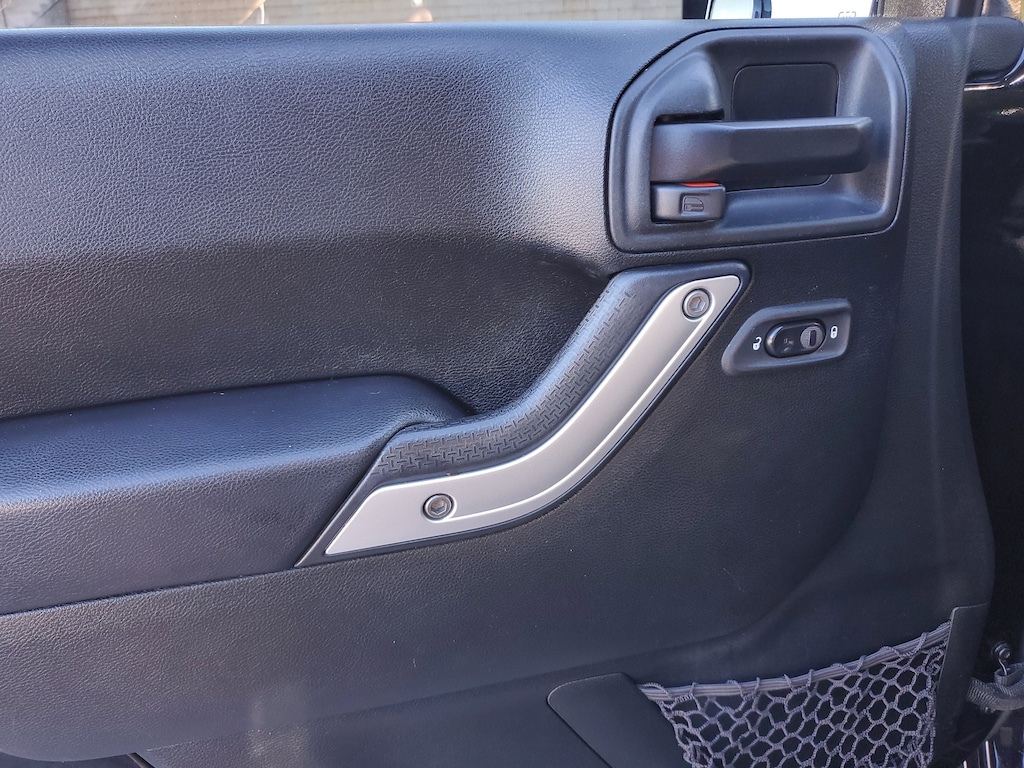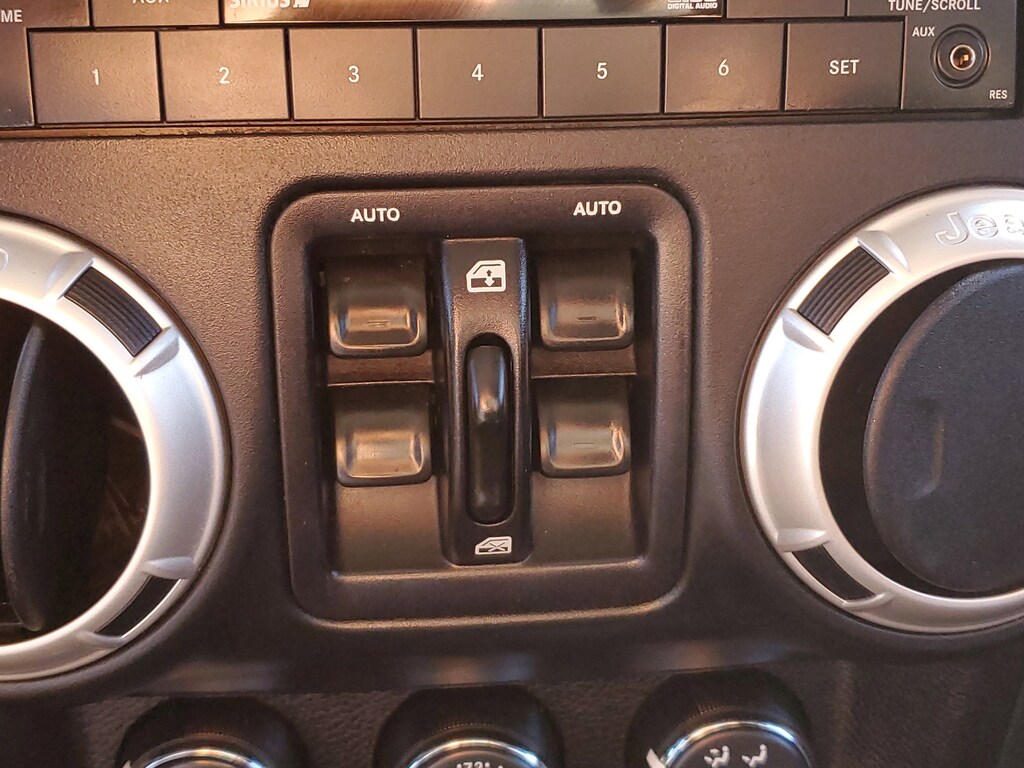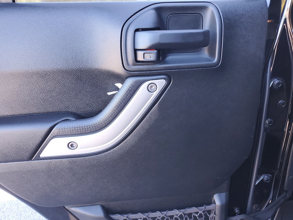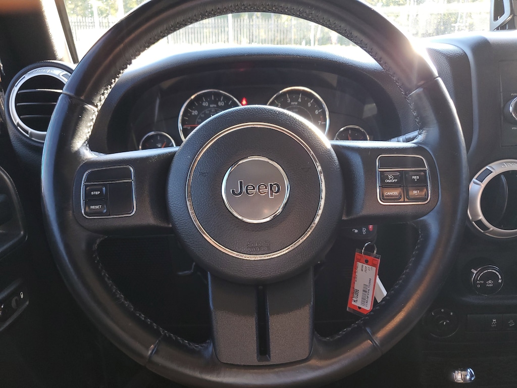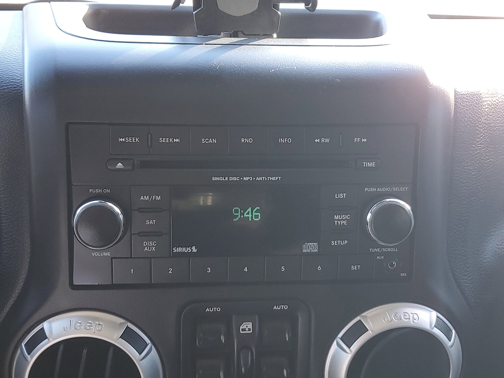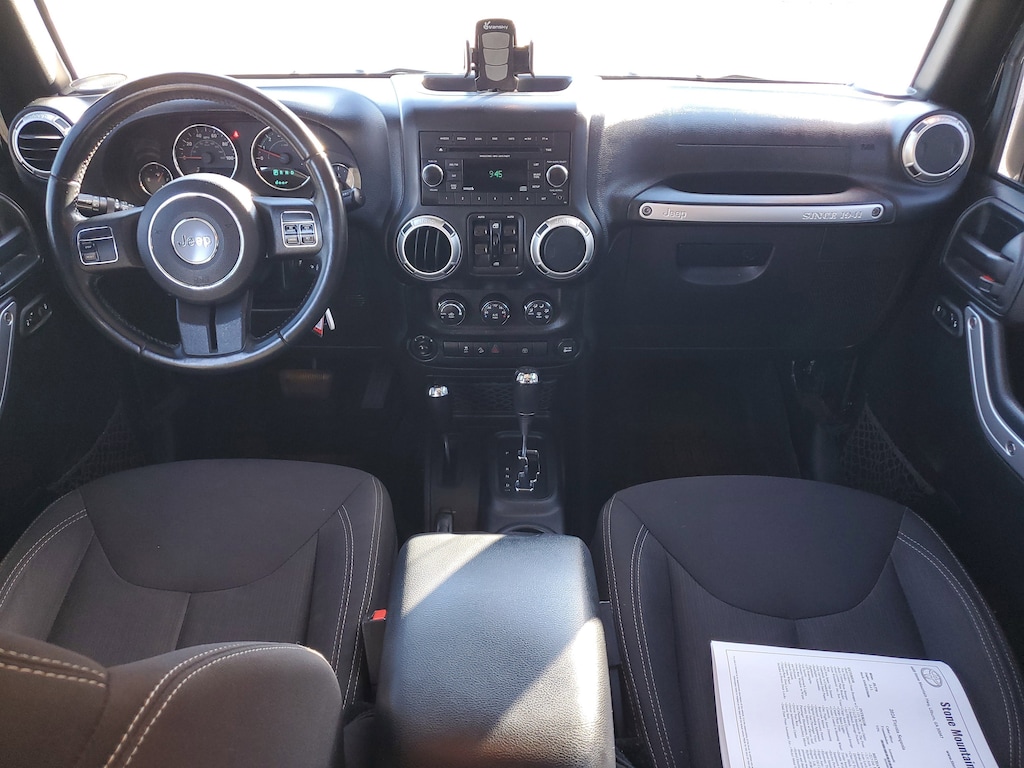 This Vehicle is nicely equipped with the following features: Max Tow Package (Class II Receiver Hitch and Trailer Tow w/4-Pin Connector Wiring), Quick Order Package 24R, 17 x 7.5 Polished Mineral Gray Wheels, Alloy wheels, Front Bucket Seats, Outside temperature display, 3.73 Rear Axle Ratio, 4-Wheel Disc Brakes, 8 Speakers, ABS brakes, Air Conditioning, Air Conditioning w/Auto Temperature Control, Air Filtering, Alpine 9-Speaker w/All Weather Subwoofer, AM/FM radio: SiriusXM, Audio Jack Input for Mobile Devices, Auto-dimming Rear-View mirror, Black 3-Piece Hard Top, Brake assist, CD player, Cloth Seats w/Adjustable Head Restraints, Compass, Delete Sunrider Soft Top, Driver door bin, Driver vanity mirror, Dual front impact airbags, Electronic Stability Control, Freedom Panel Storage Bag, Front anti-roll bar, Front Center Armrest w/Storage, Front fog lights, Front reading lights, Fully automatic headlights, Heated door mirrors, Humidity Sensor, Illuminated entry, Integrated roll-over protection, Leather steering wheel, Low tire pressure warning, Occupant sensing airbag, Panic alarm, Passenger door bin, Passenger vanity mirror, Performance Suspension, Power door mirrors, Power steering, Power windows, Radio data system, Radio: 130, Rear anti-roll bar, Rear Window Defroster, Rear Window Wiper/Washer, Remote keyless entry, Remote Start System, Security system, Speed control, Split folding rear seat, Steering wheel mounted audio controls, Tachometer, Tilt steering wheel, Traction control, Trip computer, and Variably intermittent wipers.