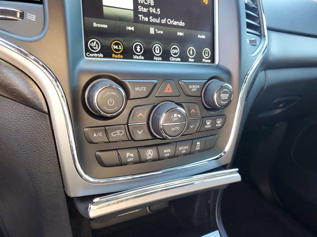 This Vehicle comes equipped with: Altitude IV Package, Quick Order Package 2BZ Altitude (1-Year SiriusXM Guardian Trial, 1-Year SiriusXM Radio Service, 5-Year SiriusXM Traffic Service, 5-Year SiriusXM Travel Link Service, Altitude Grille, Auto-Dimming Rear-View Mirror, Black Suede Seats w/Black Stitching, Body Color Claddings, Body Color Fascia, Body Color Shark Fin Antenna, Dark Day Light Opening Moldings, Dark Headlamp Bezel Finish, Dark Lens Taillamps, Delete Laredo Badge, Front Accent/Body Color Fascia, Gloss Black Rear Fascia Applique, GPS Navigation, HD Radio, Jeep Black Gloss Badging, Power 4-Way Driver Lumbar Adjust, Power 8-Way Driver/Manual Passenger Seat, Radio: Uconnect 4C Nav w/8.4" Display, Rear Accent/Body Color Fascia, Rear Fascia Black Mic Step Pad, Single Exhaust w/Bright Tip, SiriusXM Satellite Radio, SiriusXM Traffic Plus, SiriusXM Travel Link, Steering Wheel Mounted Audio Controls, and Wheels: 20" x 8.0" Gloss Black Aluminum), Security & Convenience Group (115V Auxiliary Power Outlet, Heated Front Seats, Heated Steering Wheel, Power Liftgate, Remote Start System, Security Alarm, and Universal Garage Door Opener), 3.27 Rear Axle Ratio, 4-Wheel Disc Brakes, 506 Watt Amplifier, 6 Speakers, 9 Amplified Speakers w/Subwoofer, ABS brakes, Active Noise Control System, Air Conditioning, Alloy wheels, AM/FM radio, Anti-whiplash front head restraints, Apple CarPlay/Android Auto, Automatic temperature control, Brake assist, Bumpers: body-color, Cloth Bucket Seats, Compass, Delay-off headlights, Driver door bin, Driver vanity mirror, Dual front impact airbags, Dual front side impact airbags, Eco Suspension I, Electronic Stability Control, Four wheel independent suspension, Front anti-roll bar, Front Bucket Seats, Front Center Armrest w/Storage, Front dual zone A/C, Front fog lights, Front License Plate Bracket, Front reading lights, Fully automatic headlights, Heated door mirrors, Illuminated entry, Knee airbag, Leather Shift Knob, Low tire pressure warning, Occupant sensing airbag, Outside temperature display, Overhead airbag, Overhead console, Panic alarm, ParkView Rear Back-Up Camera, Passenger door bin, Passenger vanity mirror, Power door mirrors, Power steering, Power Sunroof, Power windows, Radio data system, Radio: Uconnect 4 w/7" Display, Rear anti-roll bar, Rear Parking Sensors, Rear reading lights, Rear seat center armrest, Rear window defroster, Rear window wiper, Remote keyless entry, Speed control, Speed-Sensitive Wipers, Split folding rear seat, Spoiler, Steering wheel mounted audio controls, Tachometer, Telescoping steering wheel, Tilt steering wheel, Traction control, Trip computer, Variably intermittent wipers, and Wheels: 17" x 8.0" Silver Aluminum.