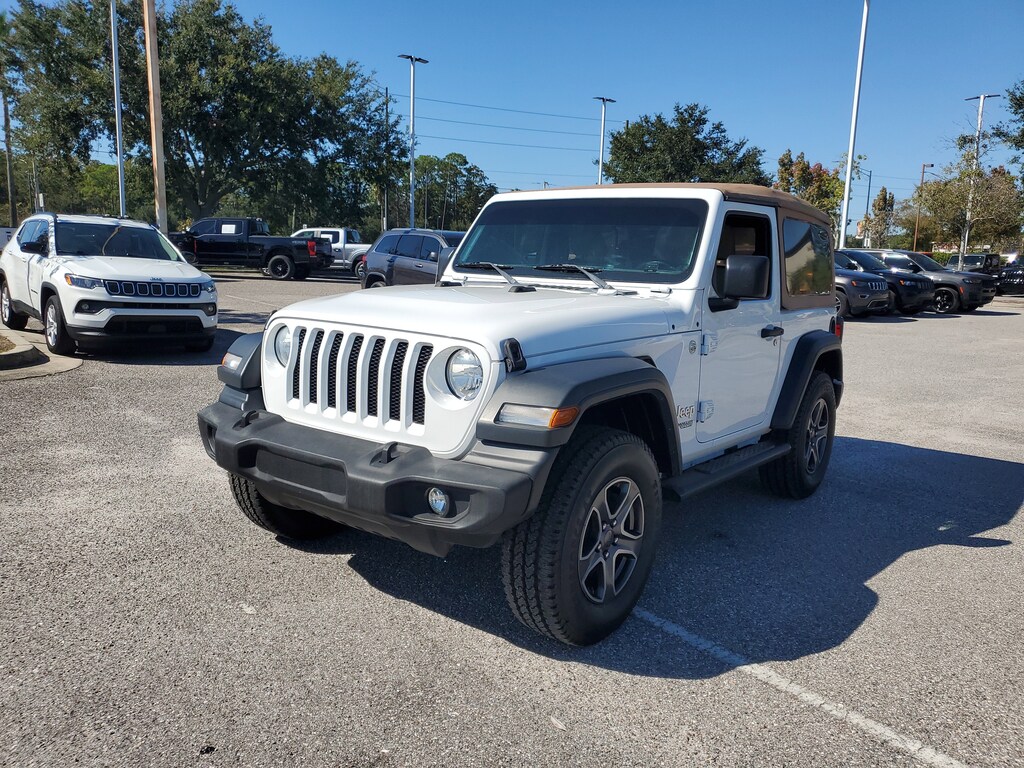 THIS VEHCILE INCLUDES THE FOLLOWING OPTIONS AND FEATURES: Quick Order Package 28S Sport S (Air Conditioning, Automatic Headlamps, Deep Tint Sunscreen Windows, Front 1-Touch Down Power Windows, Leather Wrapped Steering Wheel, Power Heated Mirrors, Remote Keyless Entry, Security Alarm, Speed Sensitive Power Locks, Sun Visors w/Illuminated Vanity Mirrors, and Wheels: 17" x 7.5" Tech Silver Aluminum), Technology Group (1-Year SiriusXM Radio Service, 7.0" Touchscreen Display, Air Conditioning w/Auto Temperature Control, Air Filtering, Apple CarPlay, Cluster 7.0" TFT Color Display, For More Info, Call 800-643-2112, Google Android Auto, GPS Antenna Input, Integrated Center Stack Radio, Radio: Uconnect 4 w/7" Display, SiriusXM Satellite Radio, and USB Host Flip), 3.45 Rear Axle Ratio, 4-Wheel Disc Brakes, 8 Speakers, ABS brakes, AM/FM radio, Anti-Spin Differential Rear Axle, Brake assist, Bridgestone Brand Tires, Cloth Low-Back Bucket Seats, Compass, Delay-off headlights, Driver door bin, Driver vanity mirror, Dual front impact airbags, Dual front side impact airbags, Electronic Stability Control, Front anti-roll bar, Front Bucket Seats, Front Center Armrest w/Storage, Front fog lights, Front reading lights, Integrated roll-over protection, Jeep Trail Rated Kit, Low tire pressure warning, MOPAR Black Tube Steps, Non-Lock Fuel Cap w/o Discriminator, Normal Duty Suspension, Occupant sensing airbag, Outside temperature display, ParkView Rear Back-Up Camera, Passenger door bin, Passenger vanity mirror, Power steering, Premium Tan Sunrider Soft Top, Radio data system, Radio: Uconnect 3 w/5" Display, Rear anti-roll bar, Rear reading lights, Speed control, Steering wheel mounted audio controls, Tachometer, Telescoping steering wheel, Tilt steering wheel, Traction control, Trip computer, Variably intermittent wipers, Wheels: 17" x 7.5" Black Steel Styled, and Wheels: 17" x 7.5" Polished Granite Crystal (DISC).