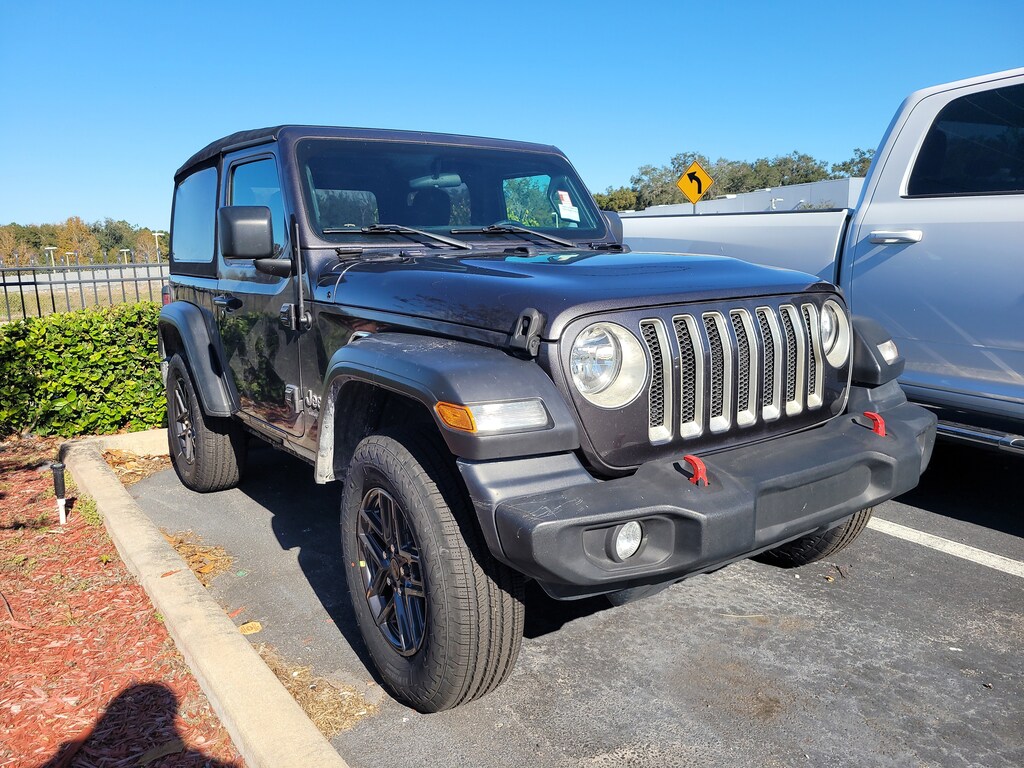THIS VEHCILE INCLUDES THE FOLLOWING OPTIONS AND FEATURES: Convenience Group (Universal Garage Door Opener), Quick Order Package 22S Sport S (Air Conditioning, Automatic Headlamps, Deep Tint Sunscreen Windows, Front 1-Touch Down Power Windows, Leather Wrapped Steering Wheel, Power Heated Mirrors, R1234YF A/C Refrigerant, Remote Keyless Entry, Security Alarm, Speed Sensitive Power Locks, Sun Visors w/Illuminated Vanity Mirrors, and Wheels: 17" x 7.5" Tech Silver Aluminum), Technology Group (1-Year SiriusXM Radio Service, 7.0" Touchscreen Display, Air Conditioning w/Auto Temperature Control, Air Filtering, Cluster 7.0" TFT Color Display, GPS Antenna Input, Integrated Center Stack Radio, Radio: Uconnect 4 w/7" Display, SiriusXM Satellite Radio, and USB Host Flip), 110 mph Vehicle Max Speed Calibration, 3.45 Rear Axle Ratio, 4-Wheel Disc Brakes, 8 Speakers, ABS brakes, AM/FM radio, Apple CarPlay (DISC), Aux Battery, Brake assist, Cloth Low-Back Bucket Seats, Compass, Delay-off headlights, Driver door bin, Driver vanity mirror, Dual front impact airbags, Dual front side impact airbags, Electronic Stability Control, Front anti-roll bar, Front Bucket Seats, Front Center Armrest w/Storage, Front fog lights, Front reading lights, Google Android Auto (DISC), Integrated roll-over protection, Low tire pressure warning, Non-Lock Fuel Cap w/o Discriminator, Normal Duty Suspension, Occupant sensing airbag, Outside temperature display, ParkView Rear Back-Up Camera, Passenger door bin, Passenger vanity mirror, Power steering, Premium Black Sunrider Soft Top, Radio data system, Radio: Uconnect 3 w/5" Display, Rear anti-roll bar, Rear reading lights, Speed control, Steering wheel mounted audio controls, Stop-Start Dual Battery System, Tachometer, Telescoping steering wheel, Tilt steering wheel, Traction control, Trip computer, Variably intermittent wipers, and Wheels: 17" x 7.5" Black Steel Styled.