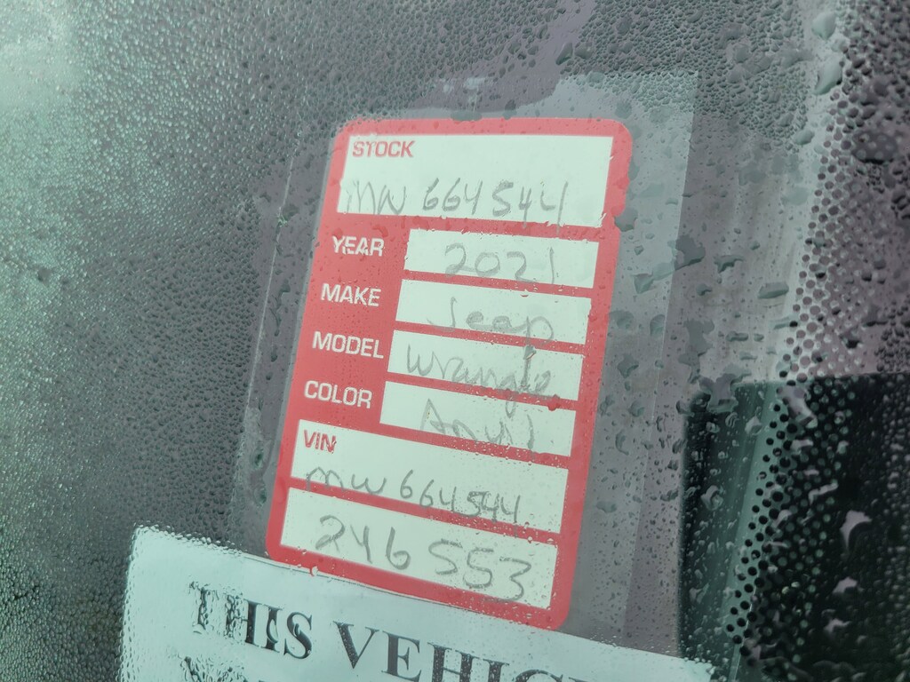 THIS VEHCILE INCLUDES THE FOLLOWING OPTIONS AND FEATURES: 8.4" Radio & Premium Audio Group (Alpine Premium Audio System, Auto-Dimming Rear-View Mirror, and Emergency/Assistance Call), LED Headlamp & Fog Lamp Group (Front LED Fog Lamps and LED Premium Reflector Headlamps), Quick Order Package 22W Willys (4-Wheel Drive Swing Gate Decal, Anti-Spin Differential Rear Axle, Automatic Headlamps, Black Grille, Black Trail Rated Badge, Deep Tint Sunscreen Windows, Front 1-Touch Down Power Windows, Leather Wrapped Steering Wheel, Matte Black Jeep Badge, Mold In Color Bumper w/Gloss Black, Power Heated Mirrors, Remote Keyless Entry, Security Alarm, Speed Sensitive Power Locks, Sun Visors w/Illuminated Vanity Mirrors, Wheels: 17" x 7.5" Moab Black Aluminum, Willys, Willys Hood Decal, and Wrangler Decal), Safety Group (Blind Spot & Cross Path Detection, Injection Molded Black Rear Bumper, LED Taillamps, and ParkSense Rear Park Assist System), Technology Group (7.0" Touchscreen Display, Air Conditioning w/Auto Temperature Control, Air Filtering, Apple CarPlay, Cluster 7.0" TFT Color Display, For More Info, Call 800-643-2112, Google Android Auto, GPS Antenna Input, Integrated Center Stack Radio, Radio: Uconnect 4 w/7" Display, SiriusXM Radio Service, SiriusXM Satellite Radio, and USB Host Flip), 3.45 Rear Axle Ratio, 4-Wheel Disc Brakes, 8 Speakers, ABS brakes, Air Conditioning, AM/FM radio, Aux Battery, Black 3-Piece Hard Top, Brake assist, Cloth Low-Back Bucket Seats, Compass, Delay-off headlights, Driver door bin, Driver vanity mirror, Dual front impact airbags, Dual front side impact airbags, Electronic Stability Control, Freedom Panel Storage Bag, Front anti-roll bar, Front Bucket Seats, Front Center Armrest w/Storage, Front fog lights, Front reading lights, Integrated roll-over protection, Low tire pressure warning, Manufacturer's Statement of Origin, MOPAR All-Weather Floor Mats (DISC), No Soft Top, Non-Lock Fuel Cap w/o Discriminator, Normal Duty Suspension, Occupant sensing airbag, Outside temperature display, ParkView Rear Back-Up Camera, Passenger door bin, Passenger vanity mirror, Power steering, Radio data system, Radio: Uconnect 3 w/5" Display, Radio: Uconnect 4C Nav w/8.4" Display (DISC), Rear anti-roll bar, Rear reading lights, Rear Window Defroster, Rear Window Wiper/Washer, Speed control, Split folding rear seat, Steering wheel mounted audio controls, Stop-Start Dual Battery System, Tachometer, Telescoping steering wheel, Tilt steering wheel, Traction control, Trip computer, Variably intermittent wipers, and Wheels: 17" x 7.5" Black Steel Styled.