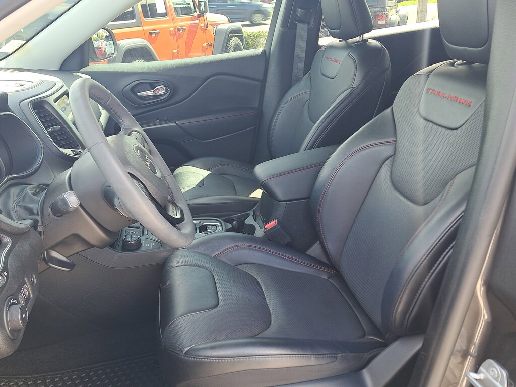 THIS VEHCILE INCLUDES THE FOLLOWING OPTIONS AND FEATURES: Comfort/Convenience Group (Auto-Dimming Rear-View Mirror, Hands-Free Power Liftgate, Security Alarm, and Universal Garage Door Opener), Premium Leather Package (Exterior Mirrors w/Memory, Power 8-Way Adjustable Front Passenger Seat, Power Passenger Lumbar Adjust, Premium Leather Trimmed Bucket Seats, Radio/Driver Seat/Exterior Mirrors Memory, and Ventilated Front Seats), Quick Order Package 27E, 3.517 Final Drive Ratio, 4-Wheel Disc Brakes, 4G LTE Wi-Fi Hot Spot, 6 Speakers, 8.4" Touchscreen Display, ABS brakes, Air Conditioning, Alloy wheels, AM/FM radio: SiriusXM, Anti-whiplash front head restraints, Apple CarPlay, Apple CarPlay/Android Auto, Automatic temperature control, Brake assist, Cloth/Premium Vinyl Bucket Seats, Compass, Delay-off headlights, Driver door bin, Driver vanity mirror, Dual front impact airbags, Dual front side impact airbags, Electronic Stability Control, For Details, Visit DriveUconnect.com, For More Info, Call 800-643-2112, Four wheel independent suspension, Front anti-roll bar, Front Bucket Seats, Front Center Armrest, Front dual zone A/C, Front fog lights, Front reading lights, Fully automatic headlights, Google Android Auto, GPS Antenna Input, Heated door mirrors, Heated front seats, Heated steering wheel, Illuminated entry, K-Black Door Trim Panel Appliques, K-Black Interior Accents, Knee airbag, Leather Shift Knob, Low tire pressure warning, Occupant sensing airbag, Off Road Suspension, Outside temperature display, Overhead airbag, Overhead console, Panic alarm, ParkView Rear Back-Up Camera, Passenger door bin, Passenger vanity mirror, Power door mirrors, Power driver seat, Power steering, Power windows, Radio data system, Radio: Uconnect 4 w/8.4" Display, Rain sensing wipers, Rear anti-roll bar, Rear reading lights, Rear seat center armrest, Rear side impact airbag, Rear window defroster, Rear window wiper, Remote keyless entry, Roof rack: rails only, SiriusXM Radio Service, SiriusXM Satellite Radio, Speed control, Speed-sensing steering, Split folding rear seat, Spoiler, Steering wheel mounted audio controls, Tachometer, Telescoping steering wheel, Tilt steering wheel, Traction control, Trip computer, Turn signal indicator mirrors, USB Host Flip, Variably intermittent wipers, Voltmeter, and Wheels: 17" x 7.5" Painted Diamond Cut Aluminum.
