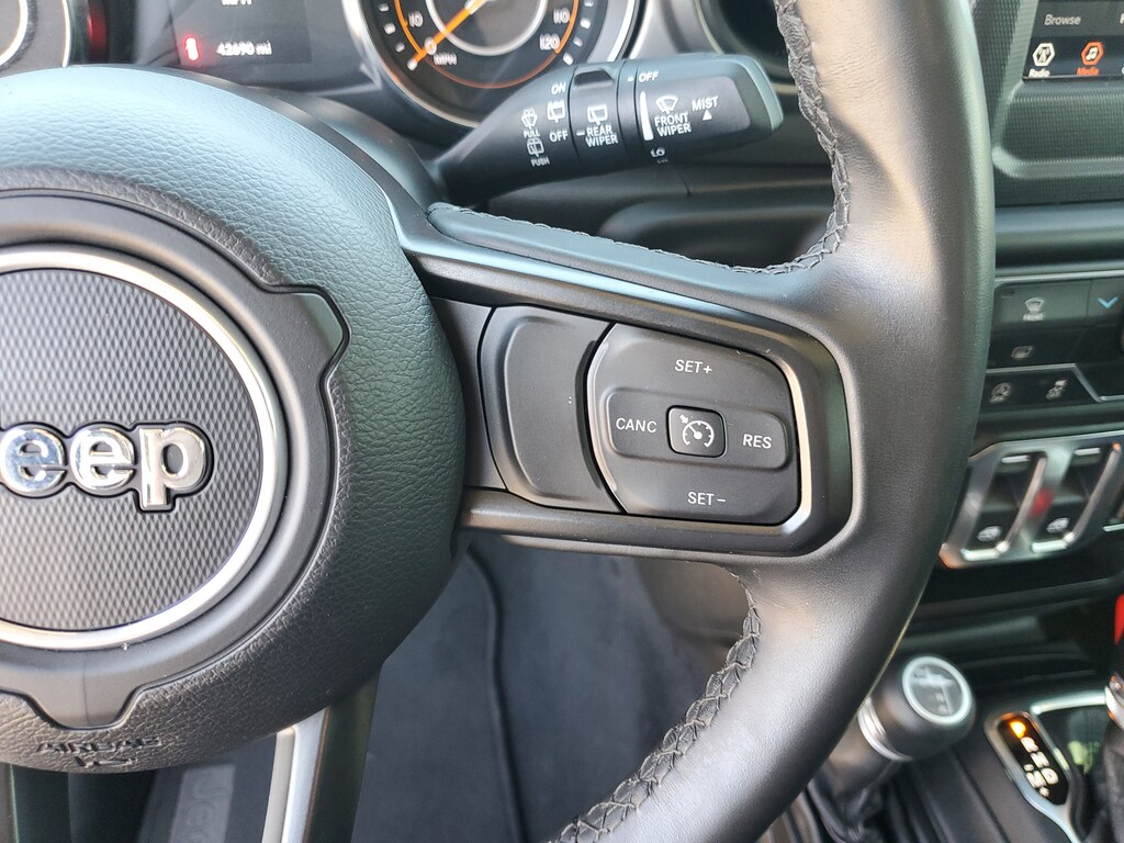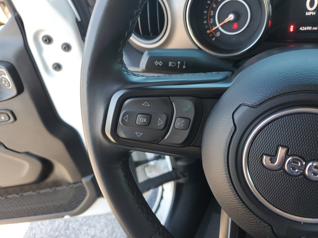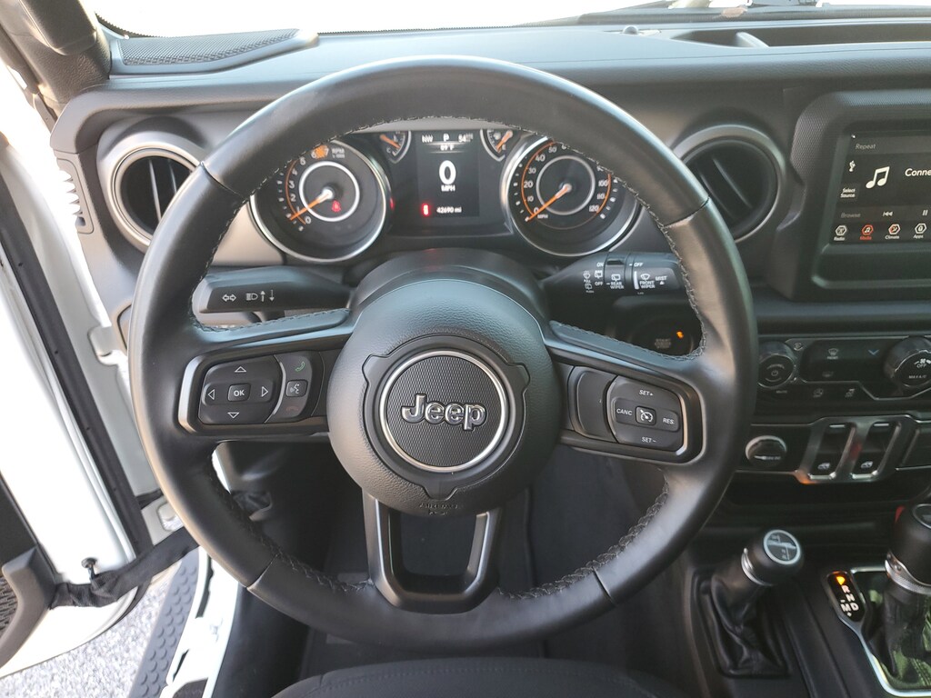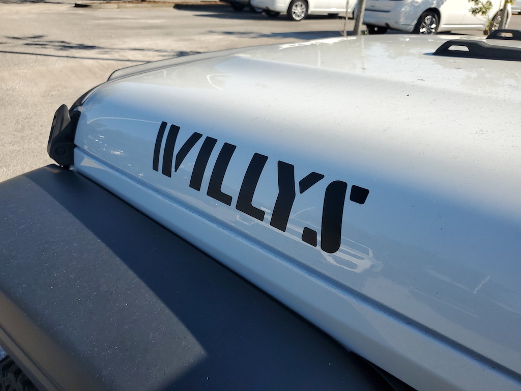 This Vehicle comes equipped with: LED Headlamp & Fog Lamp Group (Front LED Fog Lamps and LED Premium Reflector Headlamps), Quick Order Package 22W Willys (4-Wheel Drive Swing Gate Decal, 7.0" Touchscreen Display, 97 MPH Vehicle Max Speed Calibration, Air Conditioning, Anti-Spin Differential Rear Axle, Apple CarPlay, Automatic Headlamps, Black Grille, Black Trail Rated Badge, Bridgestone Brand Tires, Deep Tint Sunscreen Windows, Front 1-Touch Down Power Windows, Global Telematics Box Module (TBM), Google Android Auto, GPS Antenna Input, Integrated Center Stack Radio, Integrated Voice Command w/Bluetooth, Leather Wrapped Steering Wheel, Matte Black Jeep Badge, Mold In Color Bumper w/Gloss Black, MOPAR All-Weather Floor Mats, Power Heated Mirrors, R1234YF A/C Refrigerant, Radio: Uconnect 4 w/7" Display, Remote Keyless Entry, Security Alarm, SiriusXM Guardian-Included Trial (B), Speed Sensitive Power Locks, Sun Visors w/Illuminated Vanity Mirrors, USB Host Flip, Wheels: 17" x 7.5" Moab Black Aluminum, Willys, and Willys Hood Decal), 3.45 Overall Top Gear Ratio, 4-Wheel Disc Brakes, 8 Speakers, ABS brakes, AM/FM radio, Auxiliary Battery, Black 3-Piece Hard Top, Brake assist, Cloth Low-Back Bucket Seats, Compass, Delay-off headlights, Driver door bin, Driver vanity mirror, Dual front impact airbags, Dual front side impact airbags, Electronic Stability Control, Emergency communication system: SiriusXM Guardian, Engine Oil Cooler, Freedom Panel Storage Bag, Front anti-roll bar, Front Bucket Seats, Front Center Armrest w/Storage, Front fog lights, Front reading lights, Integrated roll-over protection, Low tire pressure warning, No Soft Top, Non-Locking Fuel Cap w/o Discriminator, Normal Duty Suspension, Occupant sensing airbag, Outside temperature display, ParkView Rear Back-Up Camera, Passenger door bin, Passenger vanity mirror, Power steering, Radio data system, Radio: Uconnect 3 w/5" Display, Rear anti-roll bar, Rear reading lights, Rear Window Defroster, Rear Window Wiper/Washer, Speed control, Start-Stop Dual Battery System, Steering wheel mounted audio controls, Tachometer, Telescoping steering wheel, Tilt steering wheel, Traction control, Trip computer, Variably intermittent wipers, and Wheels: 17" x 7.5" Black Steel Styled.