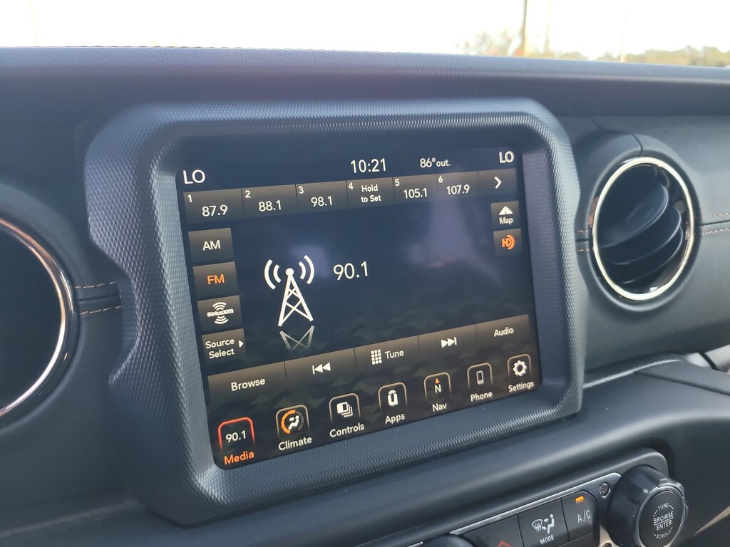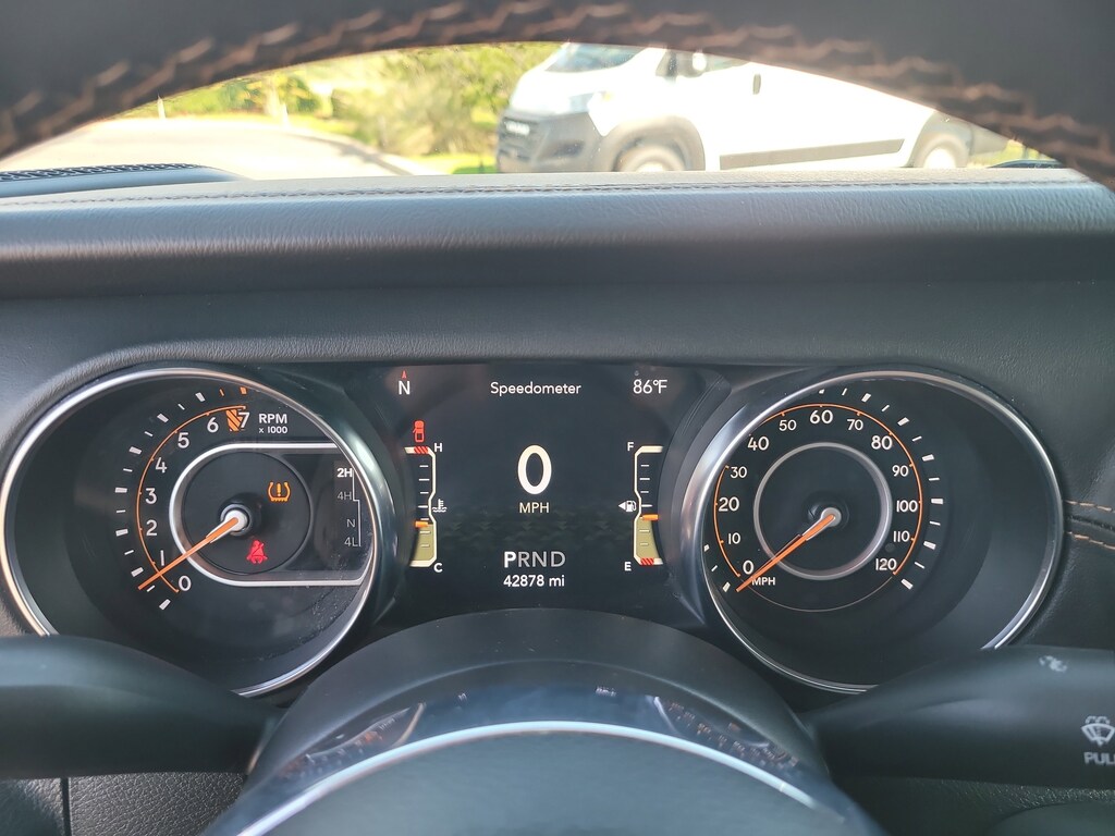 This Vehicle comes equipped with: High Altitude Package, LED Lighting Group (Daytime Running Lamps LED Accents, Front LED Fog Lamps, LED Park Turn Lamps, LED Premium Reflector Headlamps, and LED Taillamps), Quick Order Package 24N High Altitude (ABS 4-Wheel HD Disc Brakes w/CI Knuckle, Body Color 3-Piece Hard Top, Body Color Front Bumper, Body Color Grille w/Gloss Black Rings, Body Color Rear Bumper w/Step Pads, Body-Color Door & Tailgate Handles, Caramel Interior Accents, Dana M210 Wide Front Axle, Dana M220 Wide Rear Axle, Exterior Mirrors w/Supplemental Signals, Freedom Panel Storage Bag, Full Body Color Fender Flares, Full Length Floor Console Premium Armrest, Gloss Black Limited Badge, Gray/Black Trail Rated Badge, Leather Wrapped Park Brake Handle, Leather Wrapped Shift Knob, Nappa Leather Seats, No Soft Top, Premium Dark Exterior Accents, Rear Armrest w/Cupholder Seat, Rear Sliding Window, Rear Window Defroster, Side Steps, Sport Front Shock Absorbers, Sport Rear Shock Absorbers, Sport Suspension, Wheels: 20" x 8" Gloss Black Aluminum, and Wrapped I/P Bezel w/Caramel Stitch), Safety Group (Blind Spot & Cross Path Detection and ParkSense Rear Park Assist System), 3.73 Rear Axle Ratio, 4-Wheel Disc Brakes, 9 Speakers, ABS brakes, Air Conditioning, Alloy wheels, AM/FM radio: SiriusXM, Apple CarPlay/Android Auto, Auto-dimming Rear-View mirror, Automatic temperature control, Brake assist, Compass, Delay-off headlights, Driver door bin, Driver vanity mirror, Dual front impact airbags, Dual front side impact airbags, Electronic Stability Control, Emergency communication system, Front anti-roll bar, Front Bucket Seats, Front Center Armrest w/Storage, Front dual zone A/C, Front fog lights, Front License Plate Bracket, Front reading lights, Fully automatic headlights, Garage door transmitter, Heated door mirrors, Illuminated entry, Integrated roll-over protection, Low tire pressure warning, Navigation System, Normal Duty Plus Suspension (DISC), Occupant sensing airbag, Outside temperature display, Overland Cloth Bucket Seats (DISC), Panic alarm, ParkView Rear Back-Up Camera, Passenger door bin, Passenger vanity mirror, Power door mirrors, Power steering, Power windows, Radio data system, Radio: Uconnect 4C Nav w/8.4" Display, Rear anti-roll bar, Rear reading lights, Remote keyless entry, Security system, Selec-Speed Control, Speed control, Split folding rear seat, Steering wheel mounted audio controls, Tachometer, Telescoping steering wheel, Tilt steering wheel, Traction control, Trip computer, Variably intermittent wipers, Voltmeter, and Wheels: 18" x 7.5" Granite Crystal Aluminum (DISC)