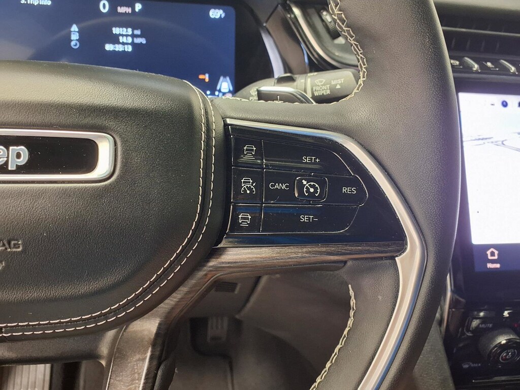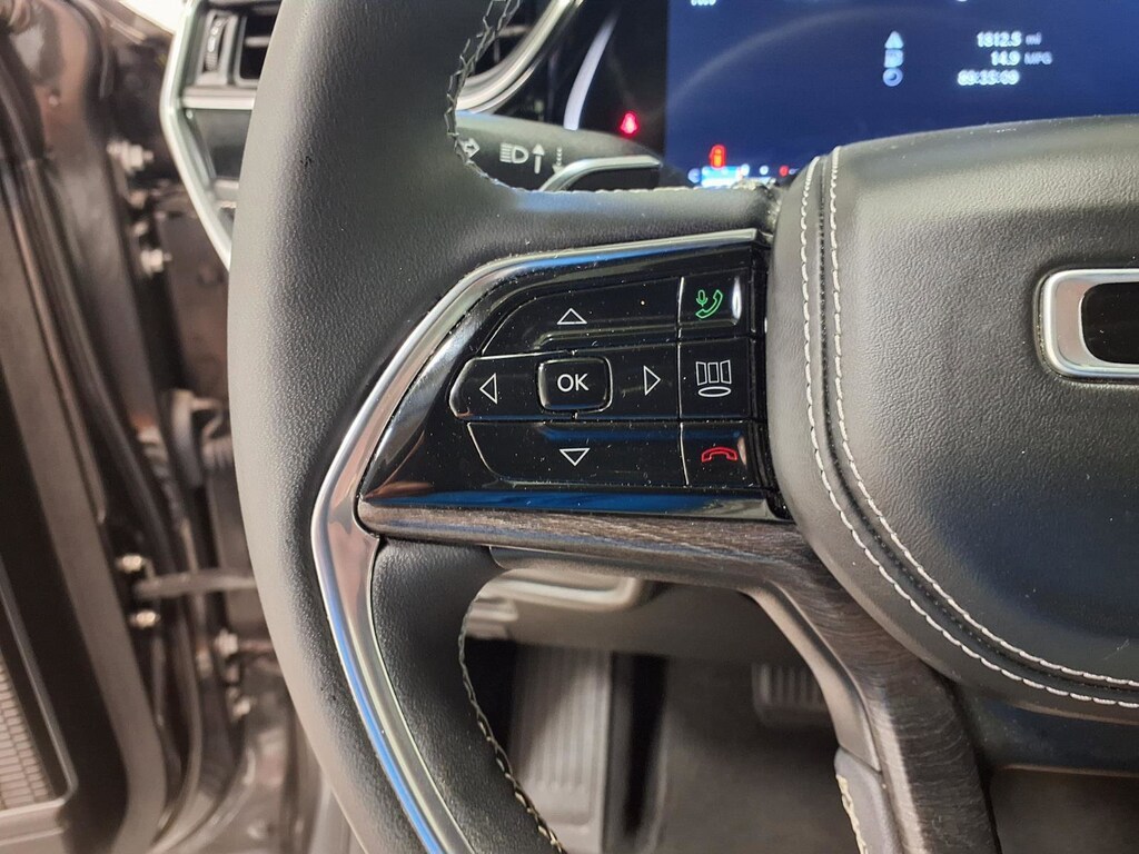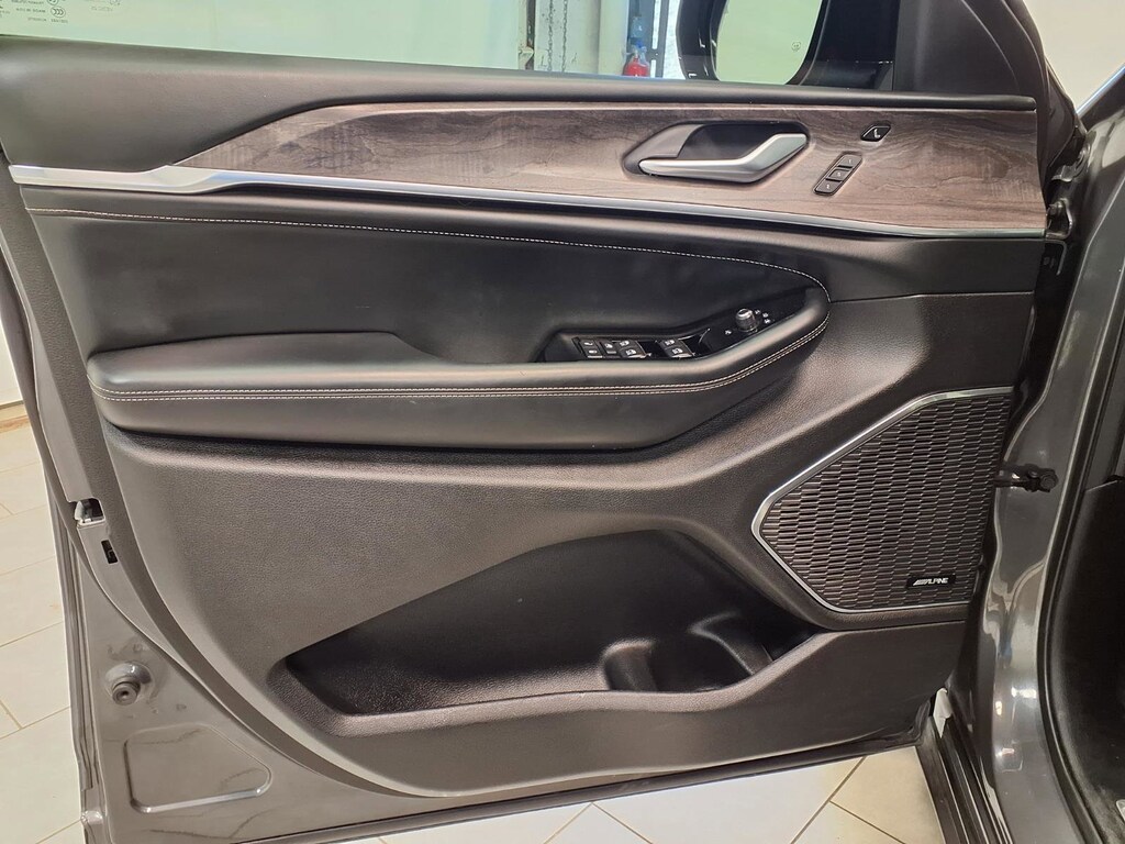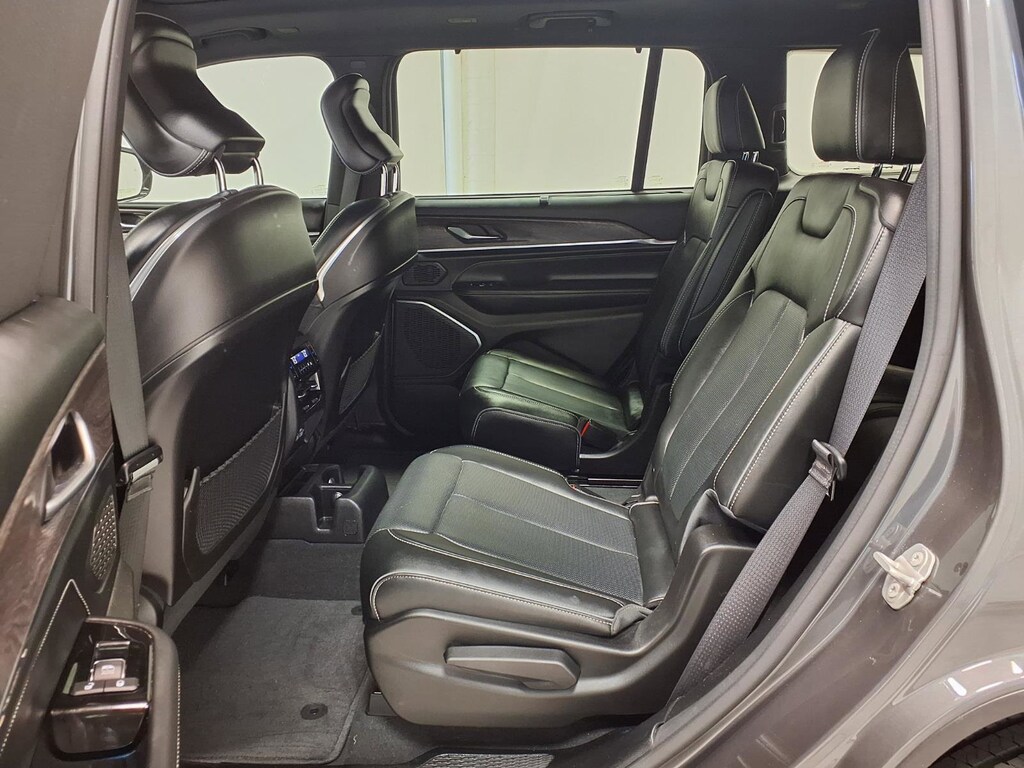 This vehicle comes equipped with: Luxury Tech Group IV (2nd Row Manual Window Shades, ATC w/4 Zone Temp Control, Driver Power Seat Back Massage, Front Passenger Power Seat Back Massage, Nappa Leather Seats (TL), Passenger Seat Memory, Power Adjust 12-Way Driver Seat, Power Adjust 12-Way Front Passenger Seat, Rearview Autodim Digital Display Mirror, and Wireless Charging Pad), Quick Order Package 23N, 10 Speakers, 3.45 Rear Axle Ratio, 3rd row seats: split-bench, 4-Wheel Disc Brakes, ABS brakes, Active Noise Control System, Adaptive suspension, Air Conditioning, Alloy wheels, AM/FM radio: SiriusXM with 360L, Anti-whiplash front head restraints, Audio memory, Auto High-beam Headlights, Auto-dimming door mirrors, Auto-dimming Rear-View mirror, Auto-leveling suspension, Automatic temperature control, Brake assist, Bumpers: body-color, Compass, Delay-off headlights, Driver door bin, Driver vanity mirror, Dual front impact airbags, Dual front side impact airbags, Electronic Stability Control, Emergency communication system, Four wheel independent suspension, Front anti-roll bar, Front Bucket Seats, Front Center Armrest w/Storage, Front dual zone A/C, Front fog lights, Front License Plate Bracket, Front Passenger Interactive Display, Front reading lights, Fully automatic headlights, Garage door transmitter, Heated door mirrors, Heated front seats, Heated rear seats, Heated steering wheel, Illuminated entry, Knee airbag, Low tire pressure warning, Memory seat, Nappa Leather Seats, Navigation System, Normal Duty Suspension, Occupant sensing airbag, Outside temperature display, Overhead airbag, Overhead console, Panic alarm, Passenger door bin, Passenger vanity mirror, Power door mirrors, Power driver seat, Power Fold Seatbacks, Power Liftgate, Power moonroof, Power passenger seat, Power steering, Power windows, Radio data system, Radio: Uconnect 5 Nav w/10.1 Display, Rain sensing wipers, Rear air conditioning, Rear anti-roll bar, Rear reading lights, Rear window defroster, Rear window wiper, Reclining 3rd row seat, Remote keyless entry, Security system, Speed control, Speed-Sensitive Wipers, Split folding rear seat, Spoiler, Steering wheel memory, Steering wheel mounted audio controls, Tachometer, Telescoping steering wheel, Tilt steering wheel, Traction control, Trip computer, Turn signal indicator mirrors, Variably intermittent wipers, Ventilated front seats, Voltmeter, and Wheels: 20 x 8.5 Machined Face Aluminum.