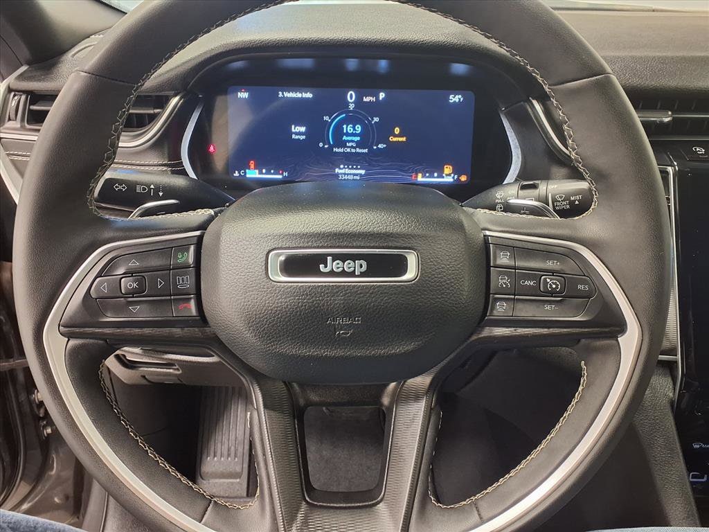 This vehicle comes equipped with: Altitude Appearance Package, Quick Order Package 23B Altitude (115V Auxiliary Power Outlet, 3rd Row Charge-Only USB Ports, Black Headliner, Capri Leatherette/Suede Seats, Delete Laredo Badge, Gloss Black Exterior Accents, Heated Front Seats, Heated Steering Wheel, Power Liftgate, Rain Sensitive Windshield Wipers, Remote Start System, Selectable Tire Fill Alert, Wheels: 18 x 8.0 Fully Painted Aluminum 1, and Wireless Charging Pad), 2nd Row 60/40 Bench w/Manual Tip/Slide, 2nd Row Seat Center Armrest/Cupholders, 3 Rear Seat Head Restraints, 3.45 Rear Axle Ratio, 3rd row seats: split-bench, 4-Wheel Disc Brakes, 6 Speakers, 7-Passenger Seating, ABS brakes, Air Conditioning, Alloy wheels, Anti-whiplash front head restraints, Automatic temperature control, Brake assist, Bumpers: body-color, Center Rear 3-Point Seat Belt, Cloth Seats, Compass, Delay-off headlights, Driver door bin, Driver vanity mirror, Dual front impact airbags, Dual front side impact airbags, Electronic Stability Control, Emergency communication system, Four wheel independent suspension, Front anti-roll bar, Front Bucket Seats, Front Center Armrest w/Storage, Front dual zone A/C, Front License Plate Bracket, Front reading lights, Fully automatic headlights, Heated door mirrors, Illuminated entry, Knee airbag, Low tire pressure warning, Manual Fold Seatbacks, Normal Duty Suspension, Occupant sensing airbag, Outside temperature display, Overhead airbag, Overhead console, Panic alarm, ParkView Rear Back-Up Camera, Passenger door bin, Passenger vanity mirror, Power door mirrors, Power driver seat, Power steering, Power windows, Radio data system, Radio: Uconnect 5 w/8.4 Display, Rear air conditioning, Rear anti-roll bar, Rear reading lights, Rear window defroster, Rear window wiper, Reclining 3rd row seat, Remote keyless entry, Security system, Speed control, Speed-Sensitive Wipers, Split folding rear seat, Spoiler, Steering wheel mounted audio controls, Tachometer, Telescoping steering wheel, Tilt steering wheel, Traction control, Trip computer, Variably intermittent wipers, Voltmeter, and Wheels: 18 x 8.0 Fully Painted Aluminum.
