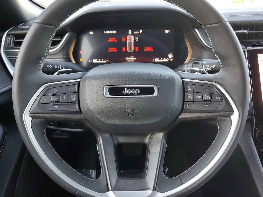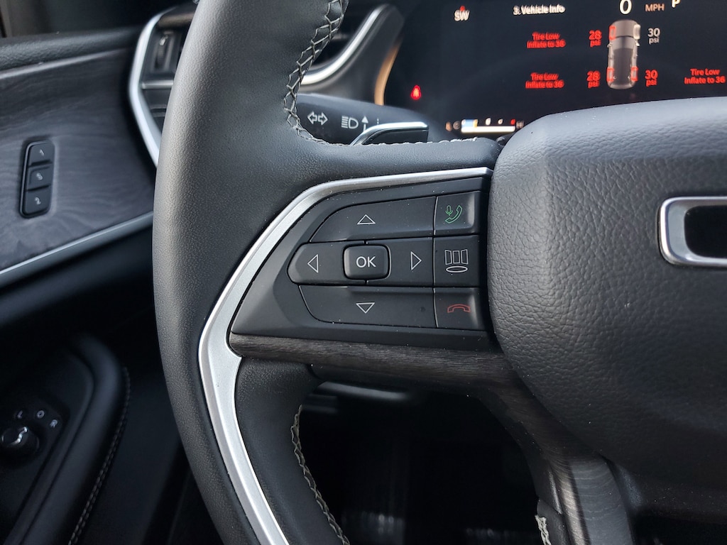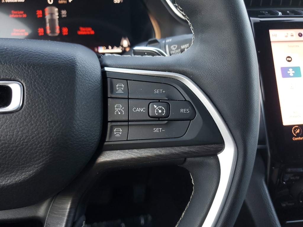 This Vehicle is nicely equipped with the following features: Quick Order Package 23E, 4WD, 3.45 Rear Axle Ratio, 4-Wheel Disc Brakes, 6 Speakers, ABS brakes, Active Noise Control System, Air Conditioning, Alloy wheels, AM/FM radio: SiriusXM with 360L, Anti-whiplash front head restraints, Audio memory, Auto High-beam Headlights, Automatic temperature control, Brake assist, Bumpers: body-color, Capri Leatherette Seats, Compass, Delay-off headlights, Driver door bin, Driver vanity mirror, Dual front impact airbags, Dual front side impact airbags, Electronic Stability Control, Emergency communication system, Four wheel independent suspension, Front anti-roll bar, Front Bucket Seats, Front Center Armrest w/Storage, Front dual zone A/C, Front fog lights, Front License Plate Bracket, Front reading lights, Fully automatic headlights, Garage door transmitter, Heated door mirrors, Heated front seats, Heated rear seats, Heated steering wheel, Illuminated entry, Knee airbag, Low tire pressure warning, Memory seat, Navigation System, Normal Duty Suspension, Occupant sensing airbag, Outside temperature display, Overhead airbag, Overhead console, Panic alarm, ParkView Rear Back-Up Camera, Passenger door bin, Passenger vanity mirror, Power door mirrors, Power driver seat, Power Liftgate, Power passenger seat, Power steering, Power windows, Radio data system, Radio: Uconnect 5 Nav w/10.1 Display, Rear anti-roll bar, Rear reading lights, Rear window defroster, Rear window wiper, Remote keyless entry, Security system, Speed control, Speed-Sensitive Wipers, Split folding rear seat, Spoiler, Steering wheel mounted audio controls, Tachometer, Telescoping steering wheel, Tilt steering wheel, Traction control, Trip computer, Turn signal indicator mirrors, Variably intermittent wipers, Voltmeter, and Wheels: 18 x 8 Polished/Painted Aluminum.